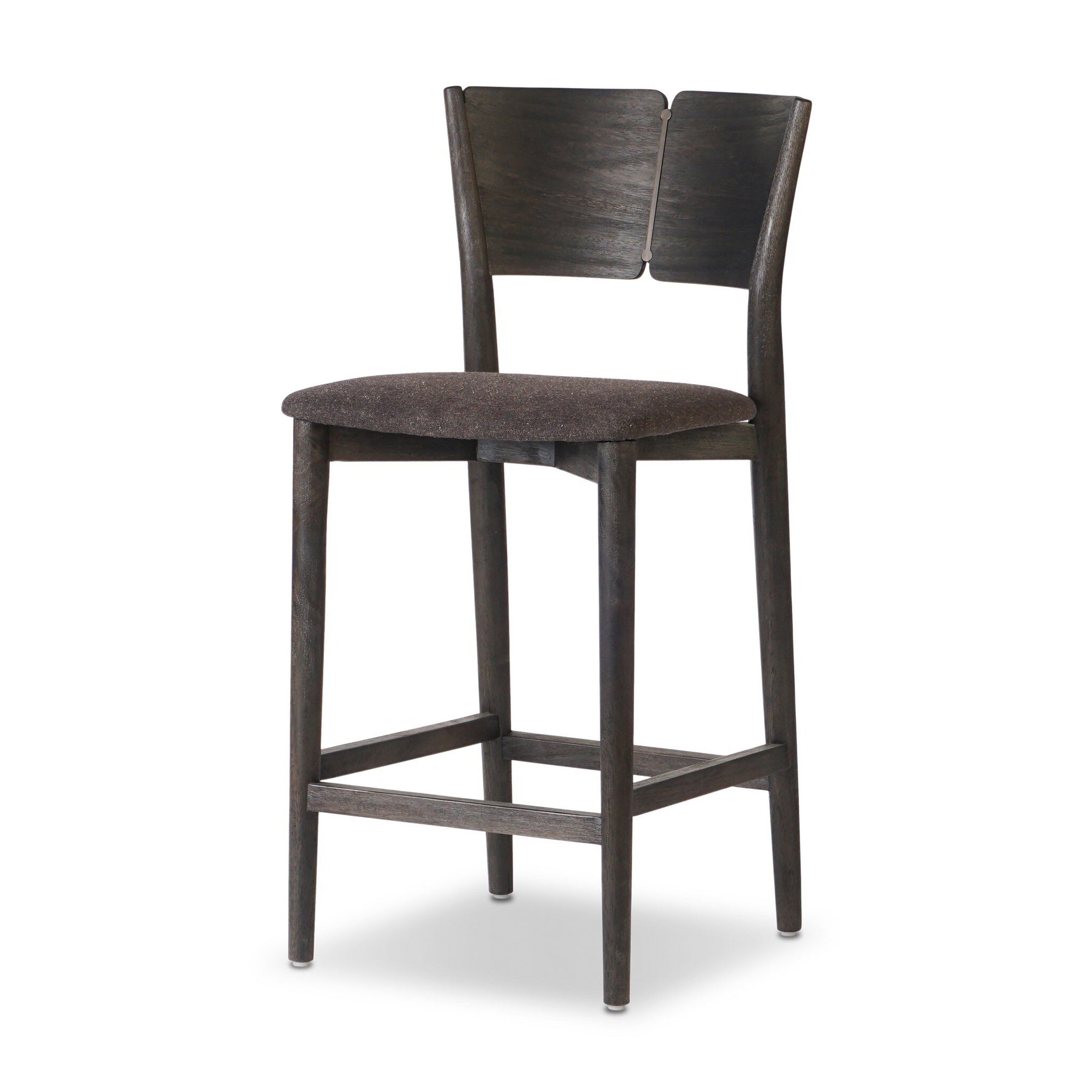 Inspired by simple Scandinavian styling, this parawood stool features a graceful silhouette with smooth, bent-wood curves and a decorative slit-back metal inlay. Sized perfectly for the counter, it offers a sleek, thin seat cushion available in either black performance fabric—crafted to resist spills, stains, and wear—or linen-cotton taupe for a soft, natural touch. A versatile piece that balances modern design with everyday comfort, ideal for dining or entertaining.