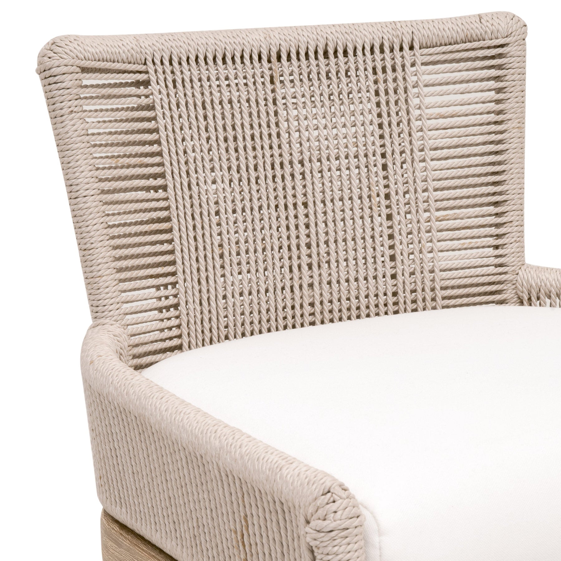 Introduce a touch of coastal charm to your kitchen or dining space with our Oswald Counter Stool. The handwoven rope design and high-performance fabric offer both durability and style. Enjoy comfort and stability with the fixed seat cushion and "X" stretcher base design, crafted from solid mahogany wood. The footrest, made of aluminum and polyolefin rope, is finished with a metal plate cover for added support.