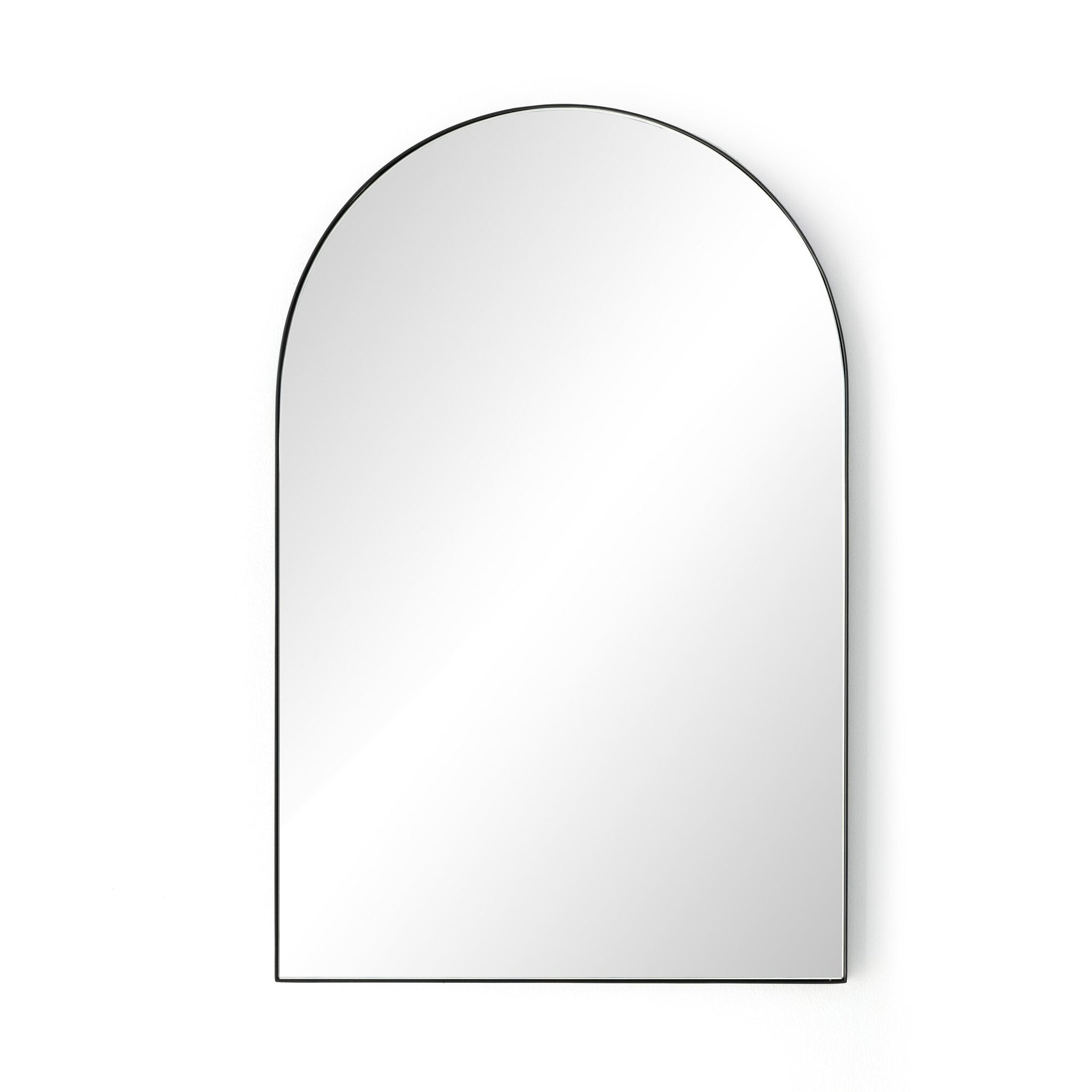A beautifully arched mirror in an iron frame with a rose gold / matte black finish.