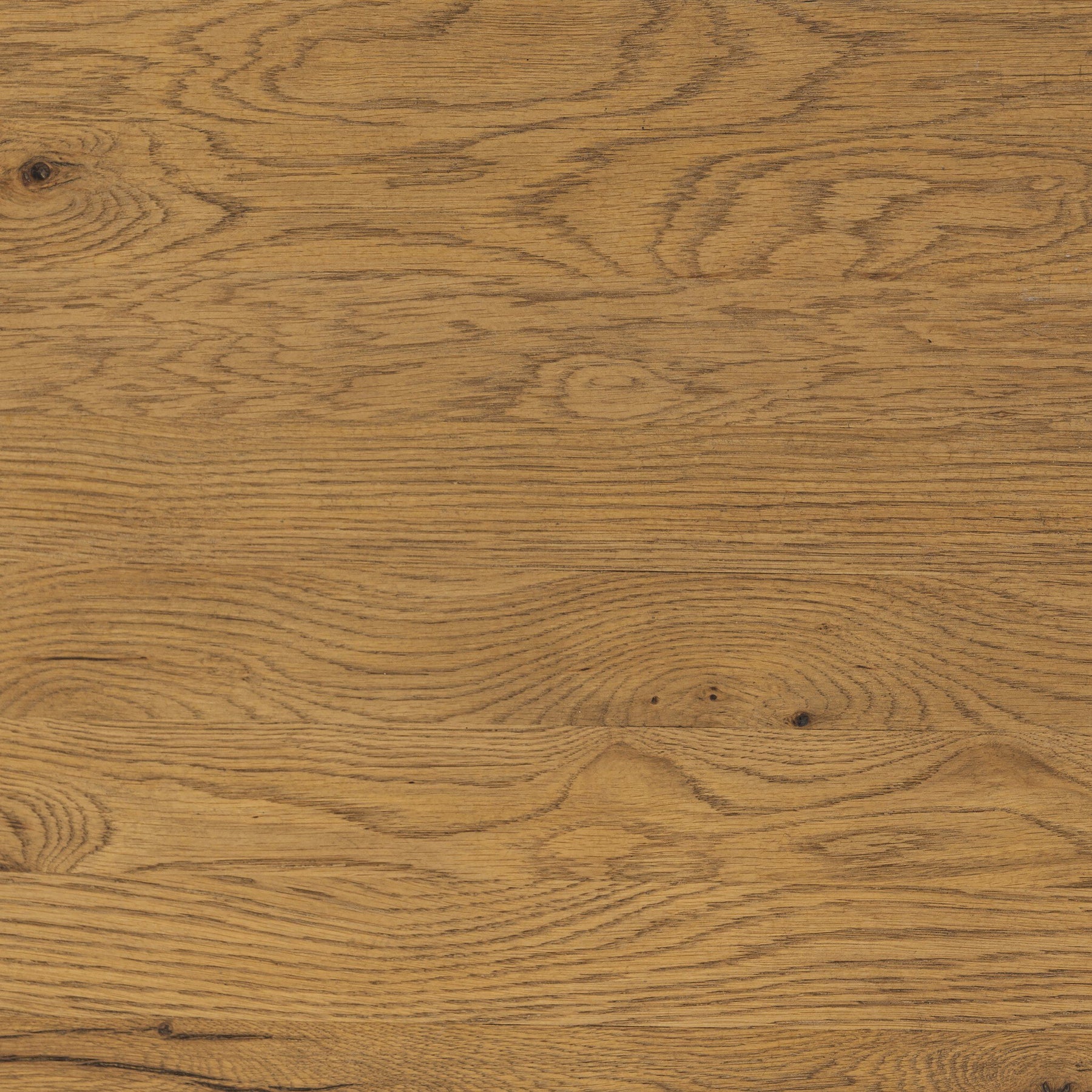 Bring a Nordic-inspired look to your bedroom styling. A spacious two-drawer nightstand of thick, grain-rich oak veneer encases drawer fronts covered with tan top-grain leather exclusive to Four Hands. Finished out with long, linear iron hardware.