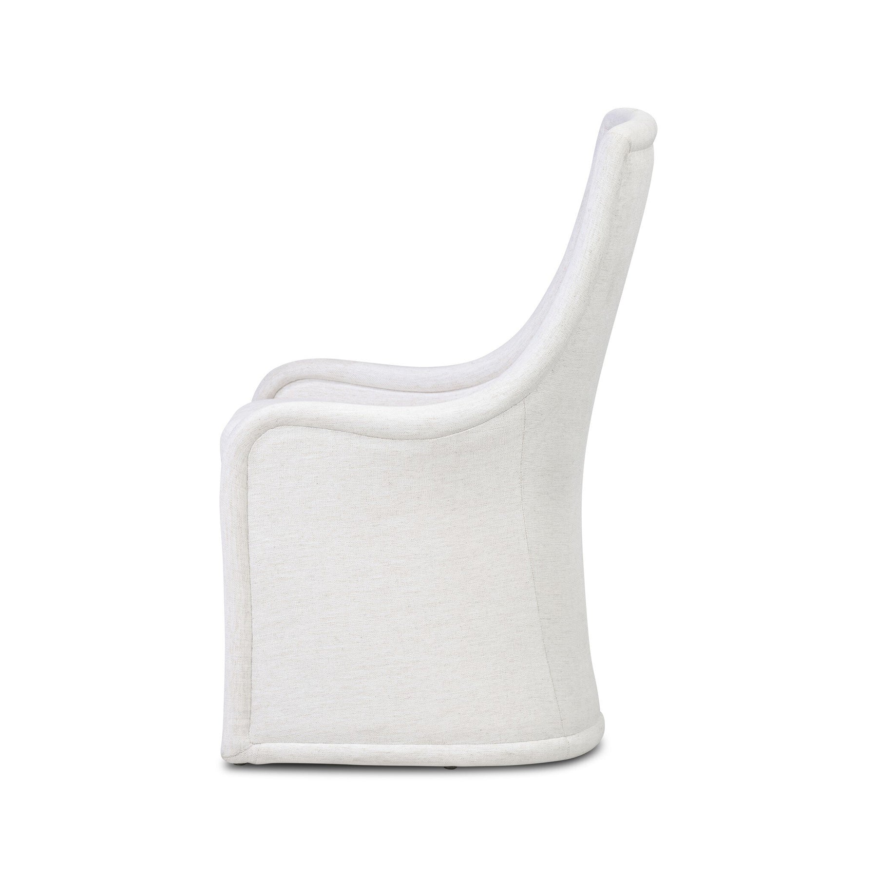 A high-back, organically shaped seating style brings a formal look that can easily be dressed up or down. Fully upholstered in your choice of textural Crypton® performance fabric—specially engineered to resist stains, moisture, and odor—or a recycled chenille with the rich dimension of velvet. Finished with piping along the welt for a refined, design-forward touch