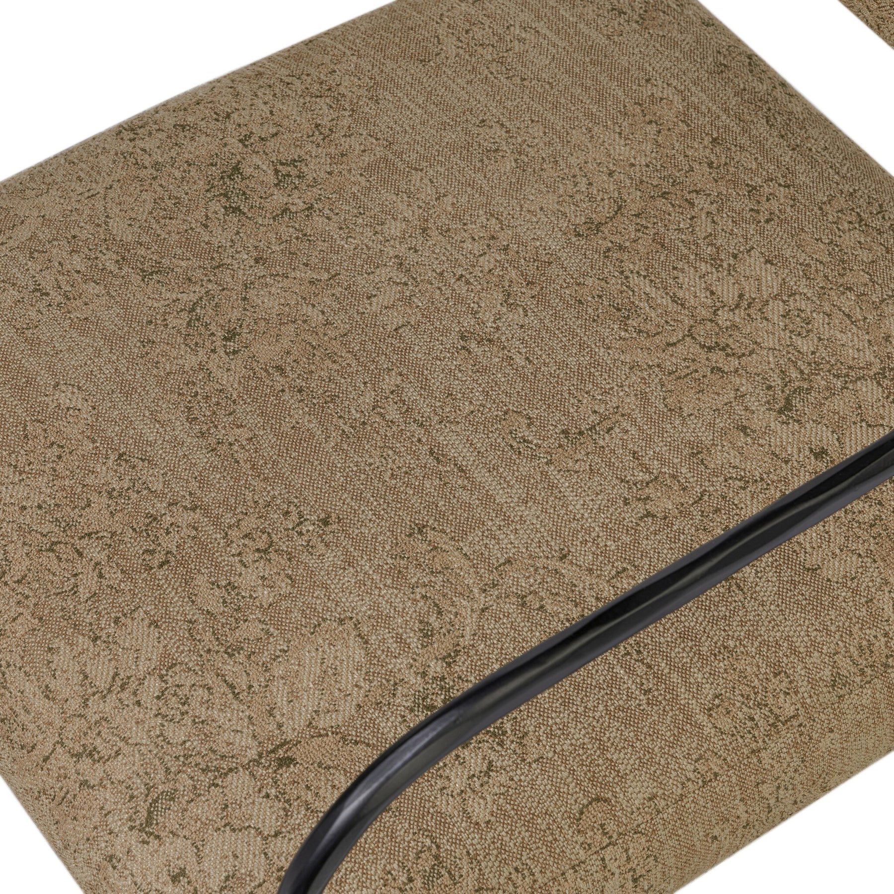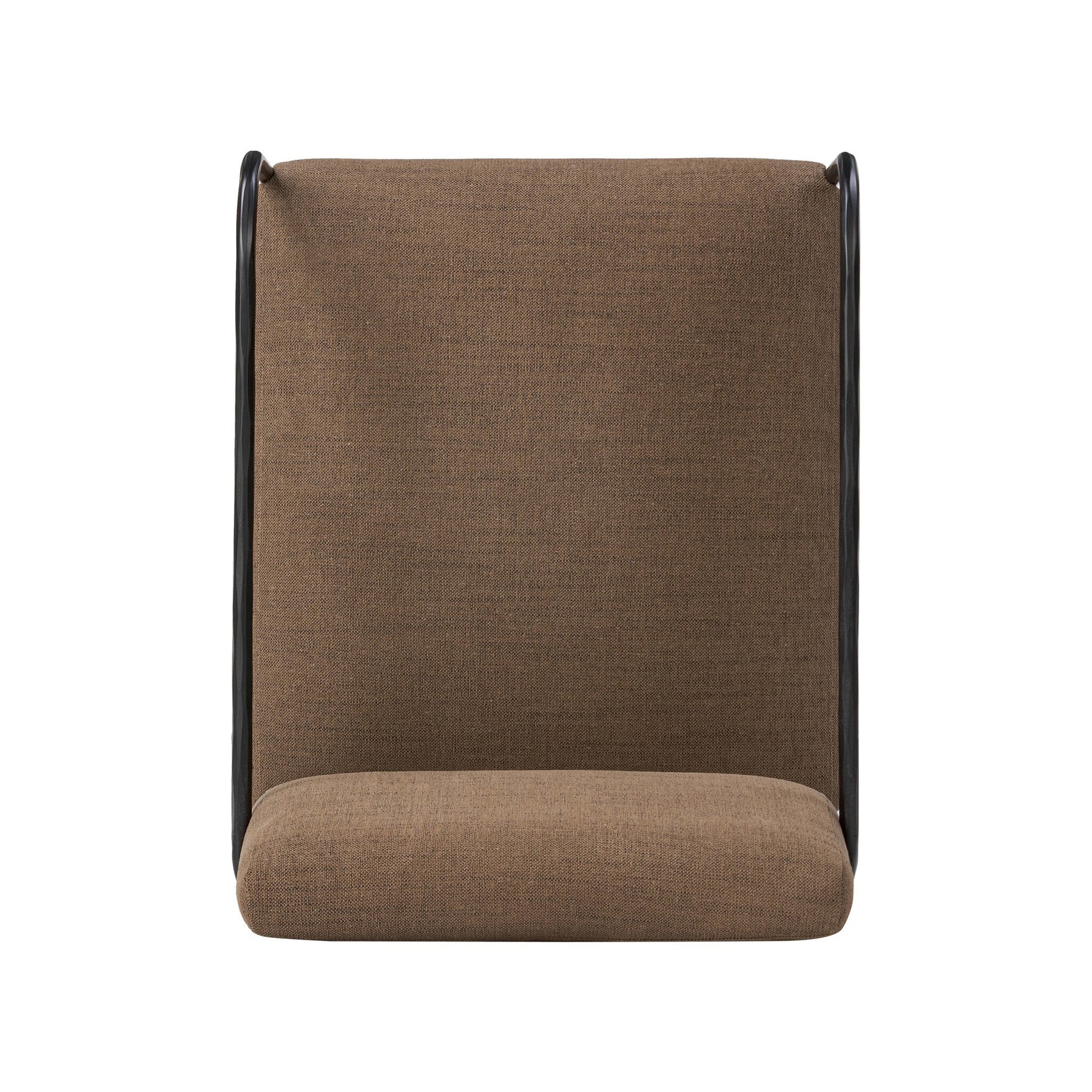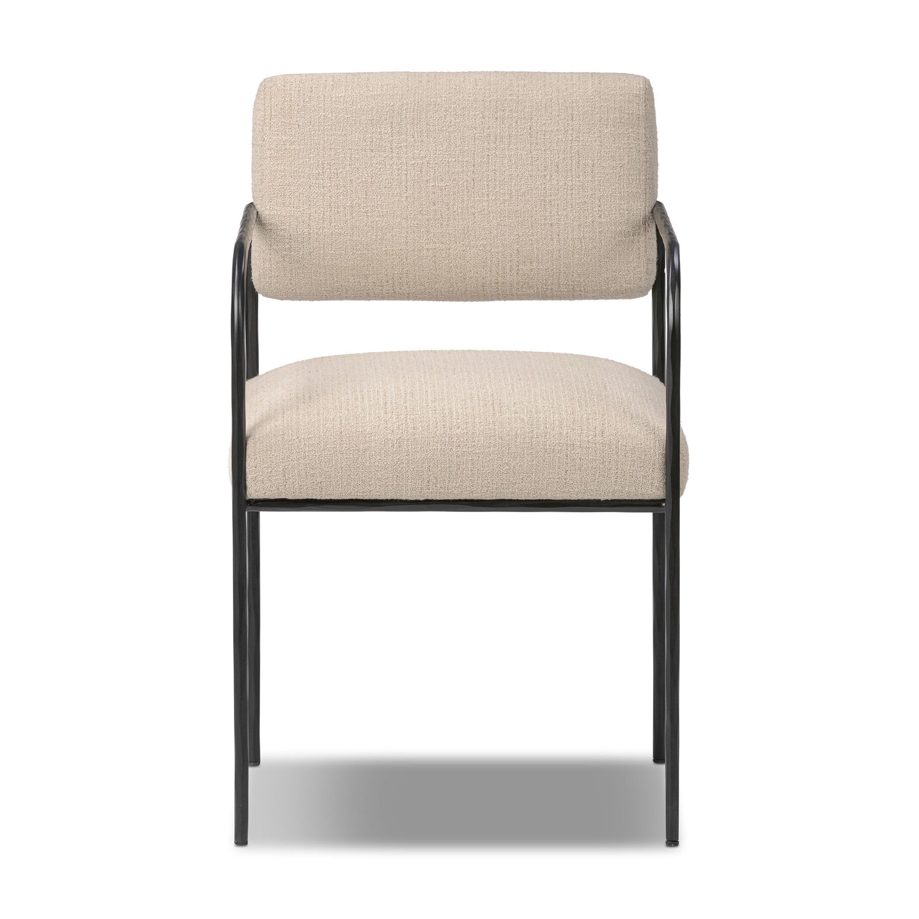 A simple yet timeless dining look, prime for the head of the table. Hammered iron frames a squared seat and bolster back upholstered in high-performance fabric