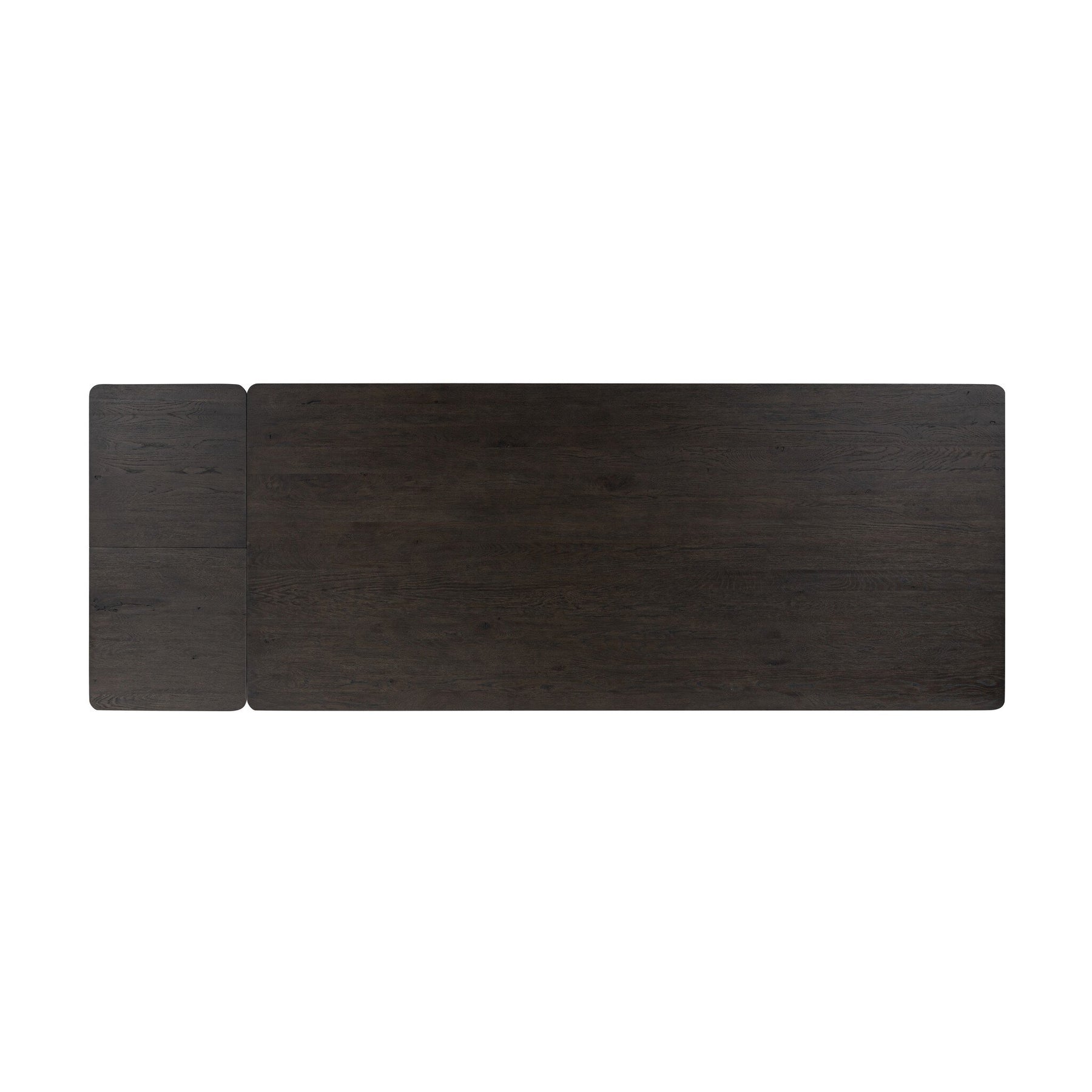 Made from solid and resawn oak with a light, worn finish or smoked black oak with intentional cracking for an aged look, this table includes a self-storing extension that expands seating for extra guests. Four lockable wheels make it easy to extend up to 116".