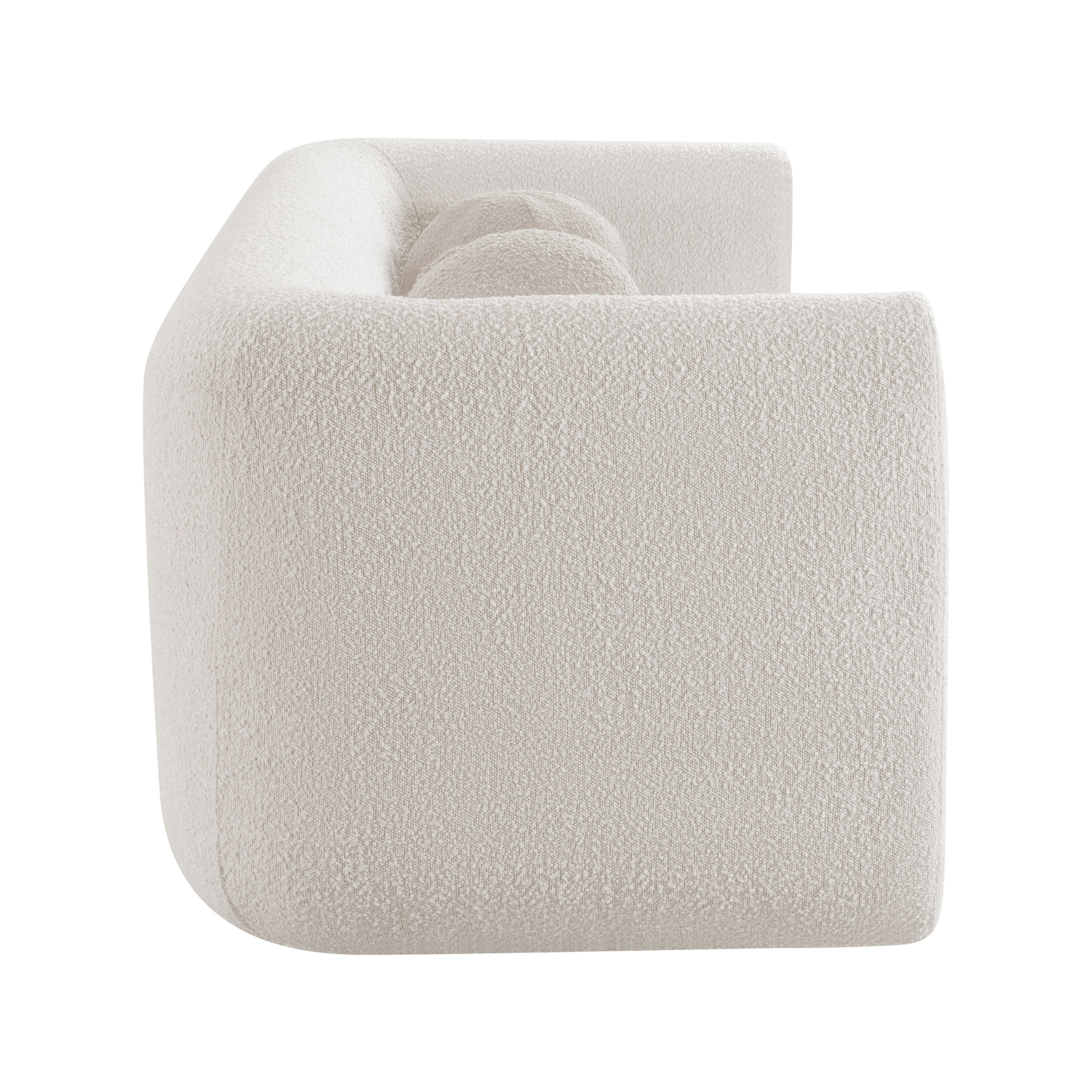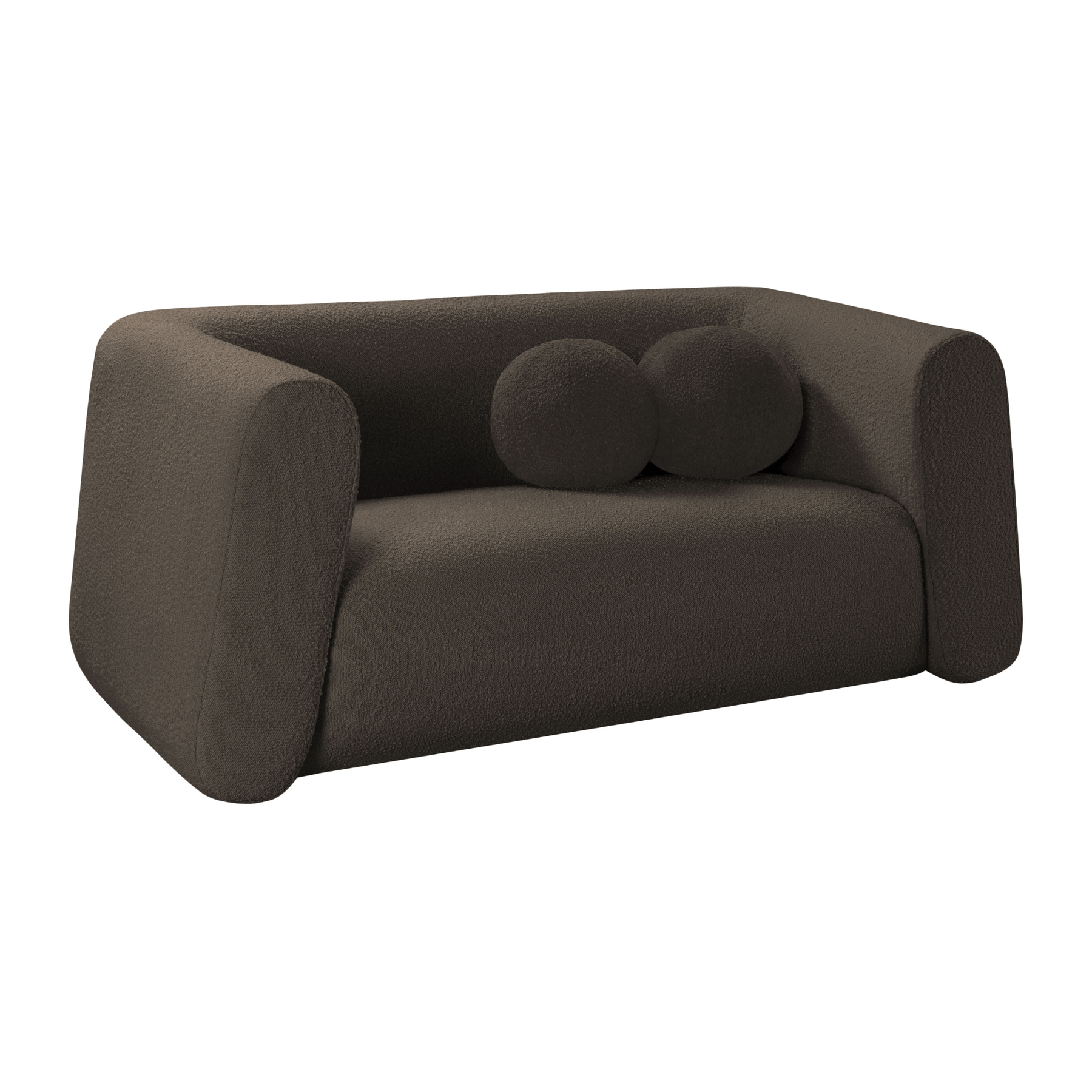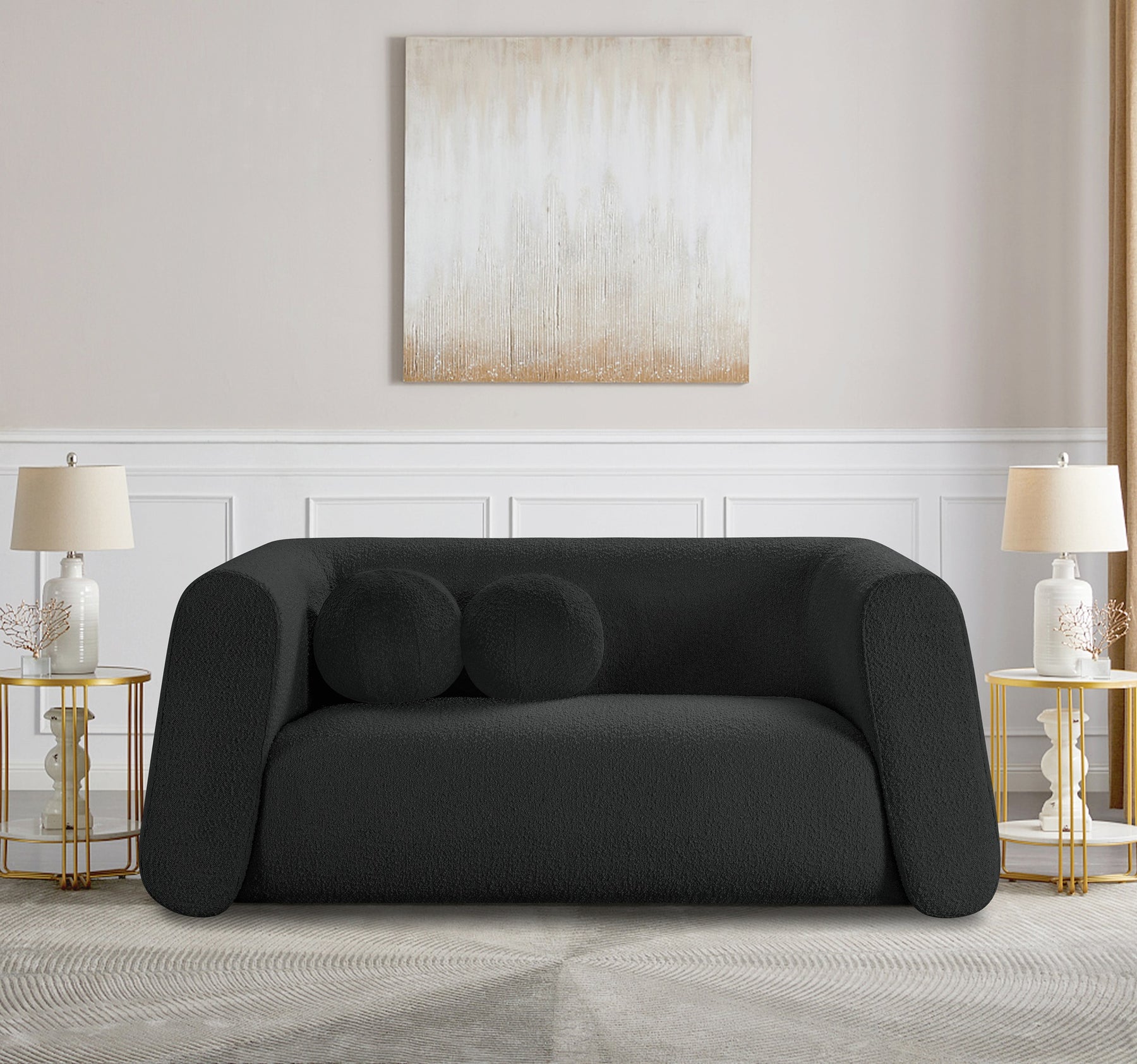 Give your room a new look with the chic Abbott loveseat, available in stunning black, brown, cream and olive boucle fabric. Embrace the richness of its texture and the boxy, geometrically inspired design that adds a touch of contemporary flair. This loveseat is not just furniture; it's an aesthetic experience. Complete with an included ball pillow, the Abbott loveseat is a sophisticated choice, promising both comfort and style for your living space. Redefine elegance with this eye-catching addition to your home from an unparalleled collection that lets you mix and match to suit your style preferences. Pillows included.