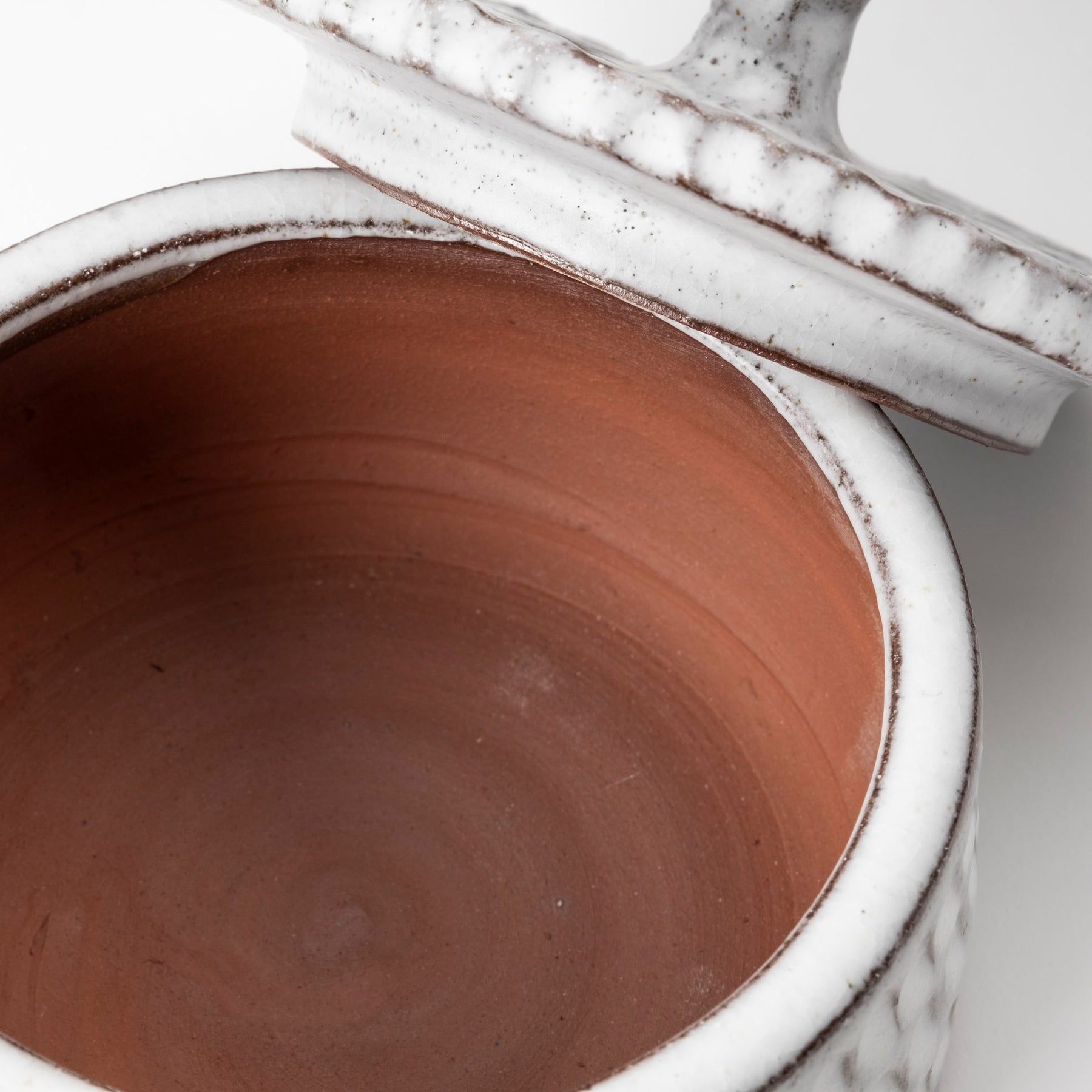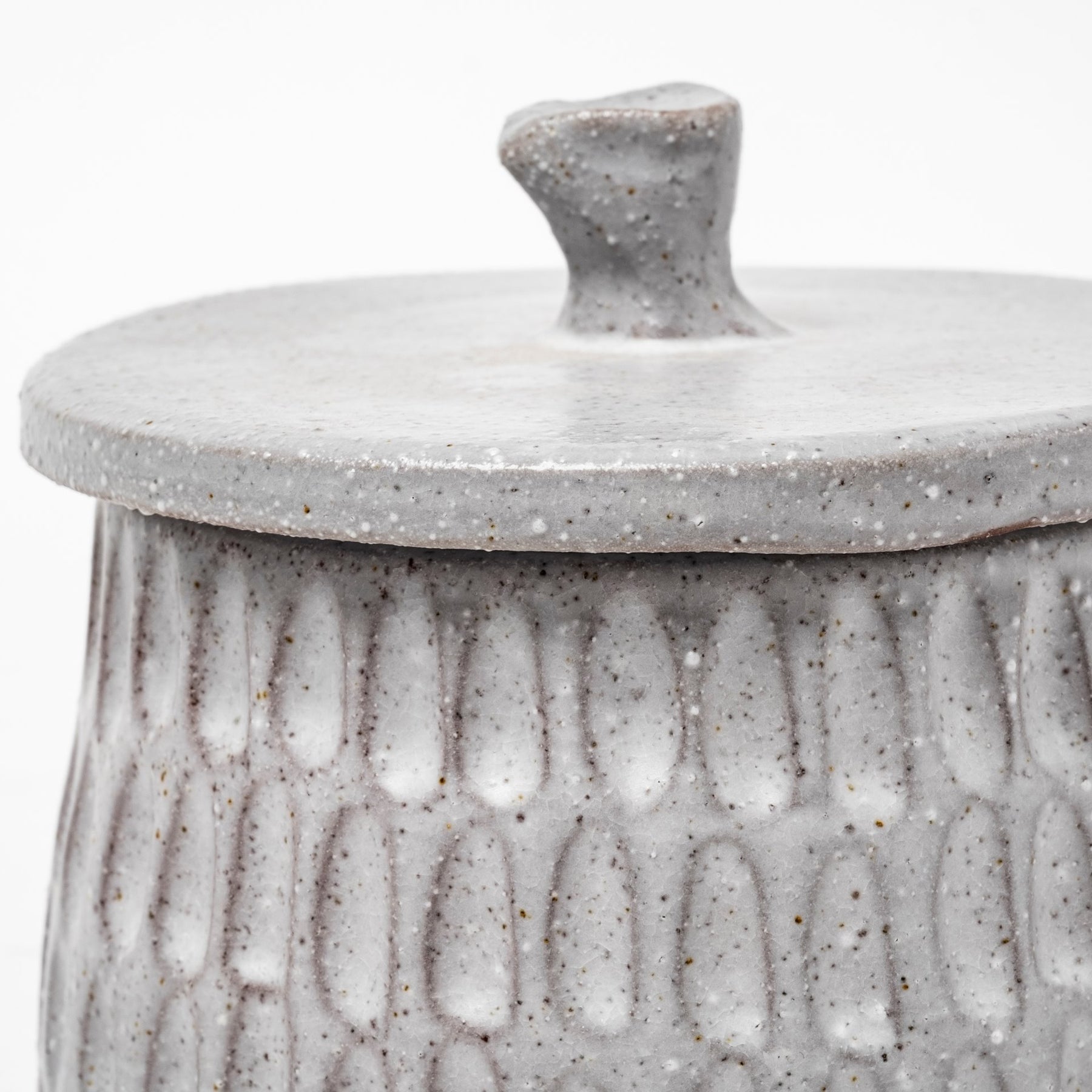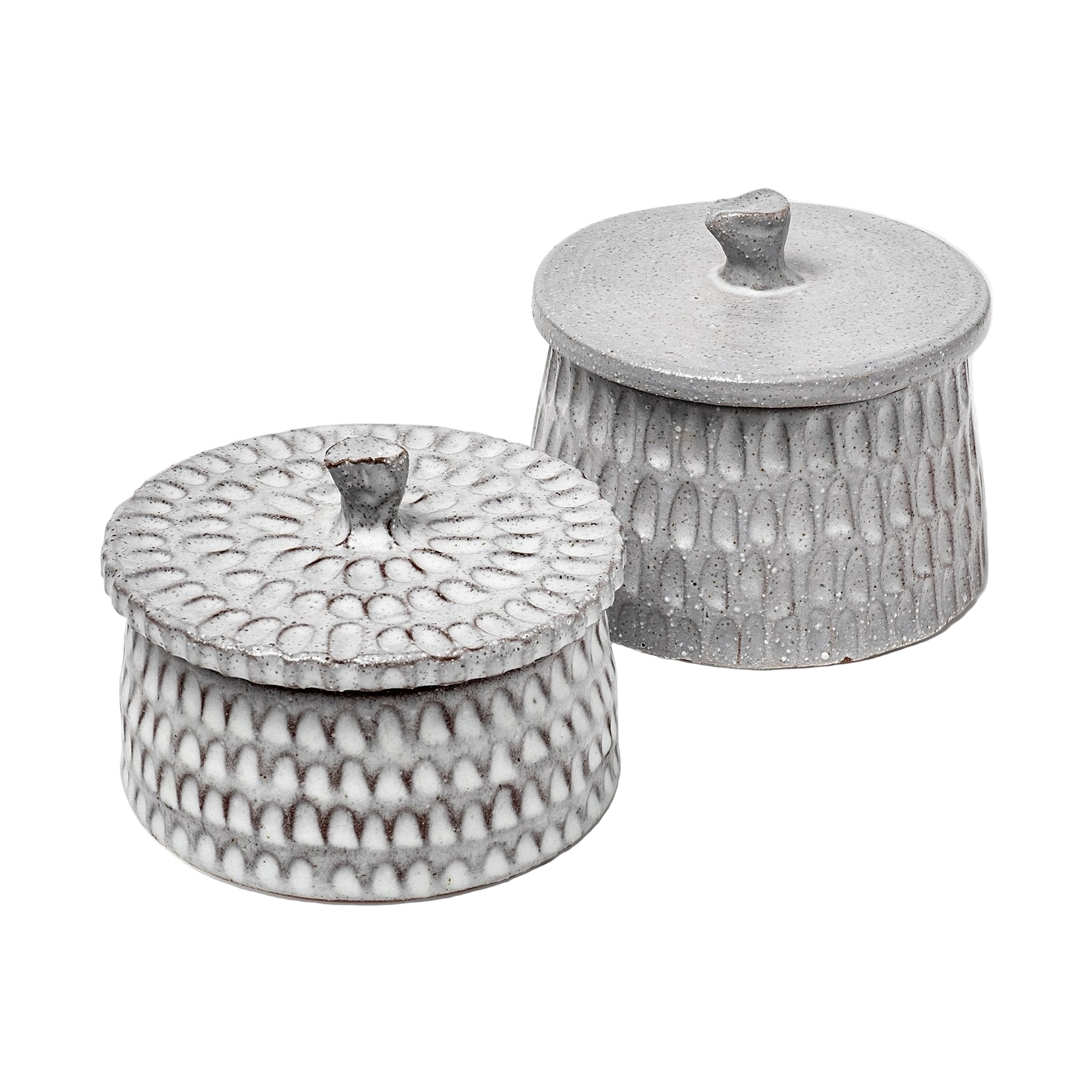 Expertly crafted from ceramic and finished in a mellow white and grey tone, the Amir is a beautiful decorative box with an intricate pattern on the exterior. We recommend the Amir for spaces based on Modern and Coastal design styles.