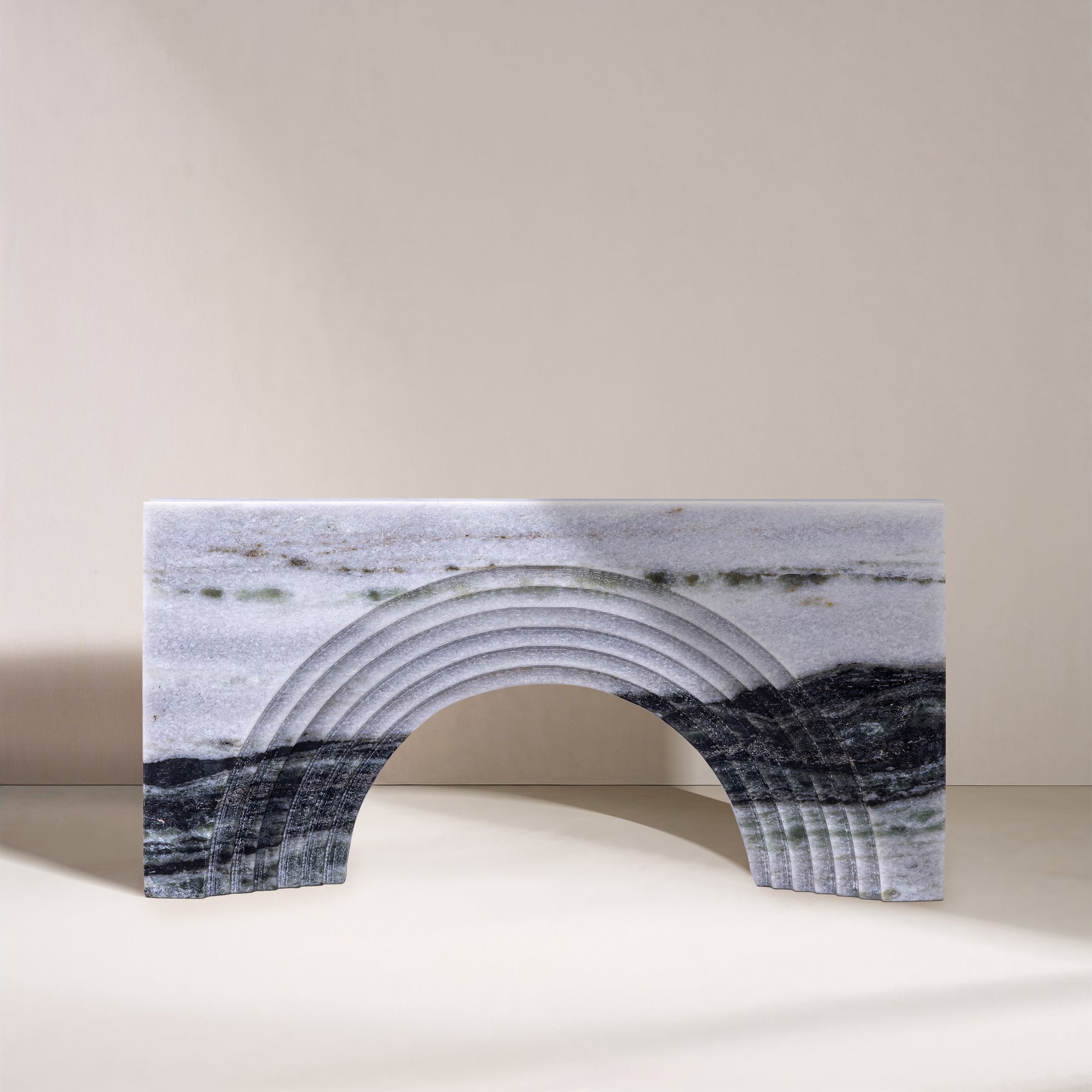 Sculpted from black marble, the Camria decorative object stands out with its arched profile and intricately carved ridges. A statement in form and texture, this tabletop accent is uniquely defined by the natural veining of genuine marble-no two are exactly alike.