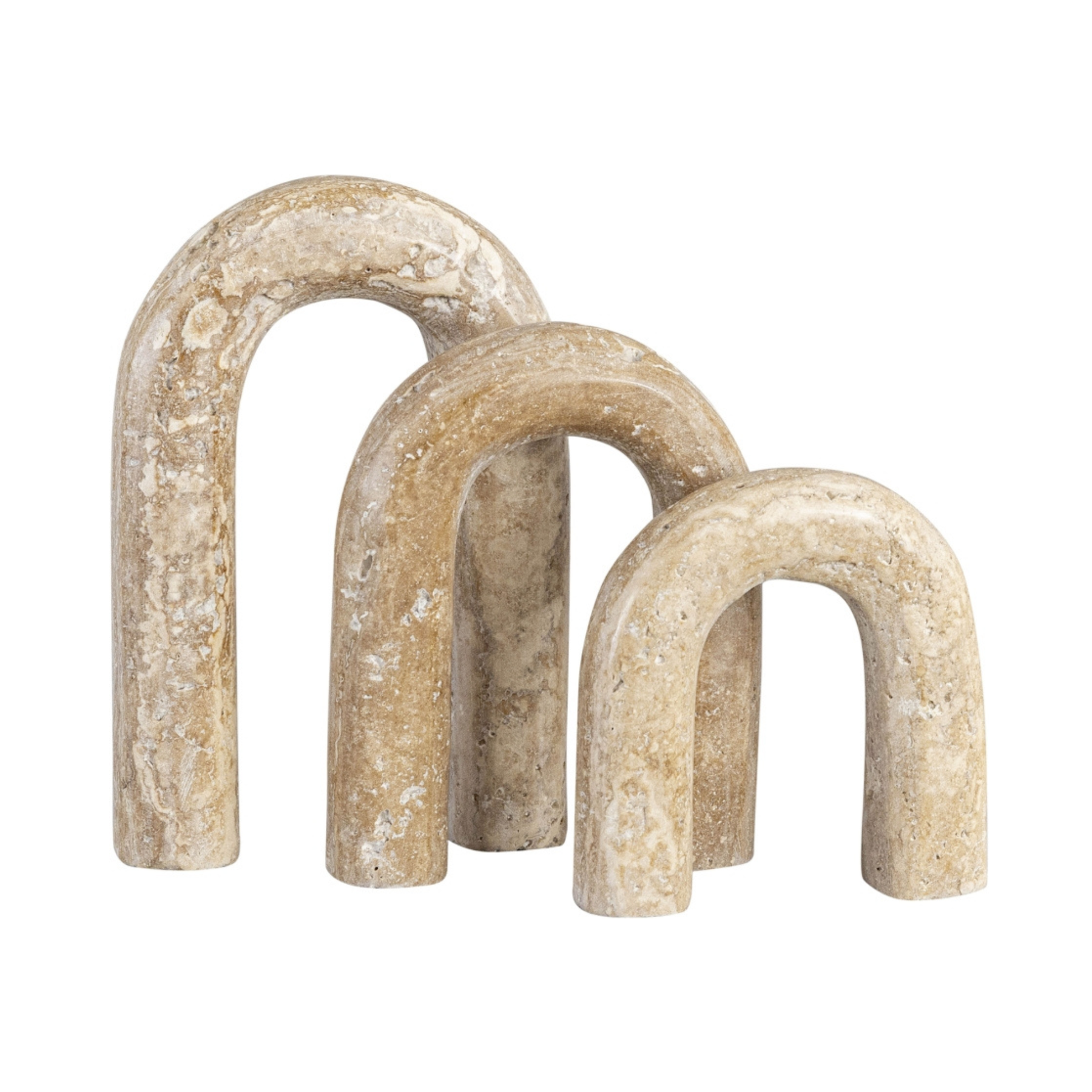 Smooth curves meet natural stone in the Soren decorative object, carved from genuine beige travertine. No two sets are alike-each one shaped by earthy veining and subtle tonal shifts for a truly one-of-a-kind accent.