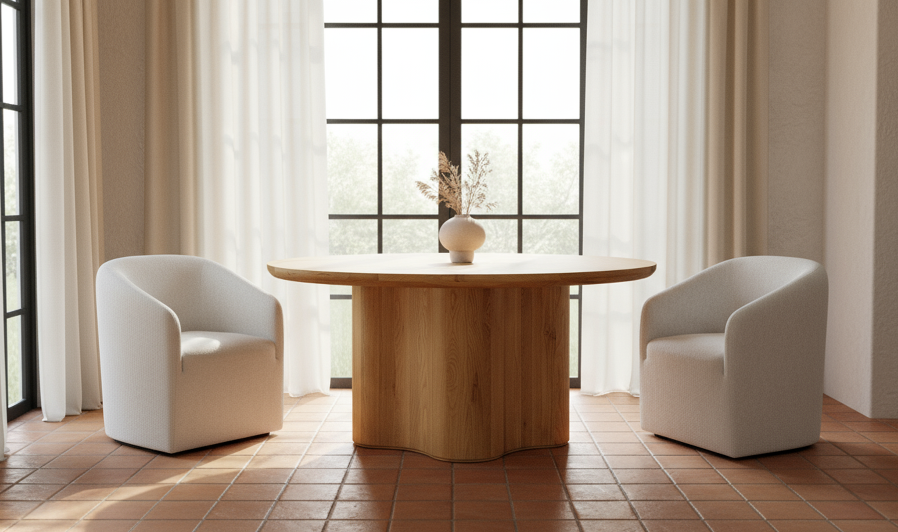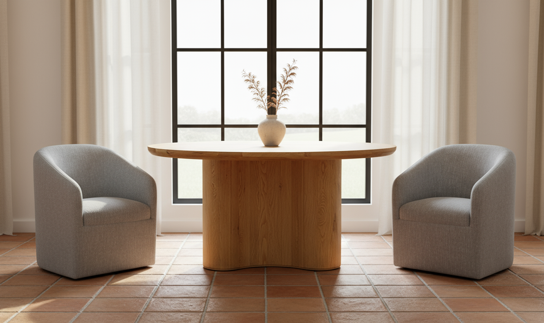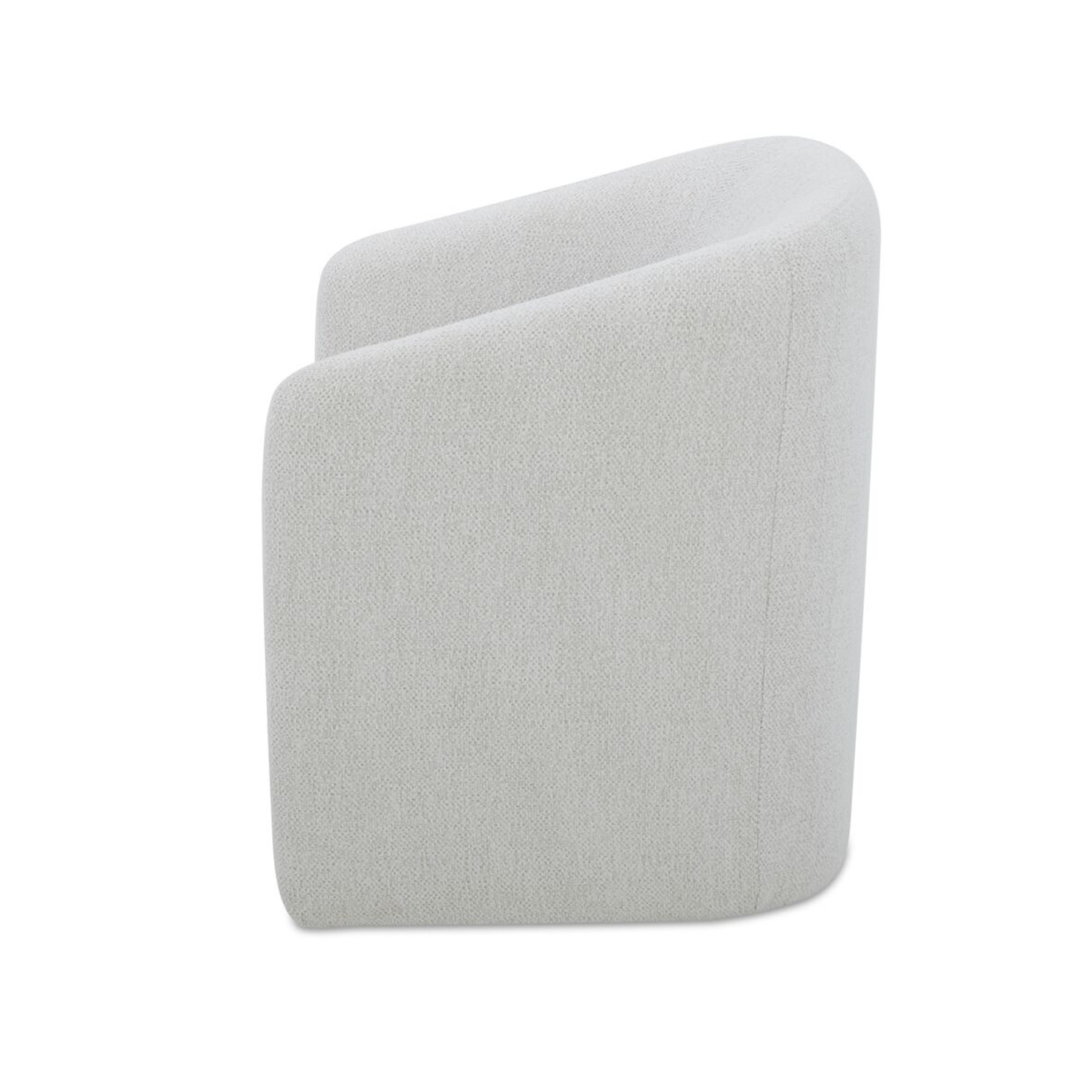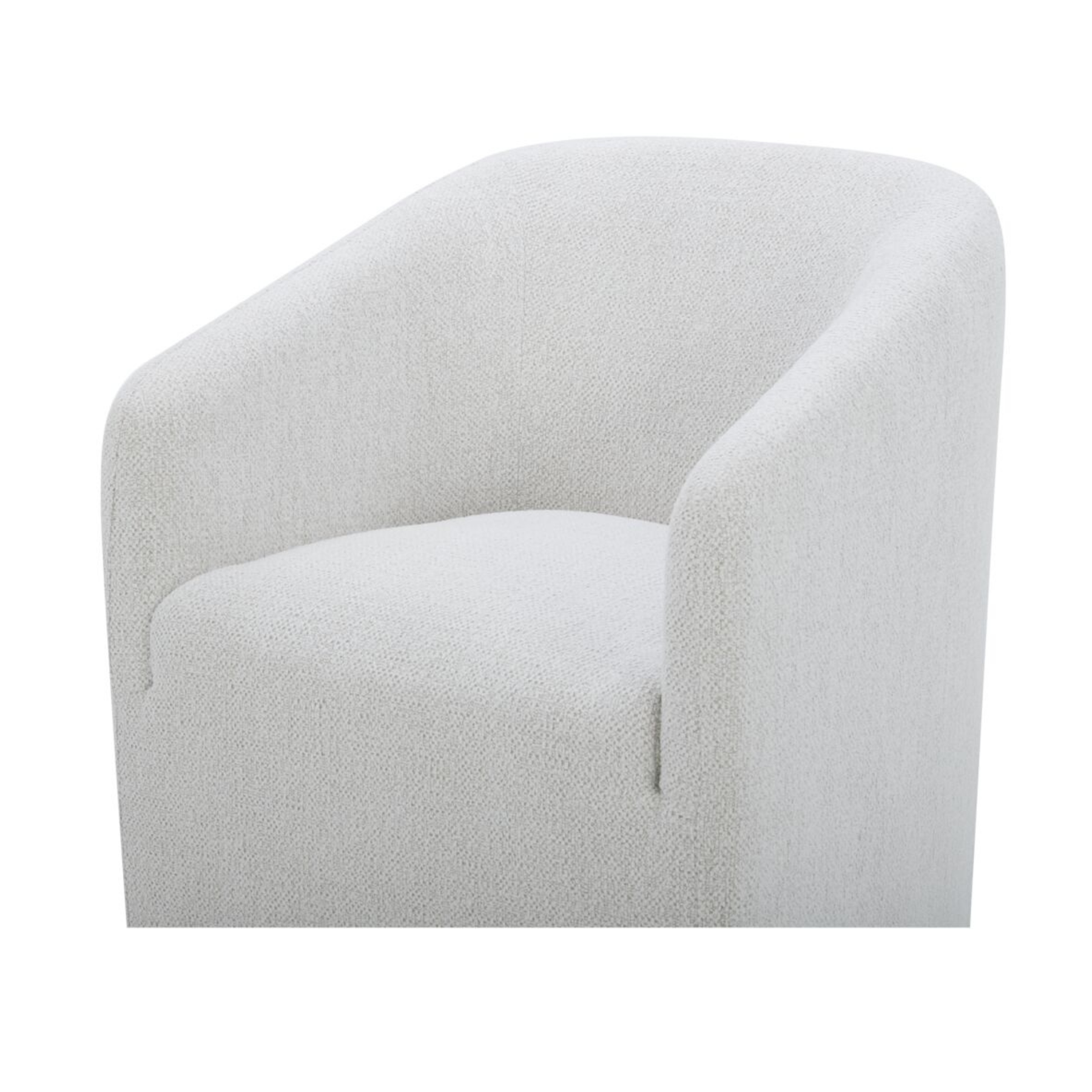 Looks polished and rolls with it. Sandy brings ease to the table. With a curved back, comfy seat, and smooth-rolling casters, it’s built for long meals, quick coffees, and anything in between. Fully wrapped in soft fabric upholstery, the silhouette feels seamless and considered--for diners who like to drift.