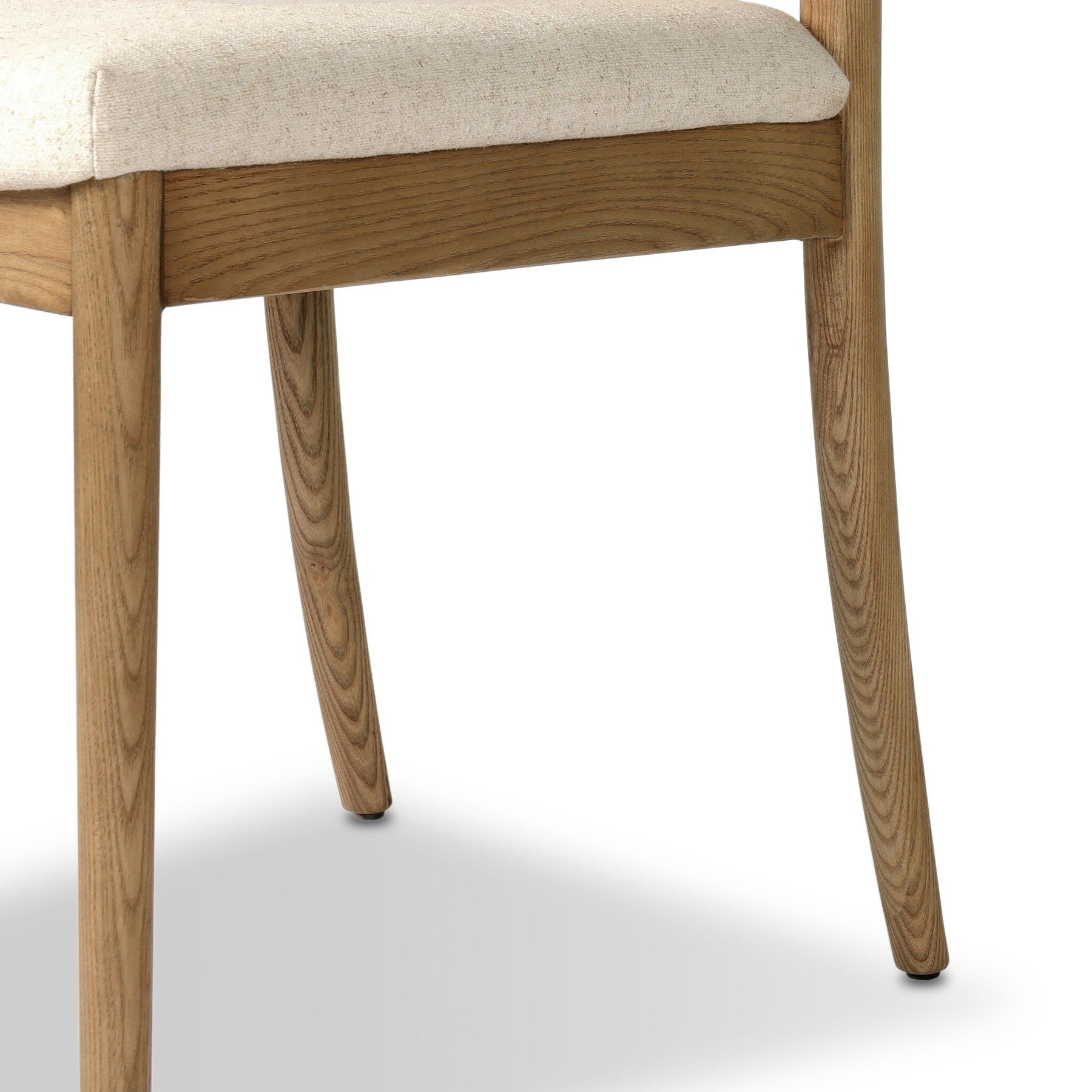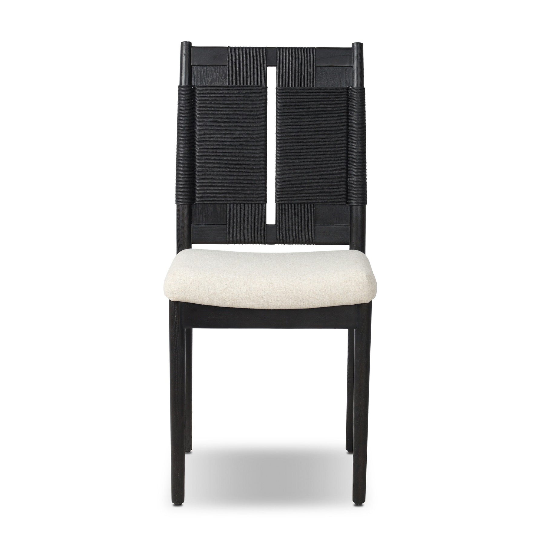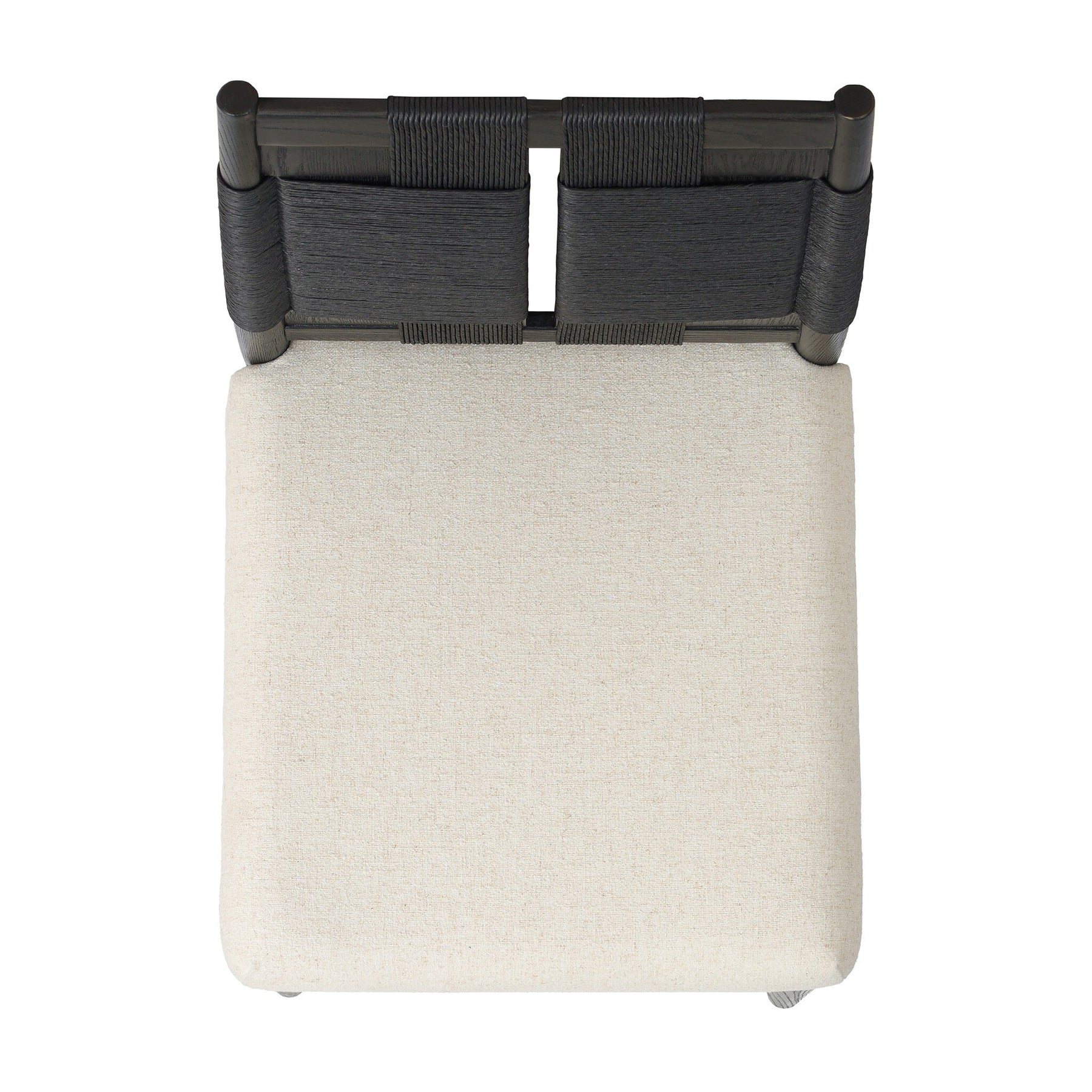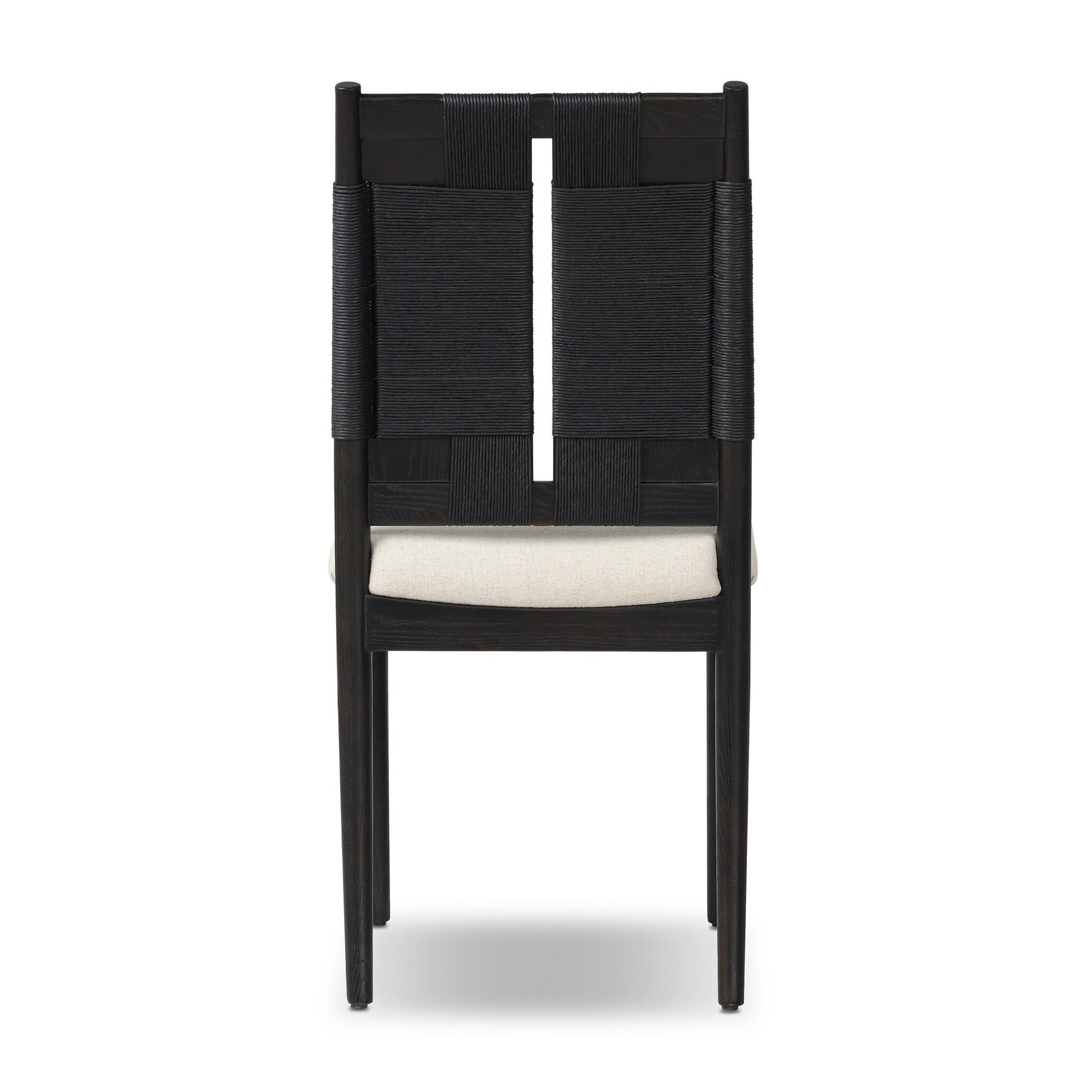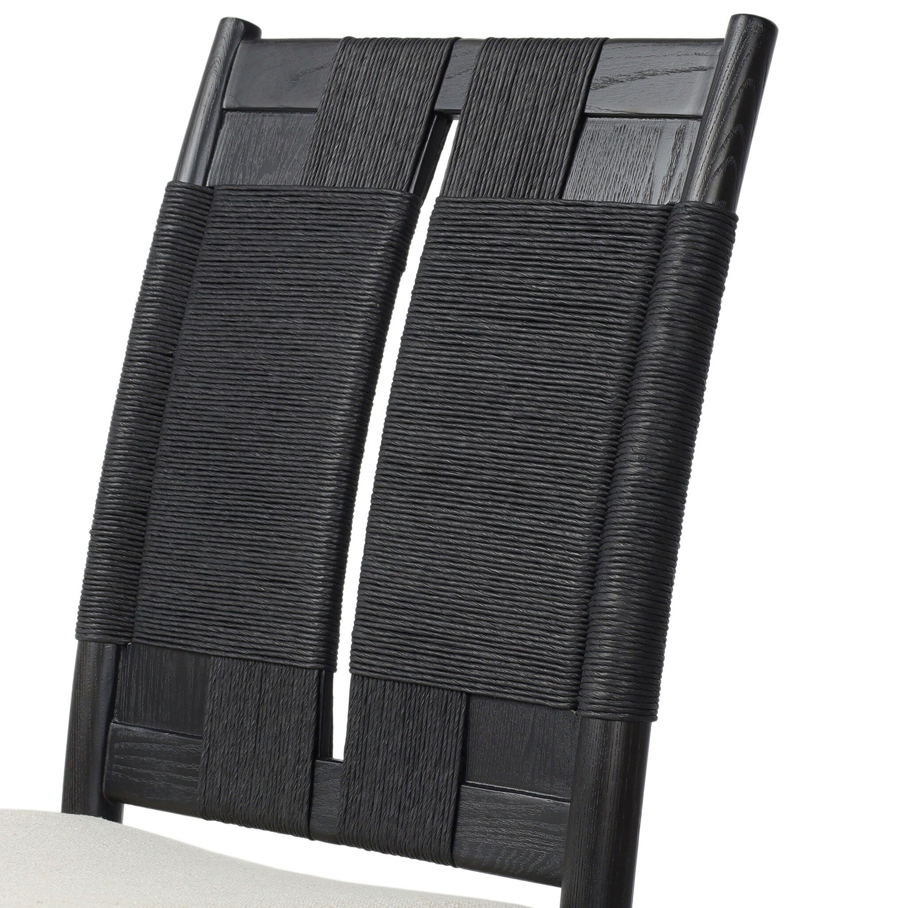 A slit-back design wrapped in paper cord adds eye-catching texture and style to this armless dining chair. Crafted from ash wood in your choice of light amber or black finish, it’s cushioned with a natural linen-cotton performance fabric for lasting comfort. Steam the fabric for a crisp, tailored look.