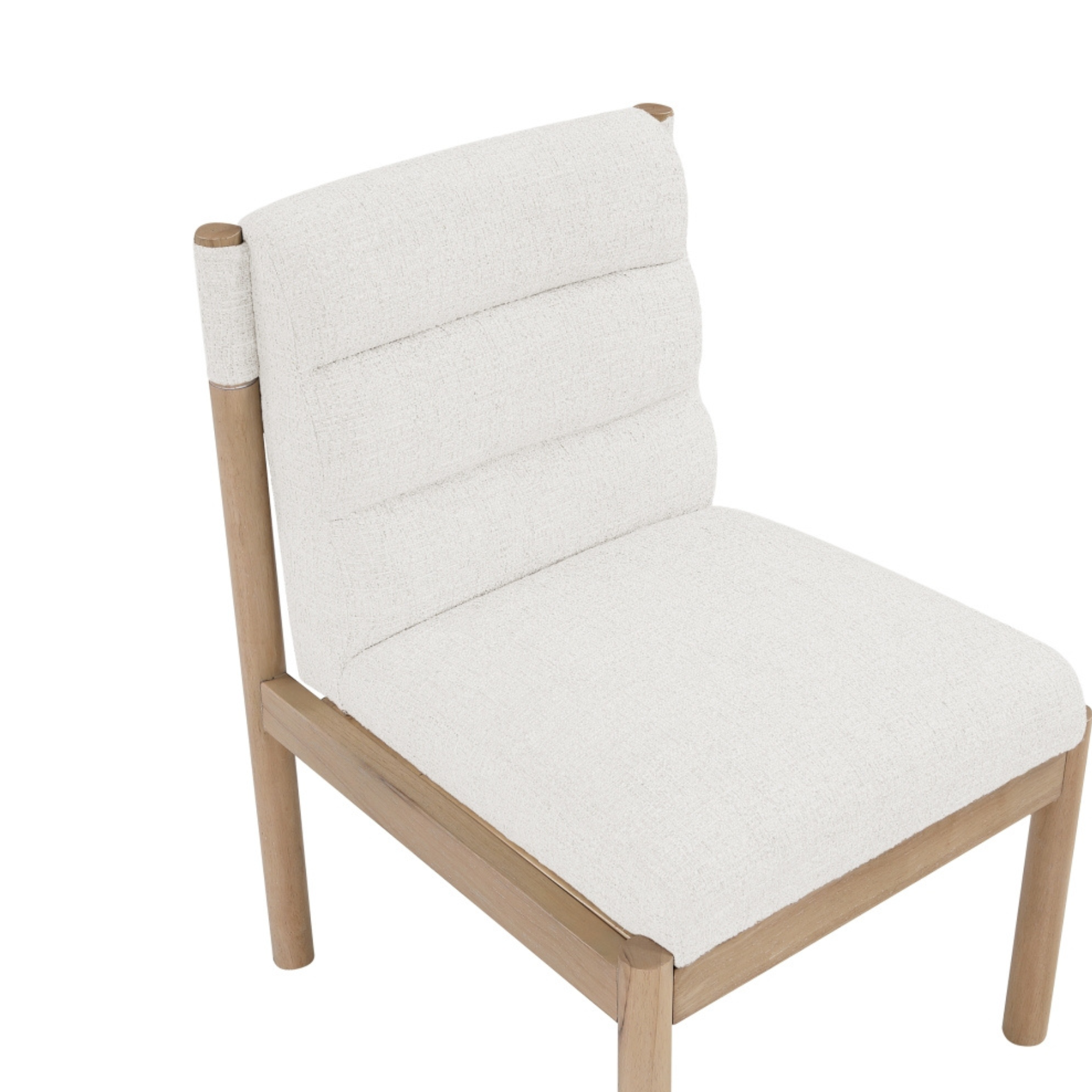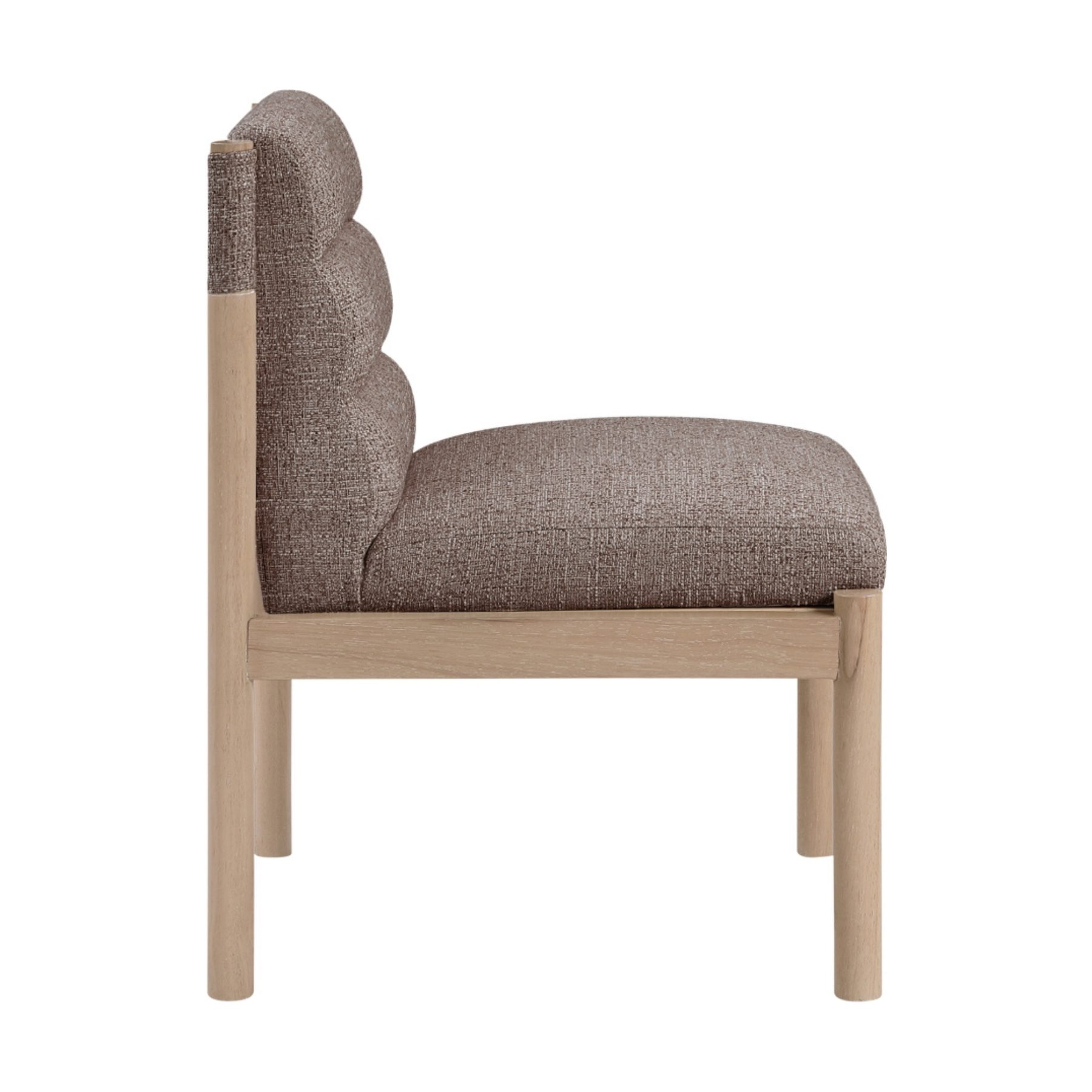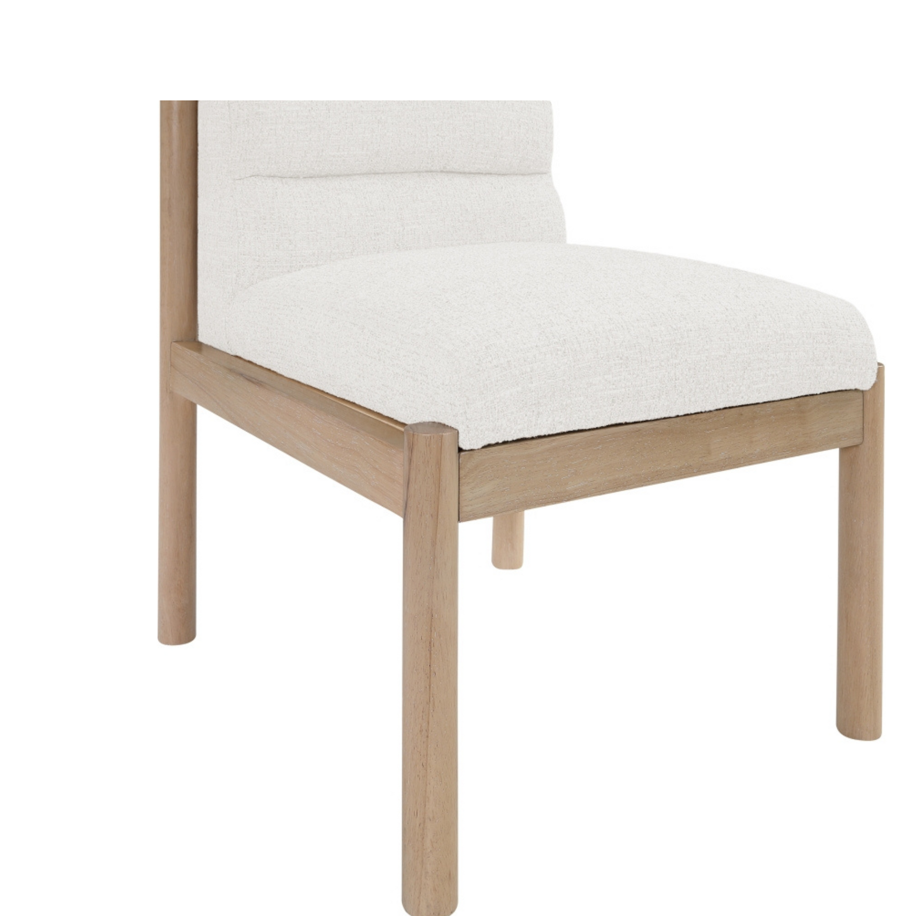 Textured and tailored, the Tavia beige linen-textured fabric upholstered dining chair brings subtle elegance to the table. Its two-tone weave adds visual depth, while the solid wood frame in a natural finish offers durability and warmth. With clean lines and Art Deco inspiration, it balances comfort with timeless style.