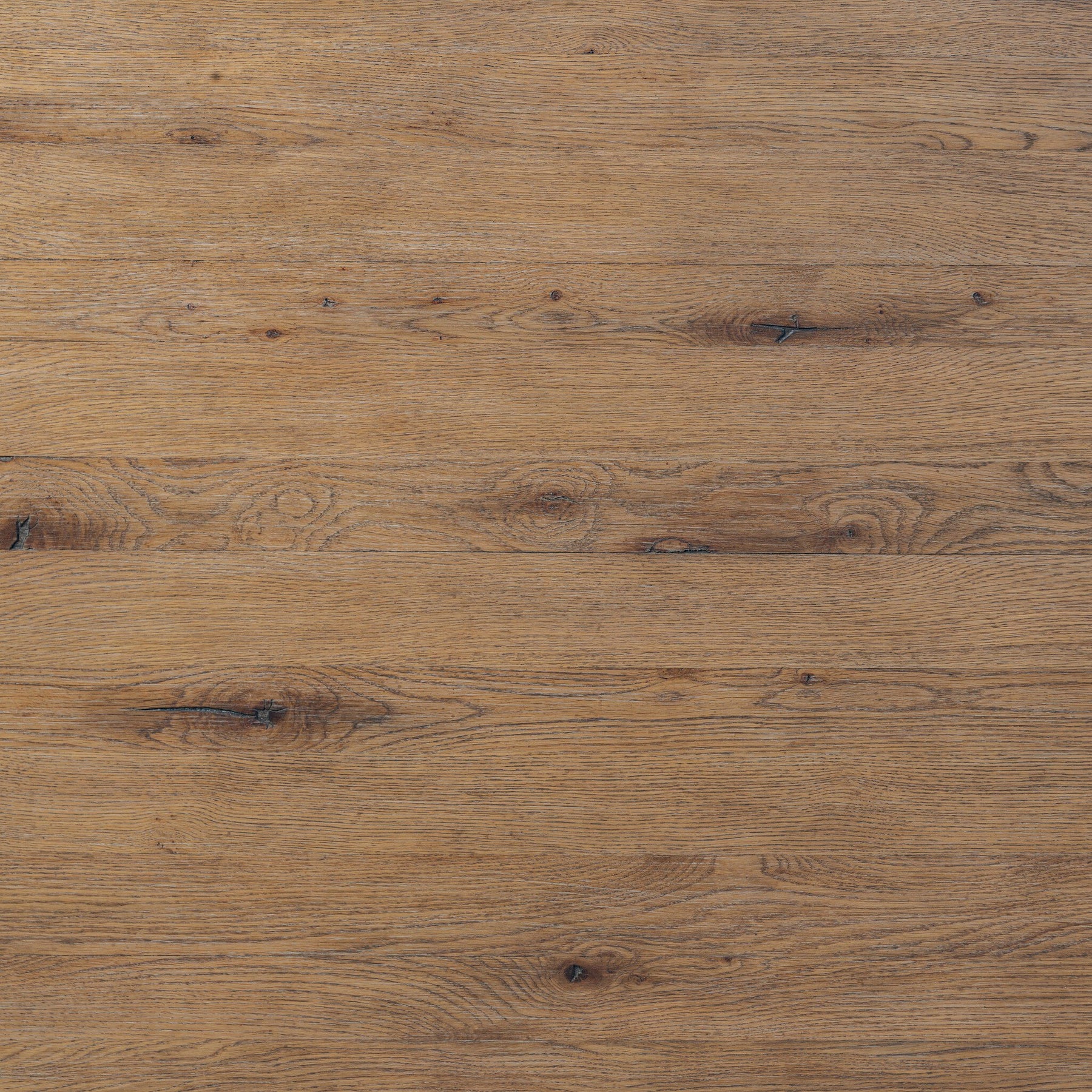 Made from weathered oak, simple lines and a light, rustic finish play up the natural beauty of this double pedestal dining table. Sized to welcome up to eight guests comfortably.