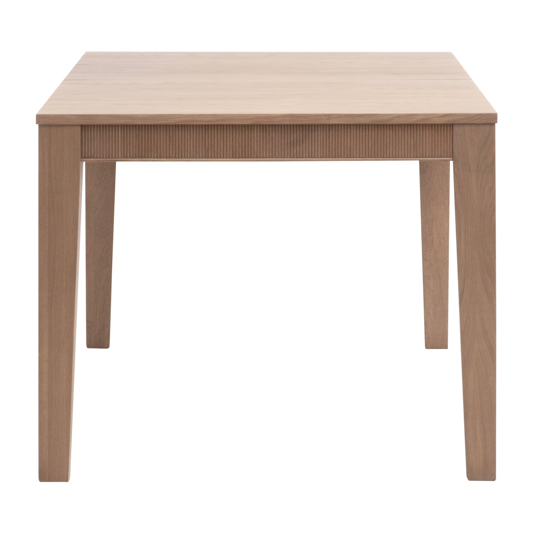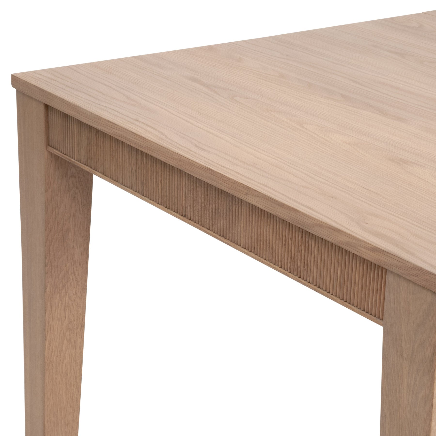 Made from oak with a natural finish, the Highland Extension Dining Table offers both style and function. It measures 72" wide and extends to 87" with a removable leaf, seating up to eight guests comfortably. The fluted apron adds subtle detail, and the extension leaf stores separately for a neat appearance.