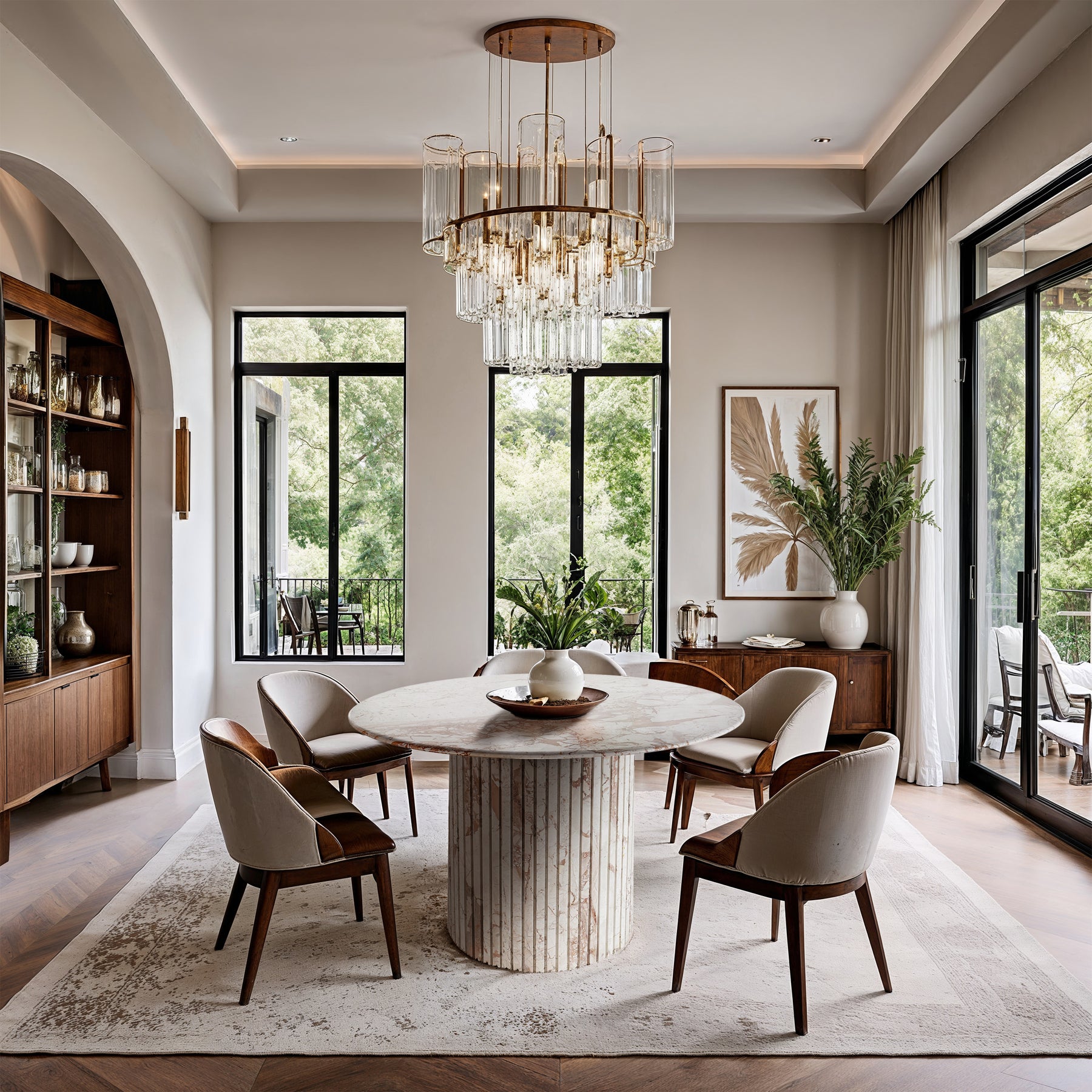 Add a refined look to your room with this handcrafted Genoa dining table, a stunning masterpiece that marries elegance and practicality. Crafted from genuine marble, each table is a unique work of art.  The fluted marble base adds a touch of art deco design, making it a statement piece in any room and adding to its heirloom-quality design.
