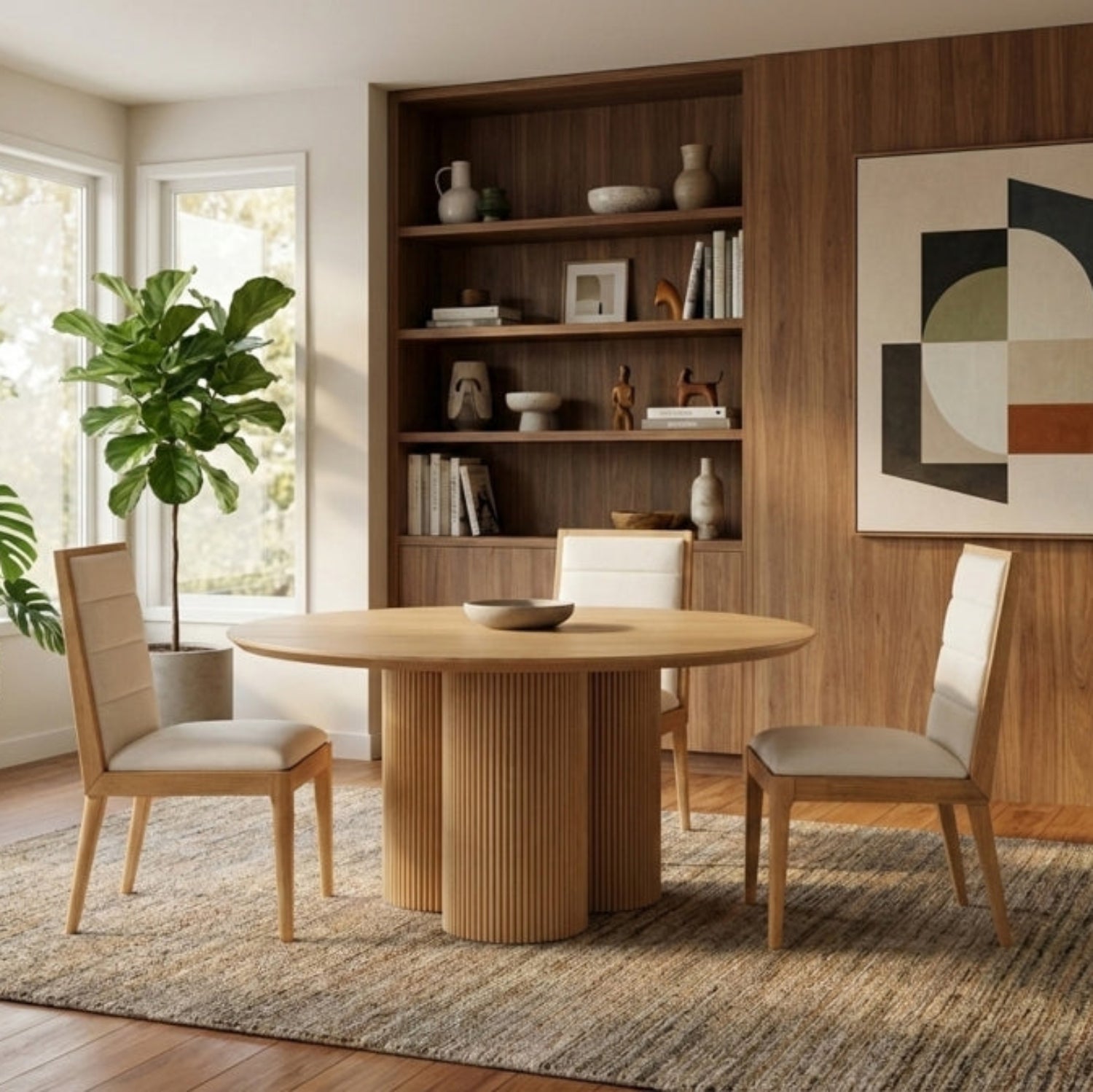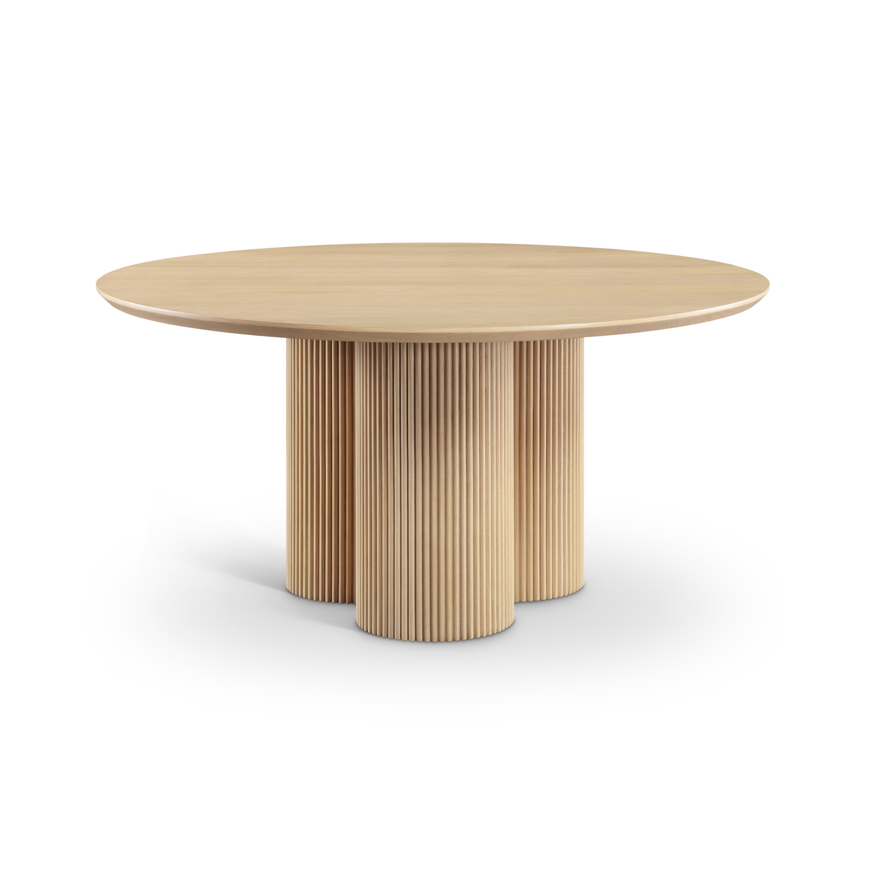 Gather your favorite peeps around this Samba dining table. A sleek shade of white or black, this handsome mid-century designed table has a modish look that's perfect for both contemporary and traditional dining rooms. The natural or black oak veneer table top measures 60 inches, giving you oodles of room for place settings and lots of elbowroom for dinner guests. Made from ash wood and wood products, this sturdy table has a solid wood fluted base for added aesthetics.