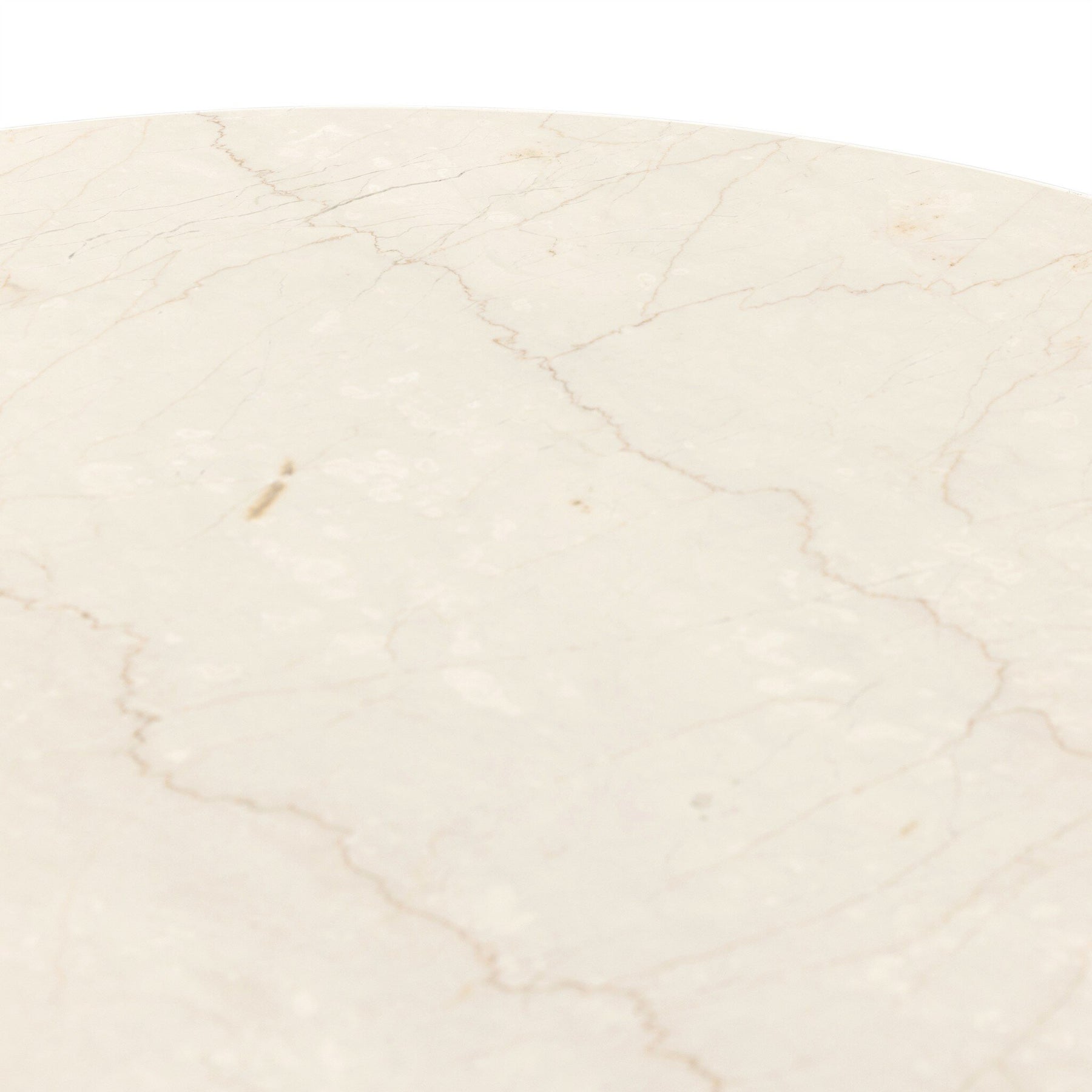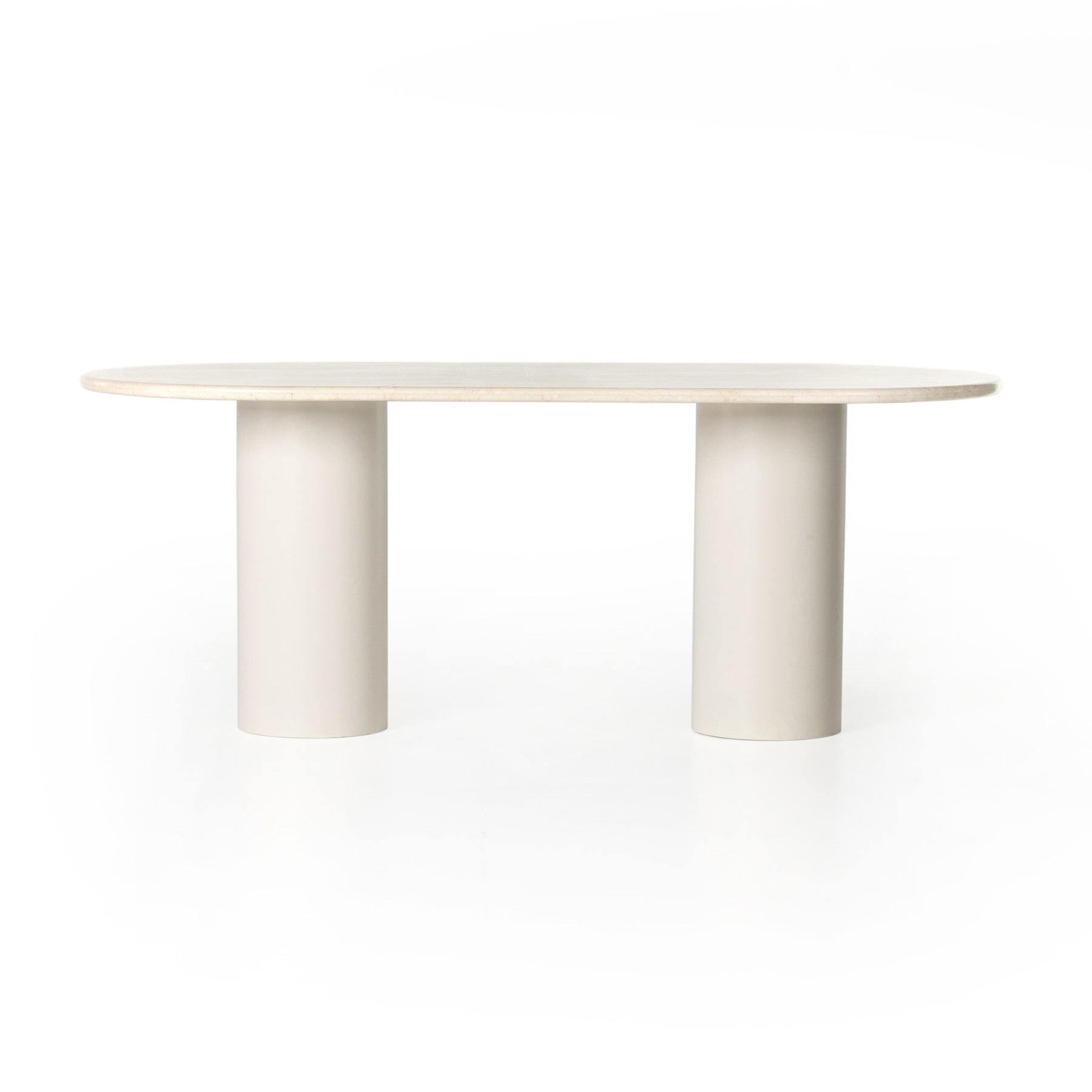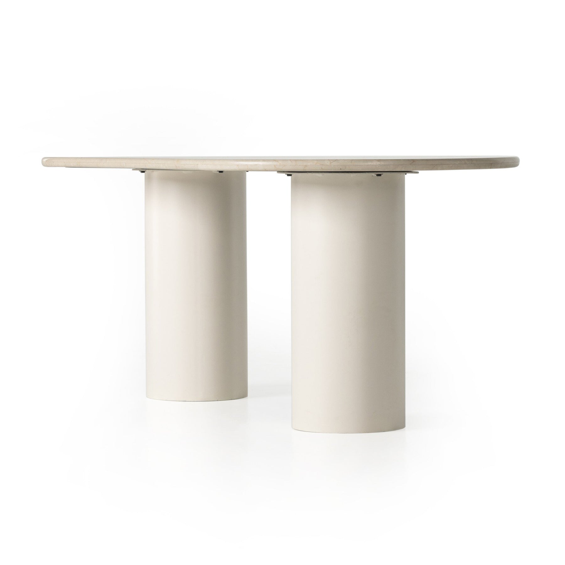 Simply sophisticated. A spacious oval-shaped table inspired by 1970s Italian design, an ivory-finished iron base supports a rounded tabletop of cream-colored solid marble, for a fresh, monochromatic look that pairs with just about anything. Seats six comfortably.