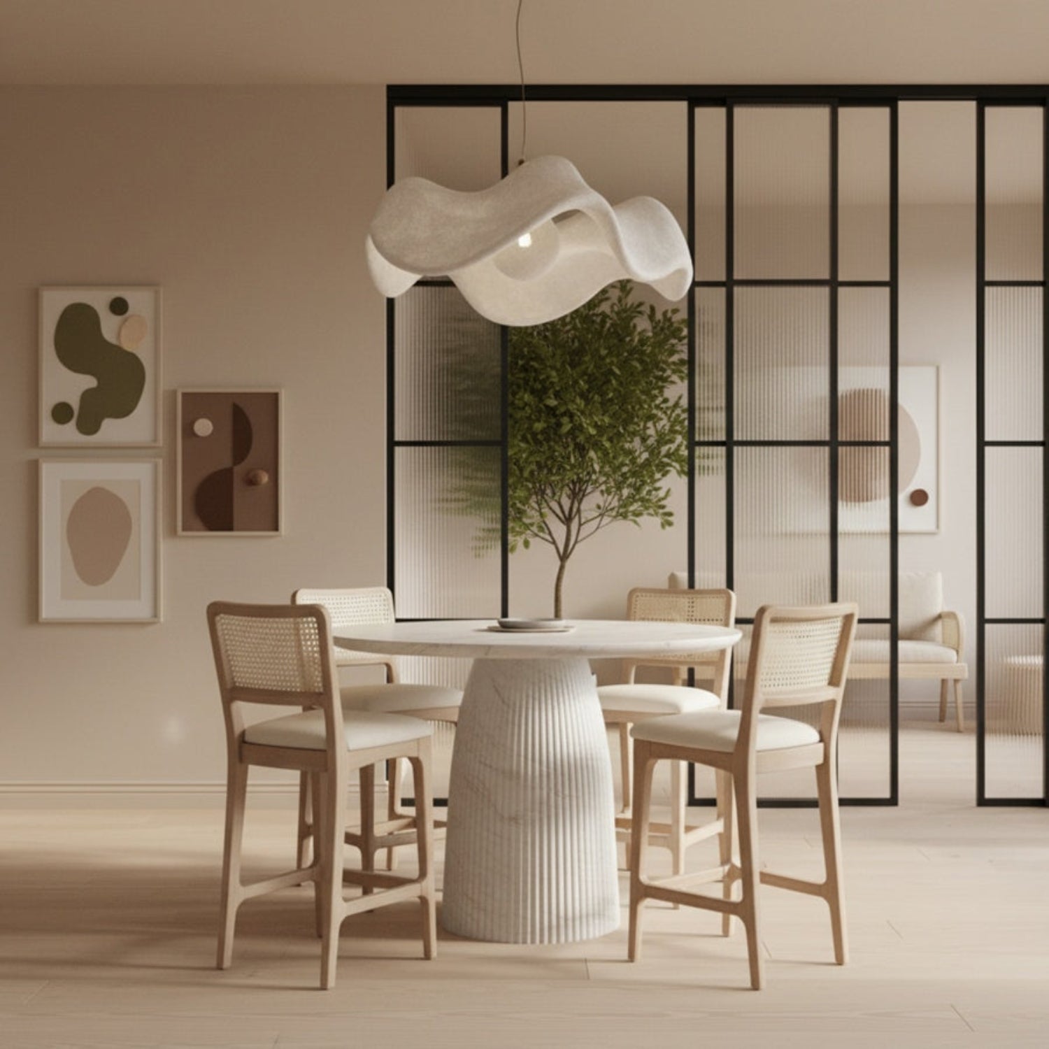 • Fluted Concrete Counter Height Table in Marble Finish