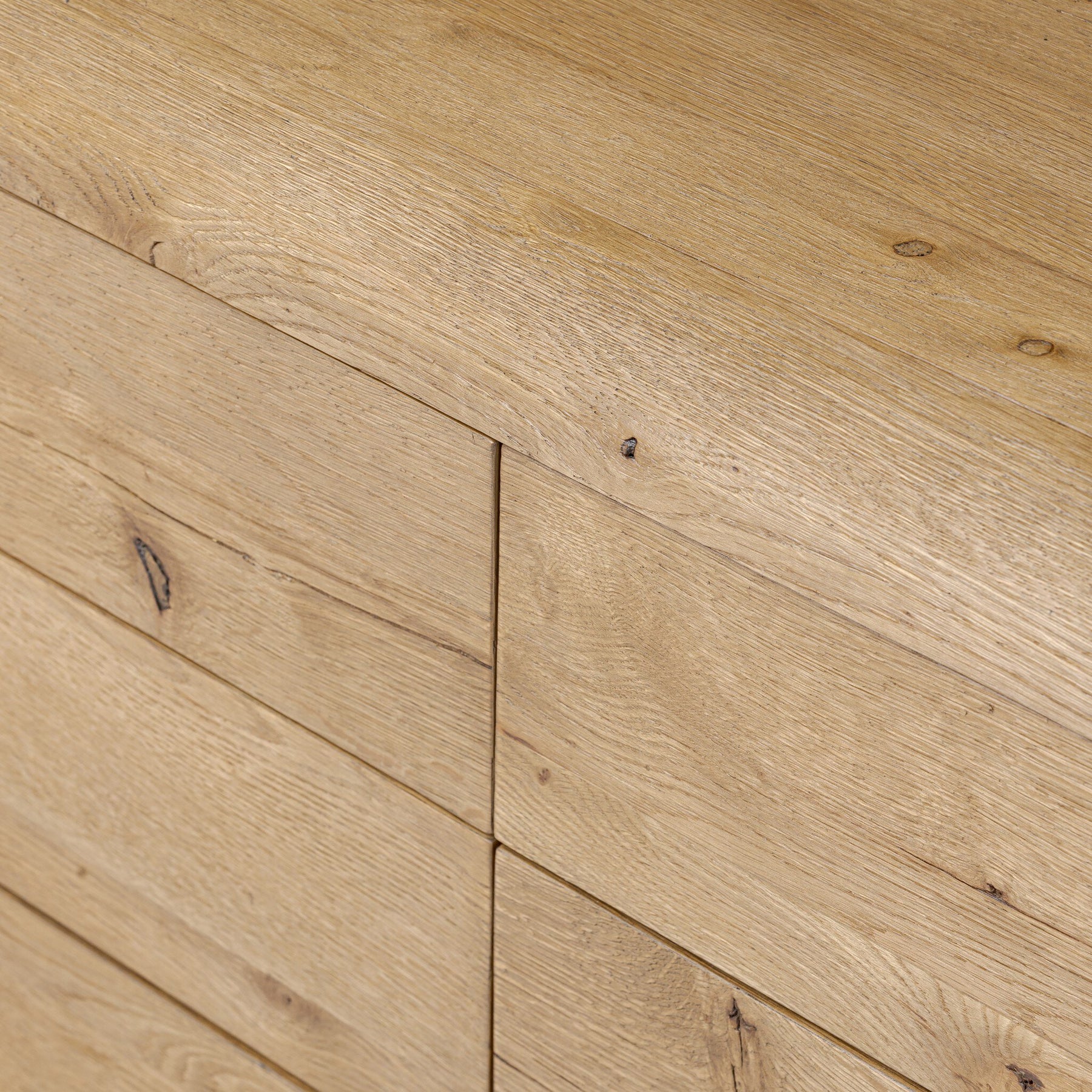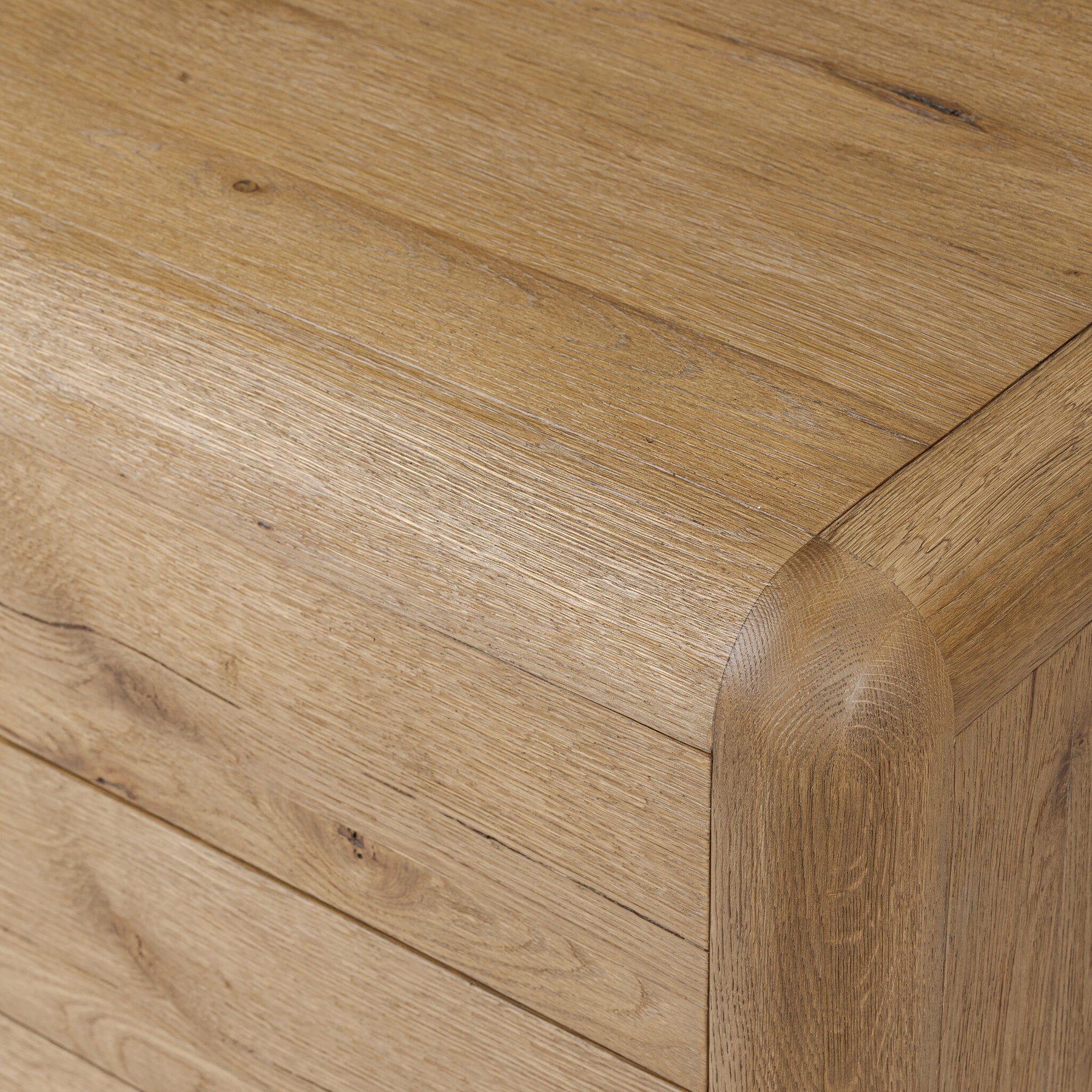 Blending modern design with classic features, this dresser is at once soft and bold. Set low to the ground on rounded feet, the dresser has prominent rounded corners that emphasize its smooth finish. Crafted from solid warm oak and veneers with push-latch hardware for a clean front.