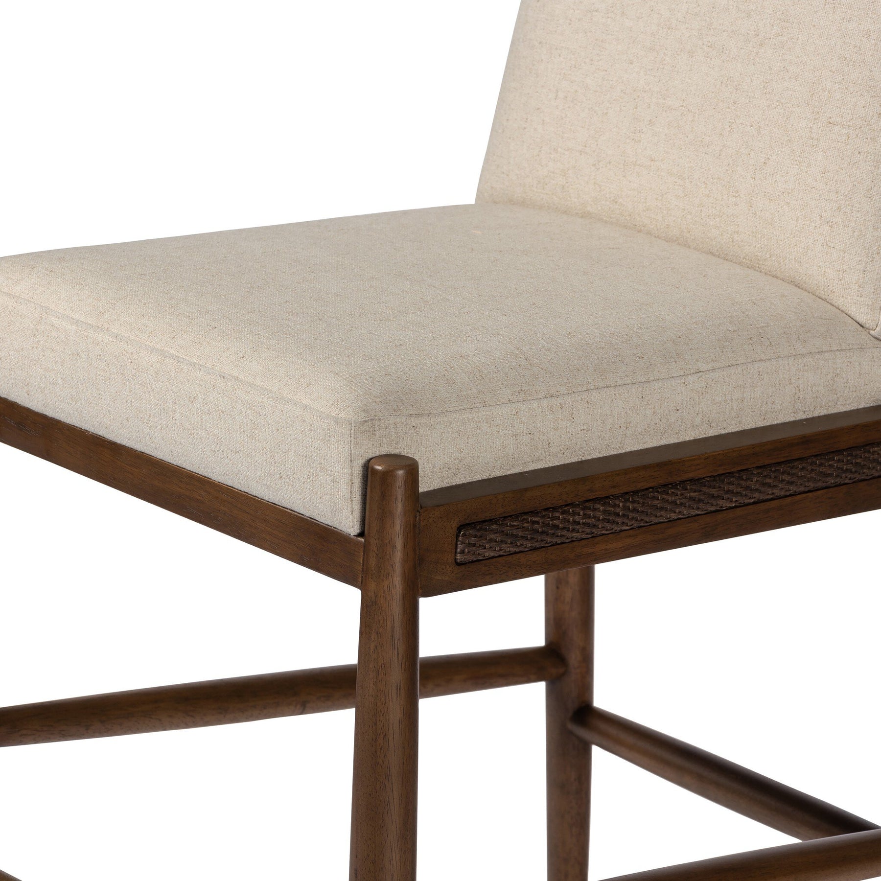 The traditional rattan chair gets an elevated look in this heritage-inspired bar/counter stool. Clean lines create a sleek wood frame that provides a simple backdrop to mixed materials. Designed with rattan accents on the side, while natural performance linen provides practical seating for everyday use. Performance fabrics are specially created to withstand spills, stains, high traffic and wear, ensuring long-term comfort and unmatched durability.