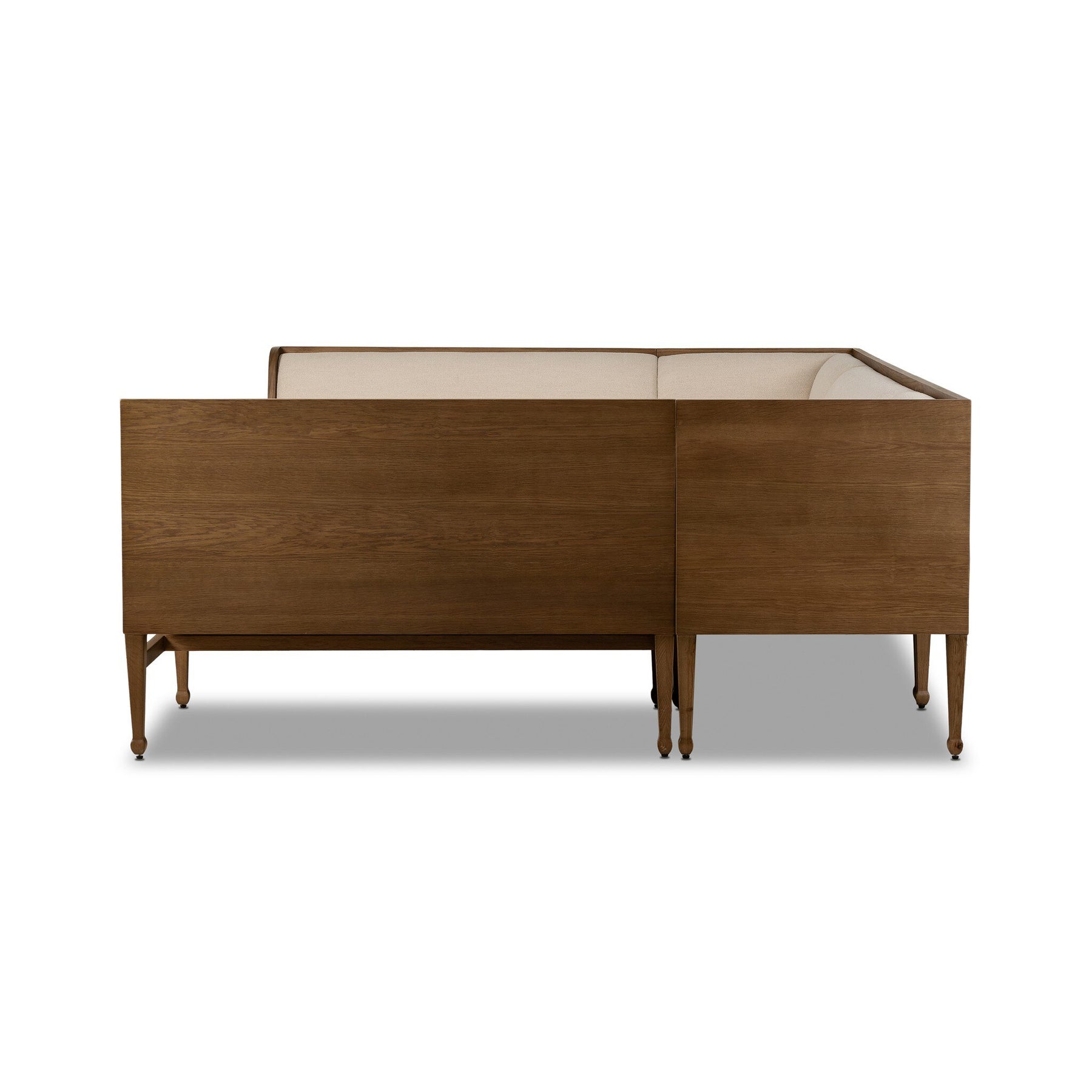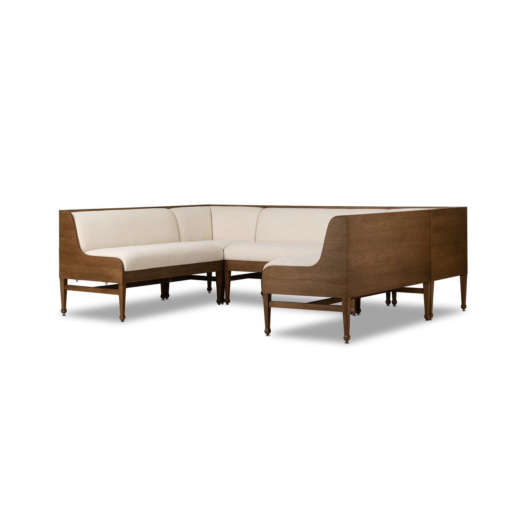 Create your own corner for dining and conversation with this large, modular banquette, crafted from warm oak. Thick cushioning supports the seat and back, upholstered in snow-white Crypton® performance fabric. Crypton® performance fabric is specially engineered for protection against stains, moisture and odor. Tall, tapered square legs have bun feet for a traditional finish.