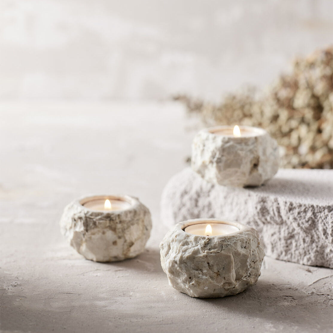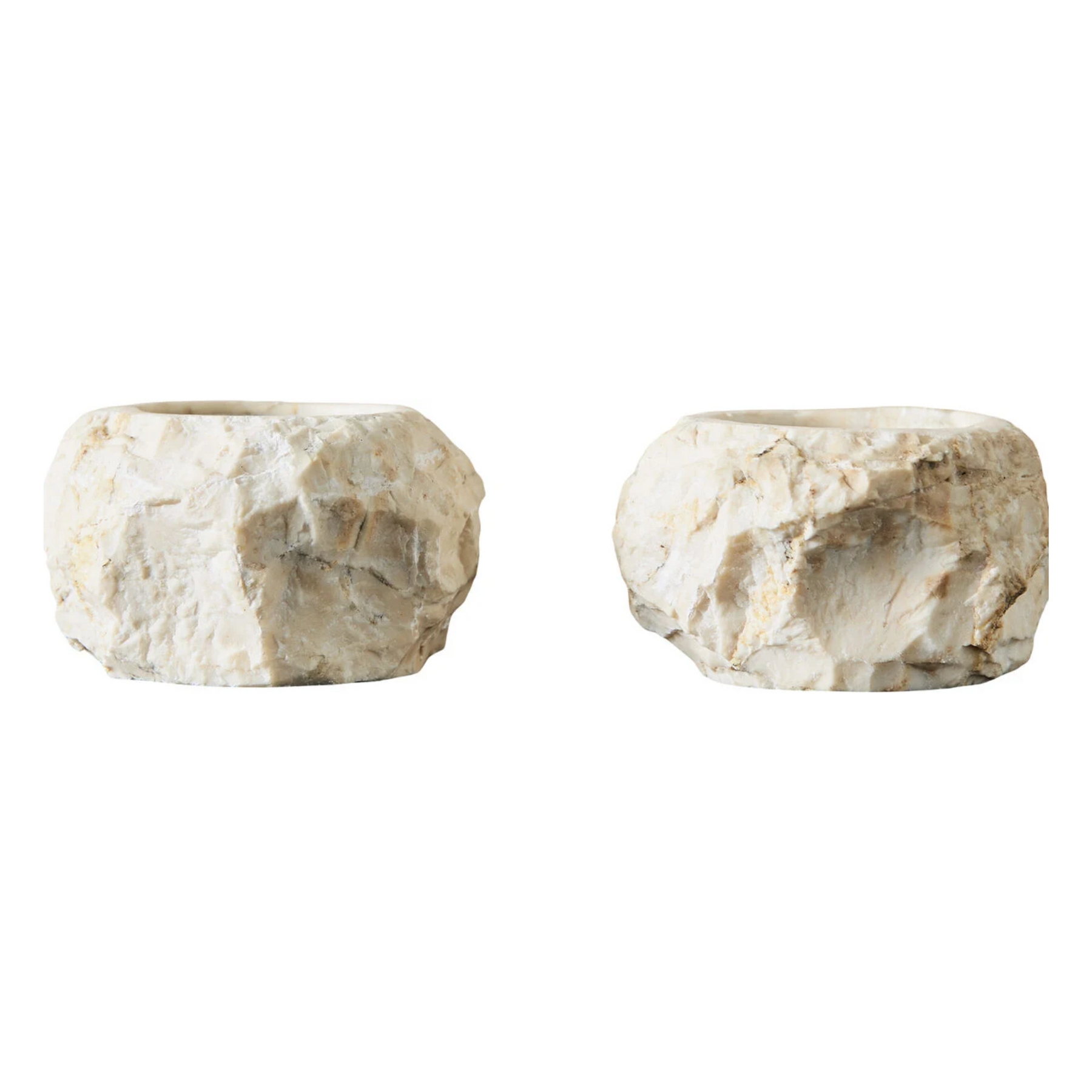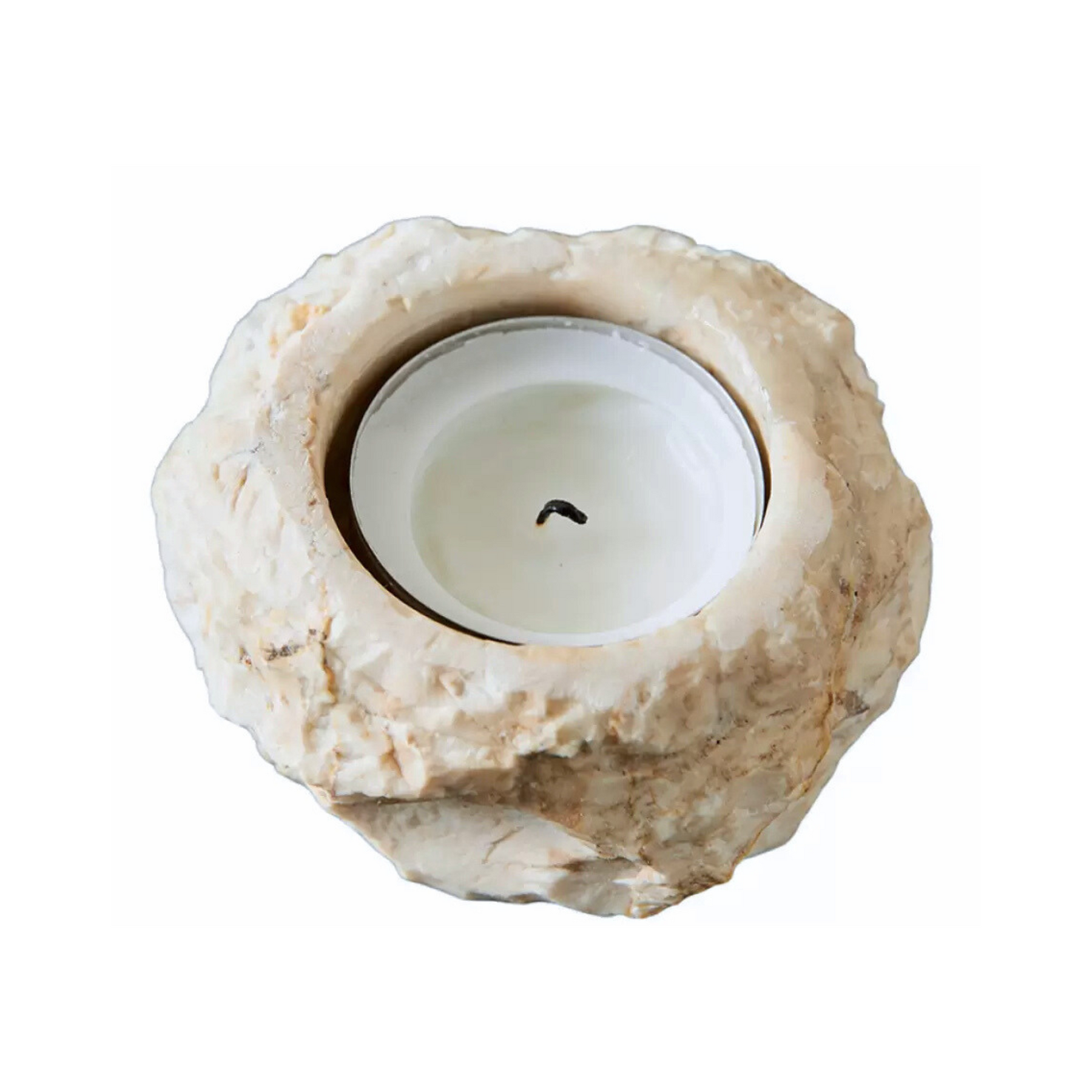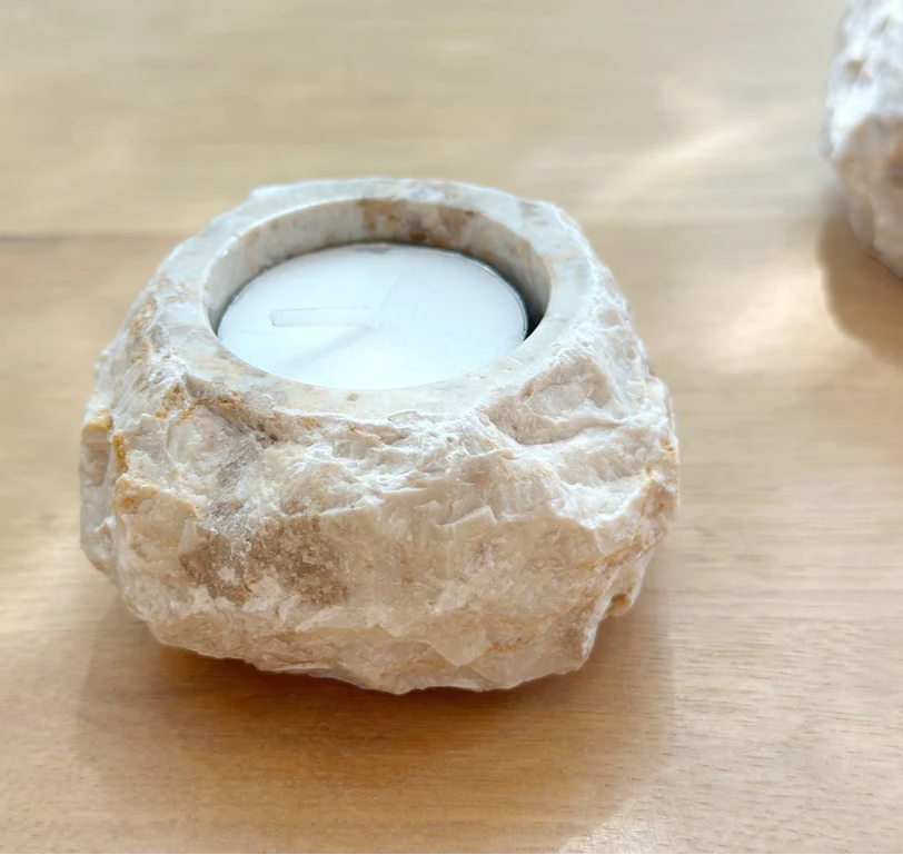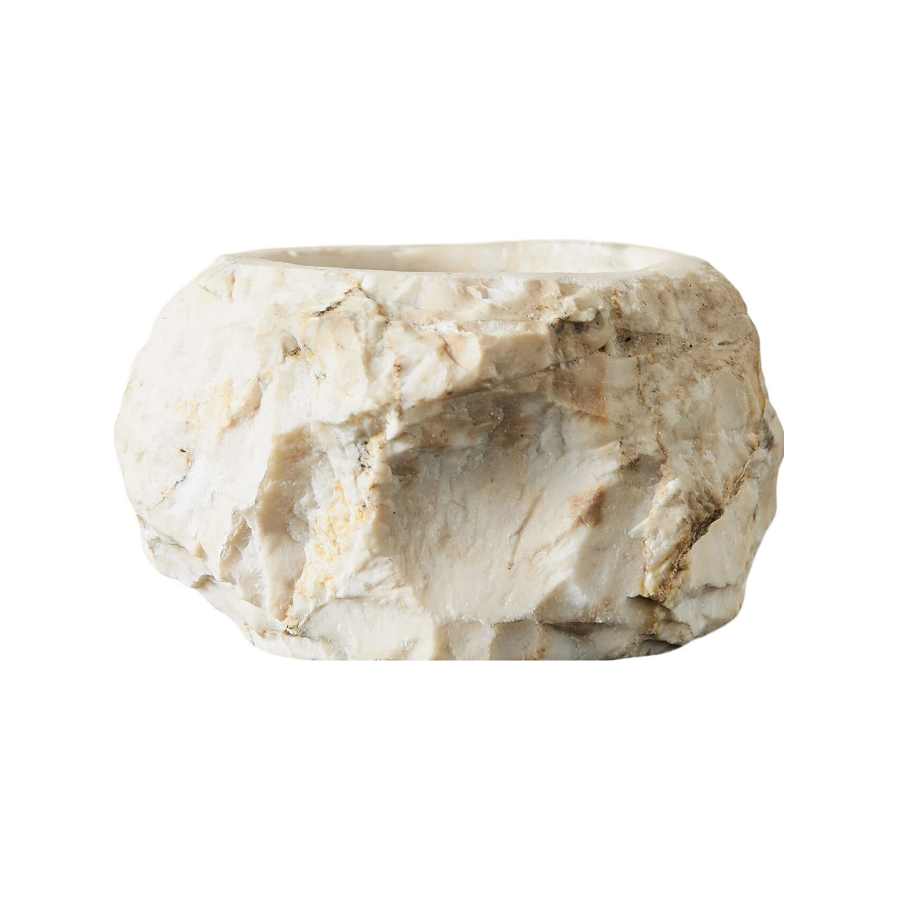 Carved from natural marble sourced from the mountains of Indonesia, the Benson Candle Holder showcases soft, organic shades and subtle variations that make each piece one of a kind. Its unique texture and glow add warmth and elegance to any space—perfect on a windowsill, bathroom counter, or as part of a table setting.