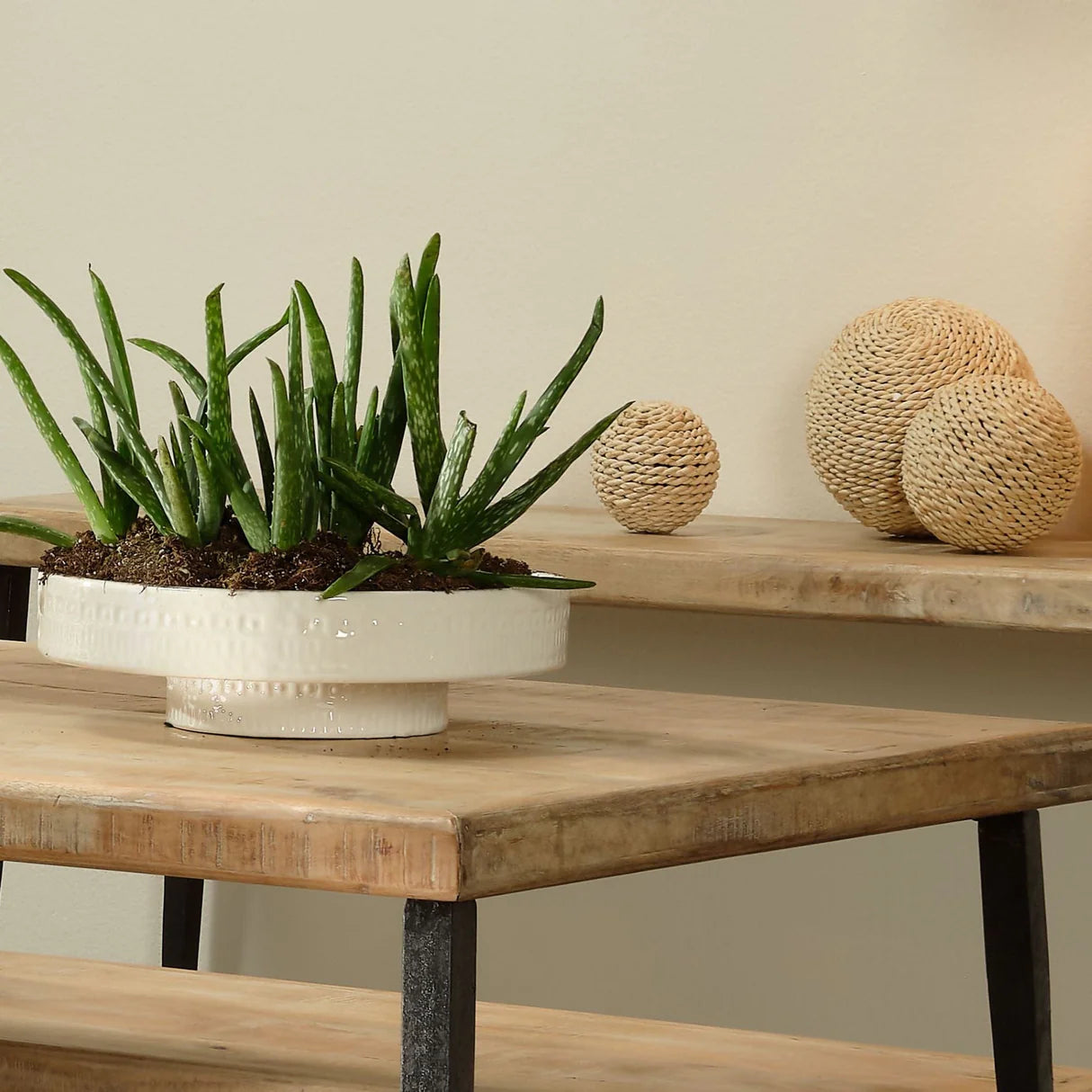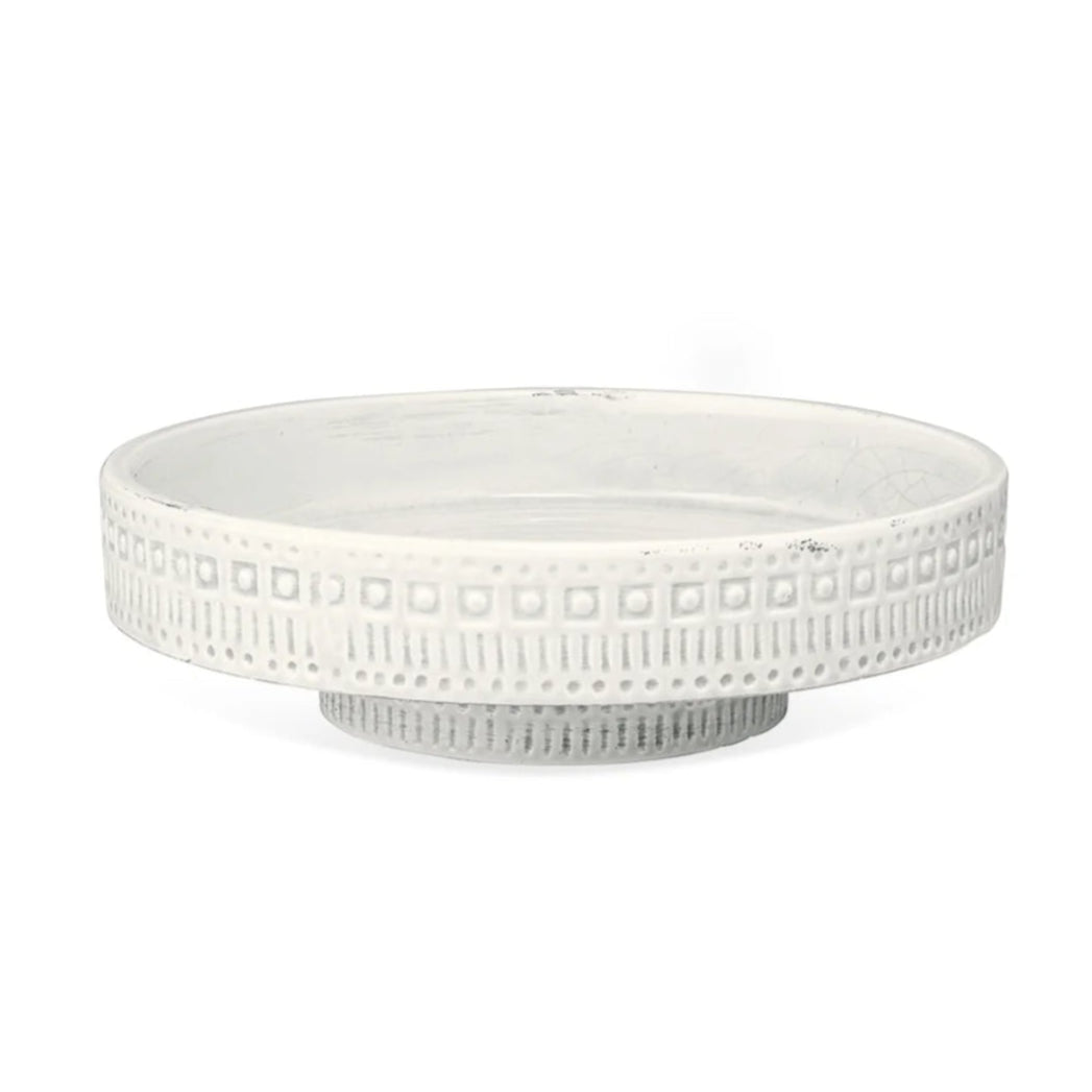 The Engraved Pedestal Bowl is crafted from sturdy ceramic and adorned with sophisticated geometric patterns. It serves beautifully as a holder for candles, a platform for decorative accents, or a graceful enhancement to any setting.