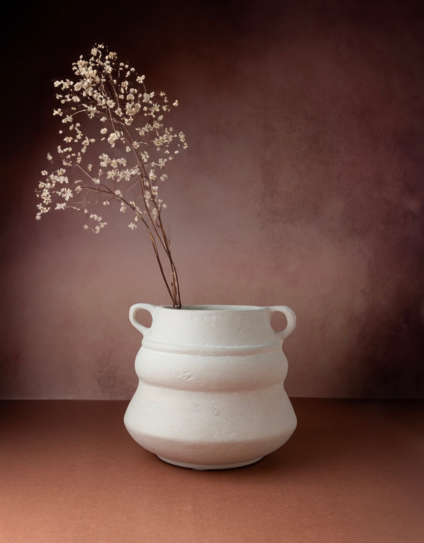 The Hailey vase is made of paper mache and has a natural white finish