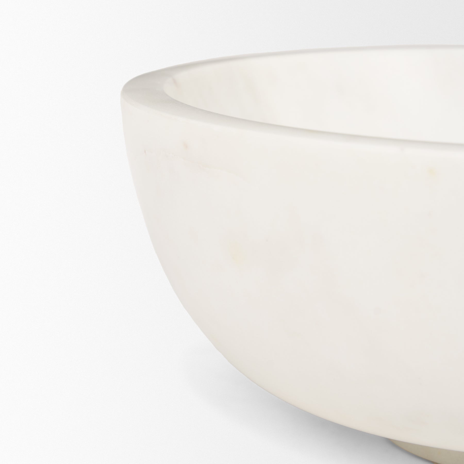 Lorena is a luxurious decorative bowl meticulously crafted from premium solid white Banswara marble. This food safe, high-end piece serves as both a beautiful decorative accent and a functional addition to your space. Showcasing the natural allure of marble, Lorena will lend timeless elegance. Available in two sizes.