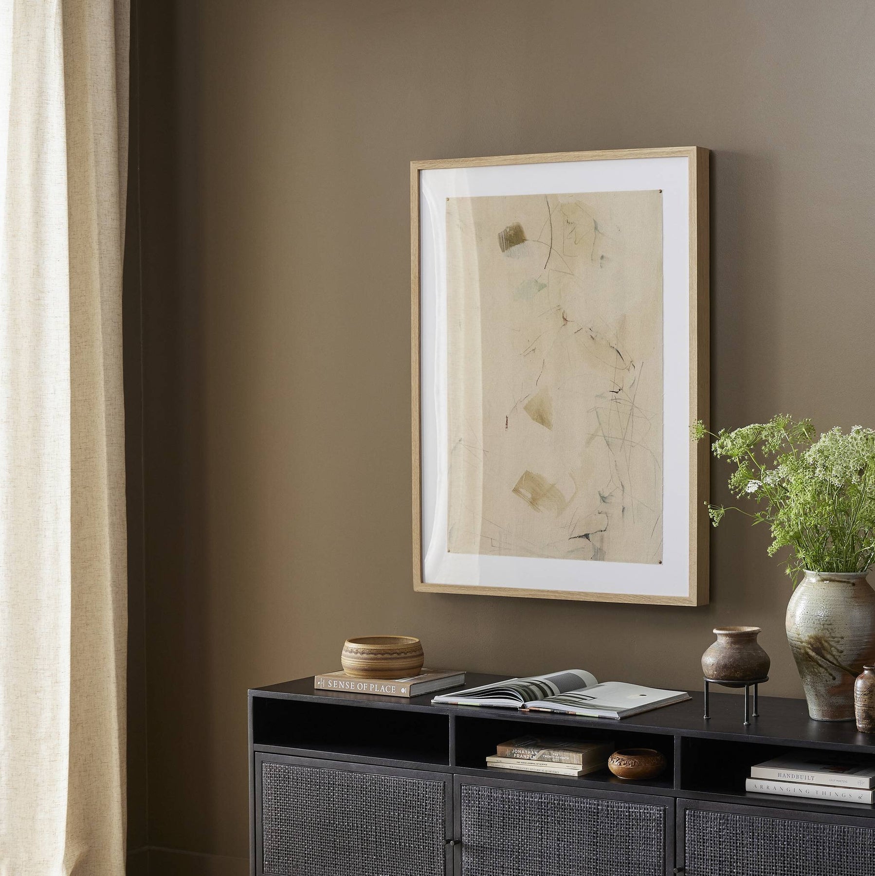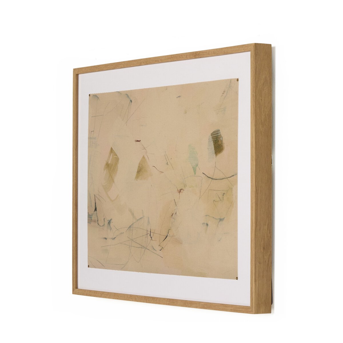 Inspired by modern minimalism, artist and graphic designer Dan Hobday's unique, line-driven work is printed on matte canvas and framed within white oak, for a clean, gallery-quality look. Crinkled and loosely floated with brass pins. If not currently in stock, this texture-enhanced piece ships within three weeks. Handmade in Austin, Texas.