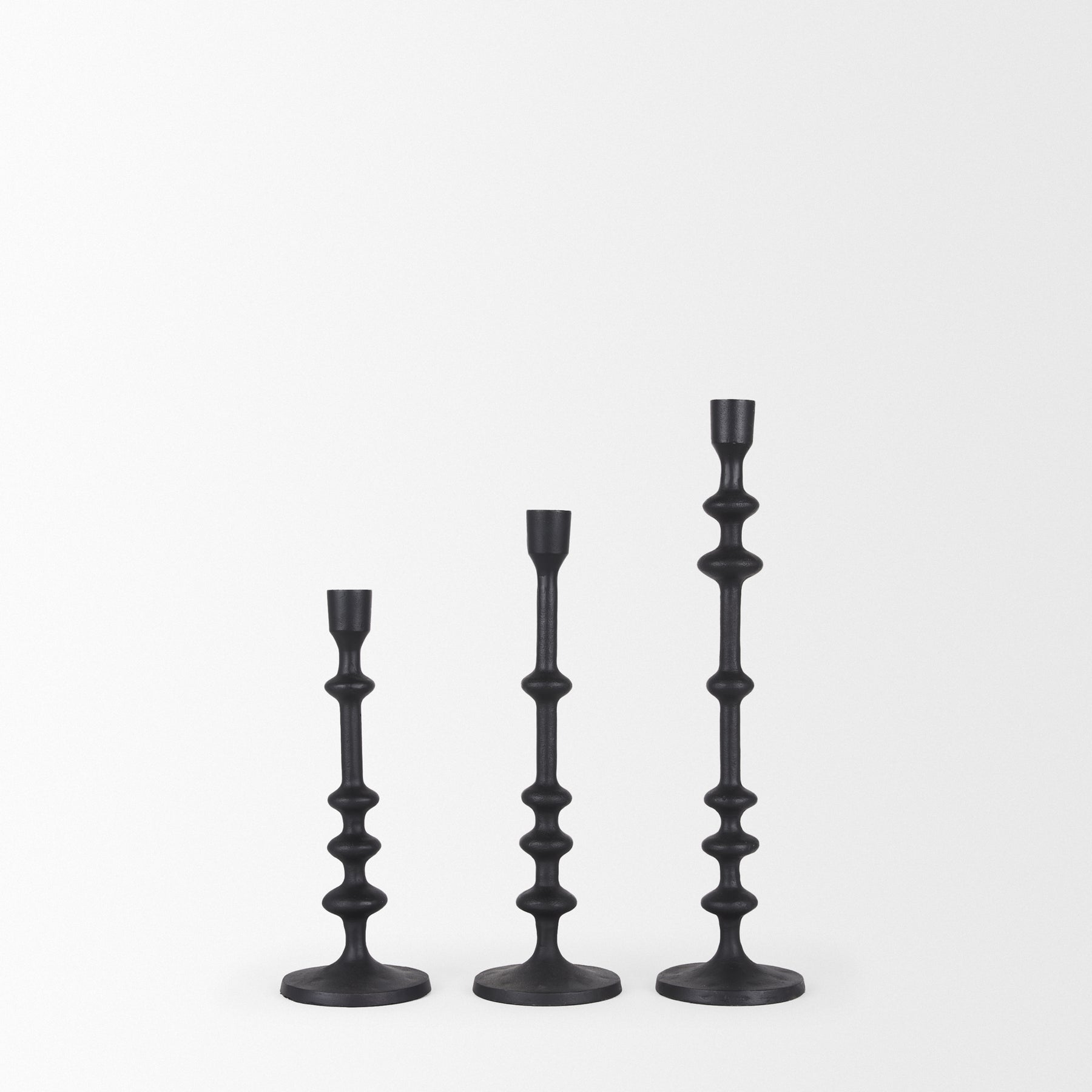 Paulina is a set of three textured cast aluminum candle holders for taper candles.