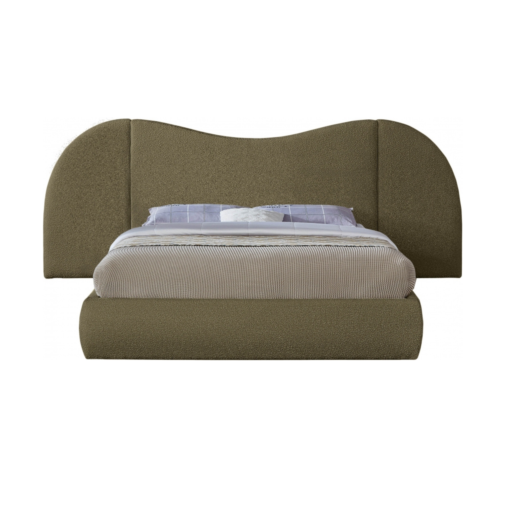 Awaken to the promise of a blissful slumber with the Luvia Boucle Fabric Bed, a luxurious haven that seamlessly blends classic elegance with contemporary design. Crafted with a sumptuous, rich boucle fabric, this bed beckons you to sink into its cloud-like embrace, inviting peaceful nights and rejuvenating mornings. Its gently curved headboard transcends mere aesthetics, offering unparalleled flexibility to suit your preferences and space. Removable side panels grant you the freedom to choose between a classic silhouette for a more open, airy feel for a spacious ambiance, or an expanded option that adds a more dramatic focal point to your room. Whether you favor a cozy nook or a bright and breezy retreat, this bed effortlessly adapts to your vision.