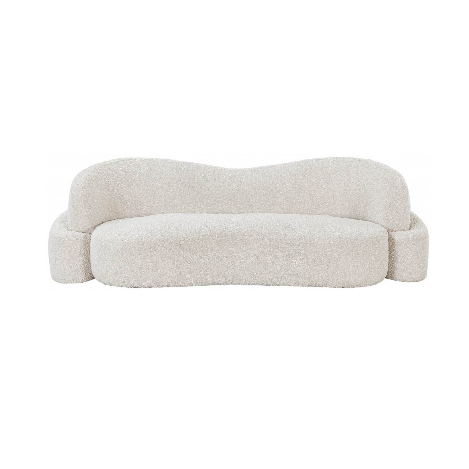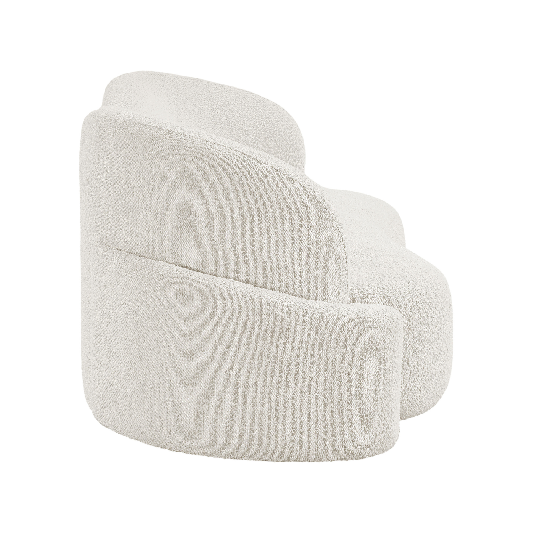 Inject casual comfort into your living room, bedroom, or dorm room with this Arso boucle fabric living room sofa. Not just another pretty face in the crowd, this sofa looks like a statement piece but feels like your favorite easy sofa. A delight to come home to at the end of the day, this sofa features a curved seat and back for a modish look and its covered in rich cream boucle fabric for softness you can appreciate.