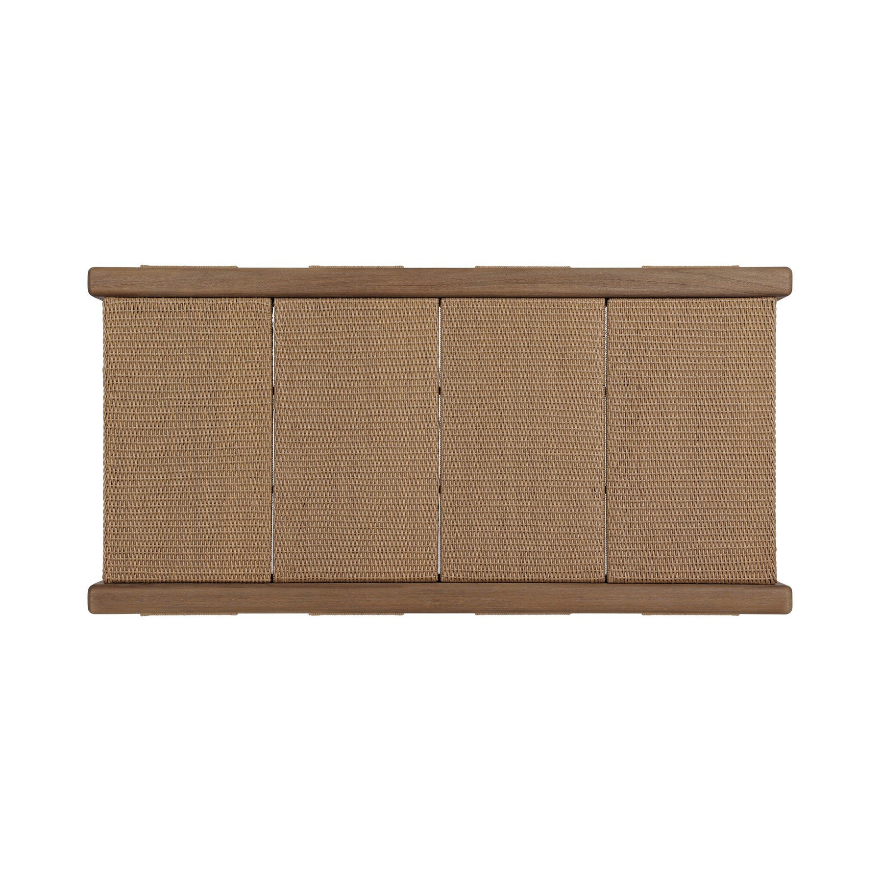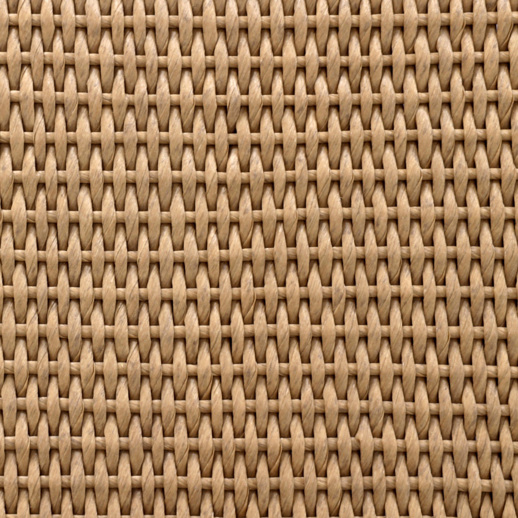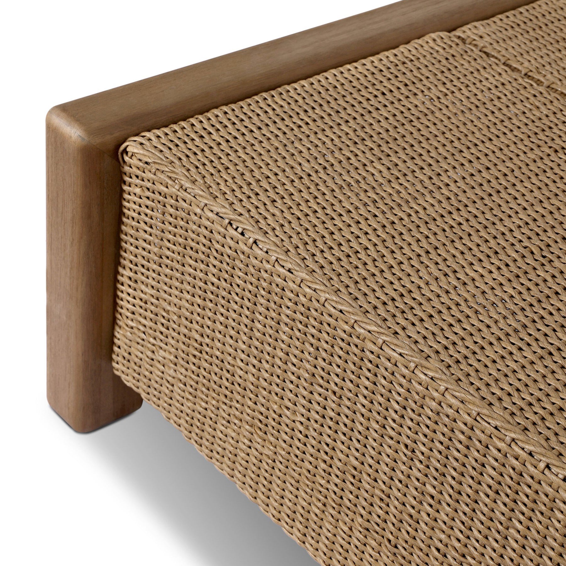 Texture and shape come together to shape this woven outdoor coffee table with mock slats. Peek-through connection points connect the wooden frame to the waterfall top. Cover or store indoors during inclement weather and when not in use.