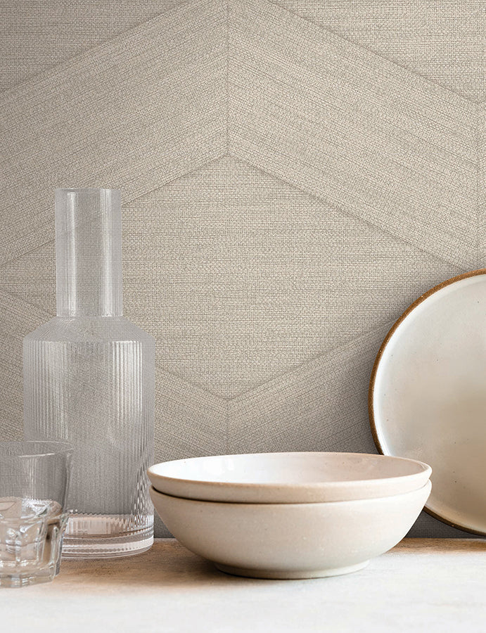 The Huntsman Wallpaper showcases a horizontal lozenge chevron that forms a broad, textured pathway over a meticulously layered field of faux grass.