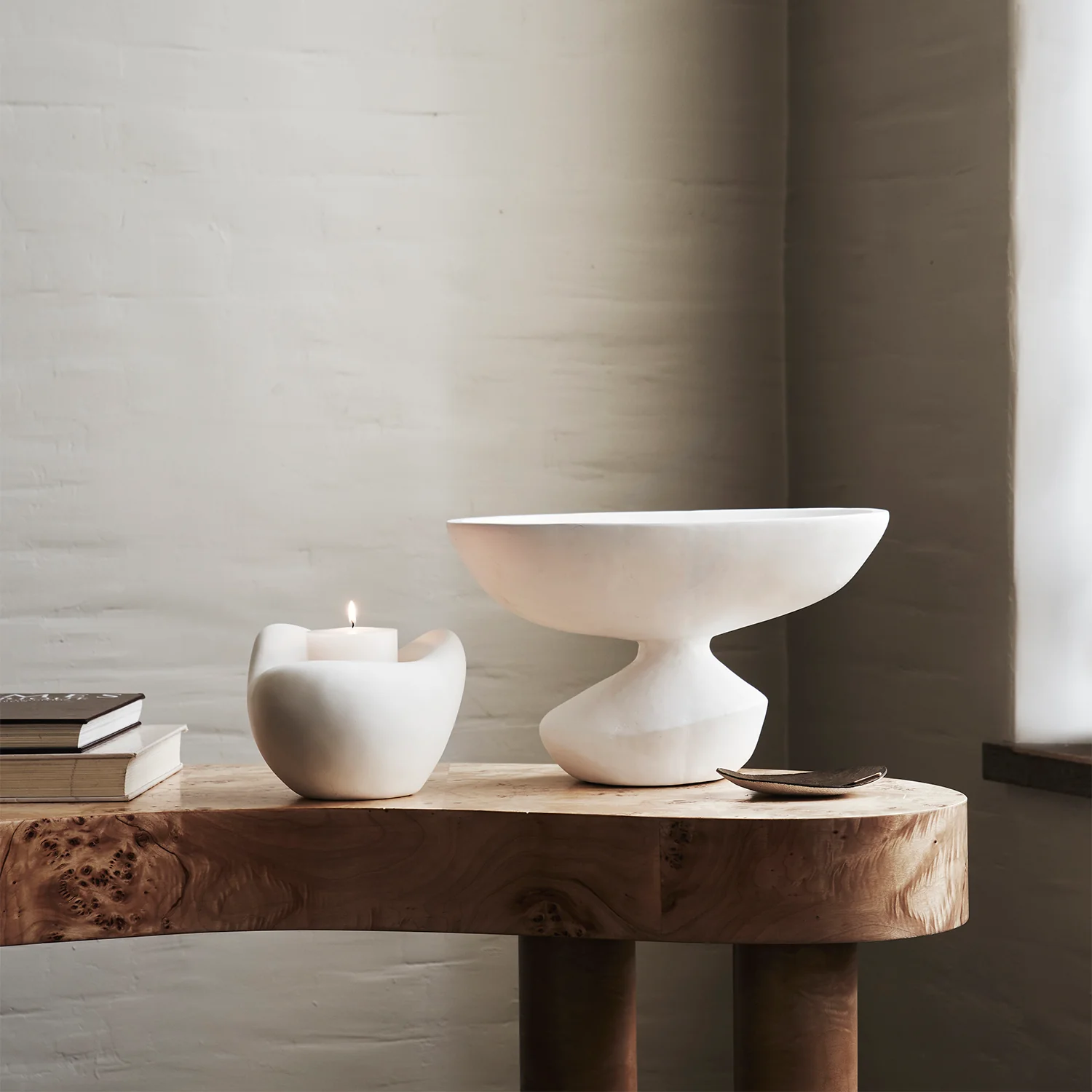 It is both a beautiful functional object and a unique piece of sculpture that can be used alone or layered in pairs.