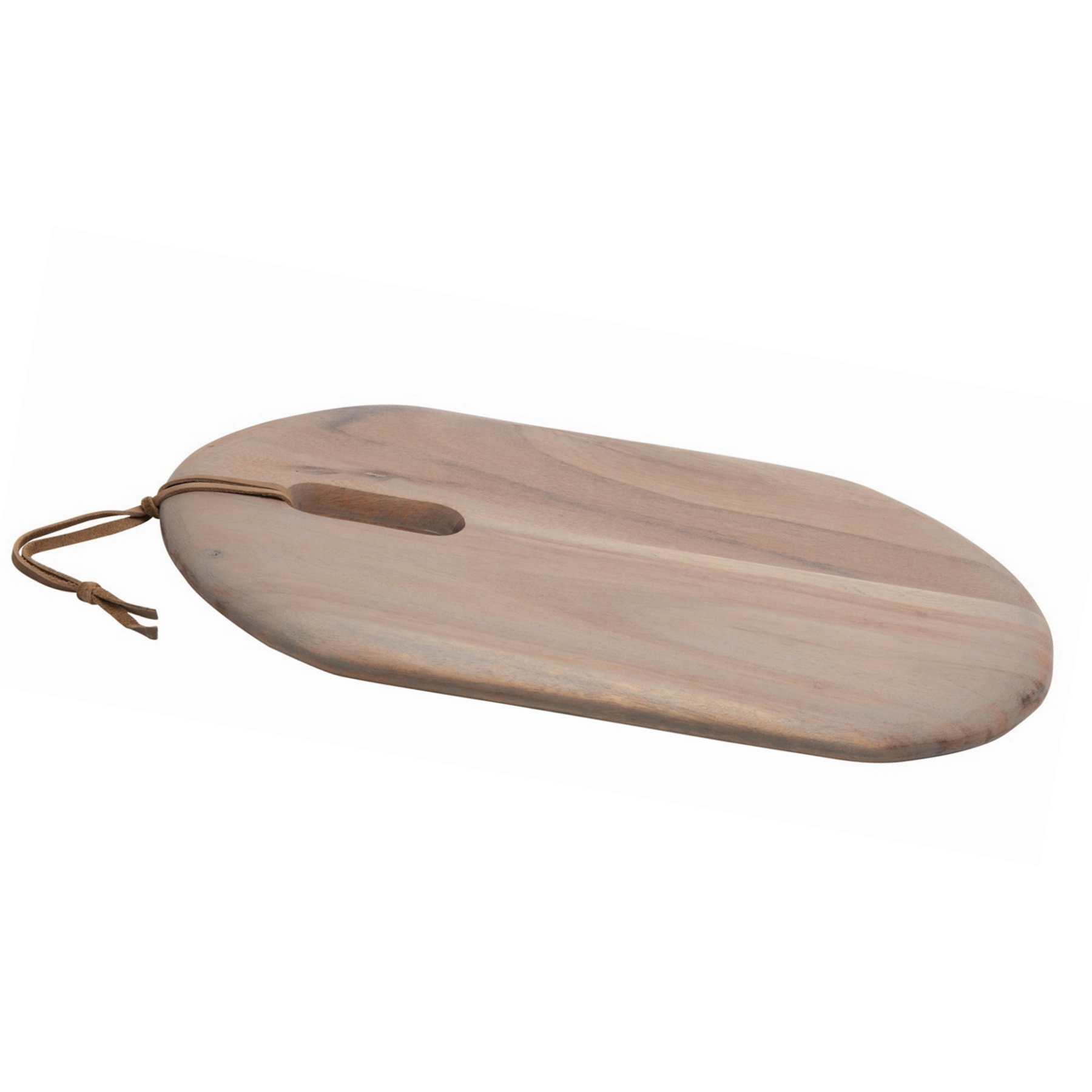 Crafted with an emphasis on durability and style, this board is ideal for any culinary task, be it slicing, dicing, or presenting your creations. The attached leather strap allows for easy storage and adds a touch of rustic charm. It's a versatile addition to your kitchen. Elevate your cooking experience with this exquisite Arabella Cutting Board.
