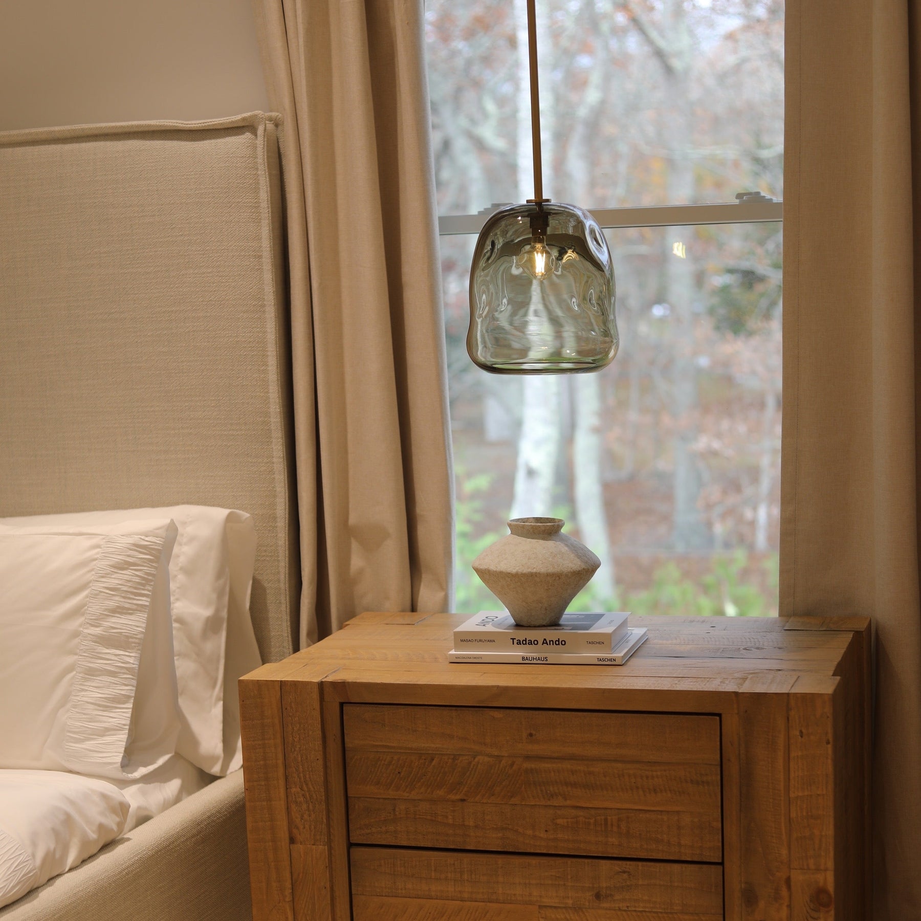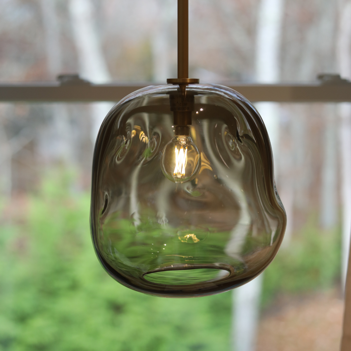 The Melody Pendant features an artisan-crafted organic design with a smoked glass shade that casts striking light and shadows. Paired with natural brass accents, it brings a refined, modern touch to any space. Perfect alone or in groups above sinks, tables, or bedsides, it adds subtle elegance and drama to your decor.
