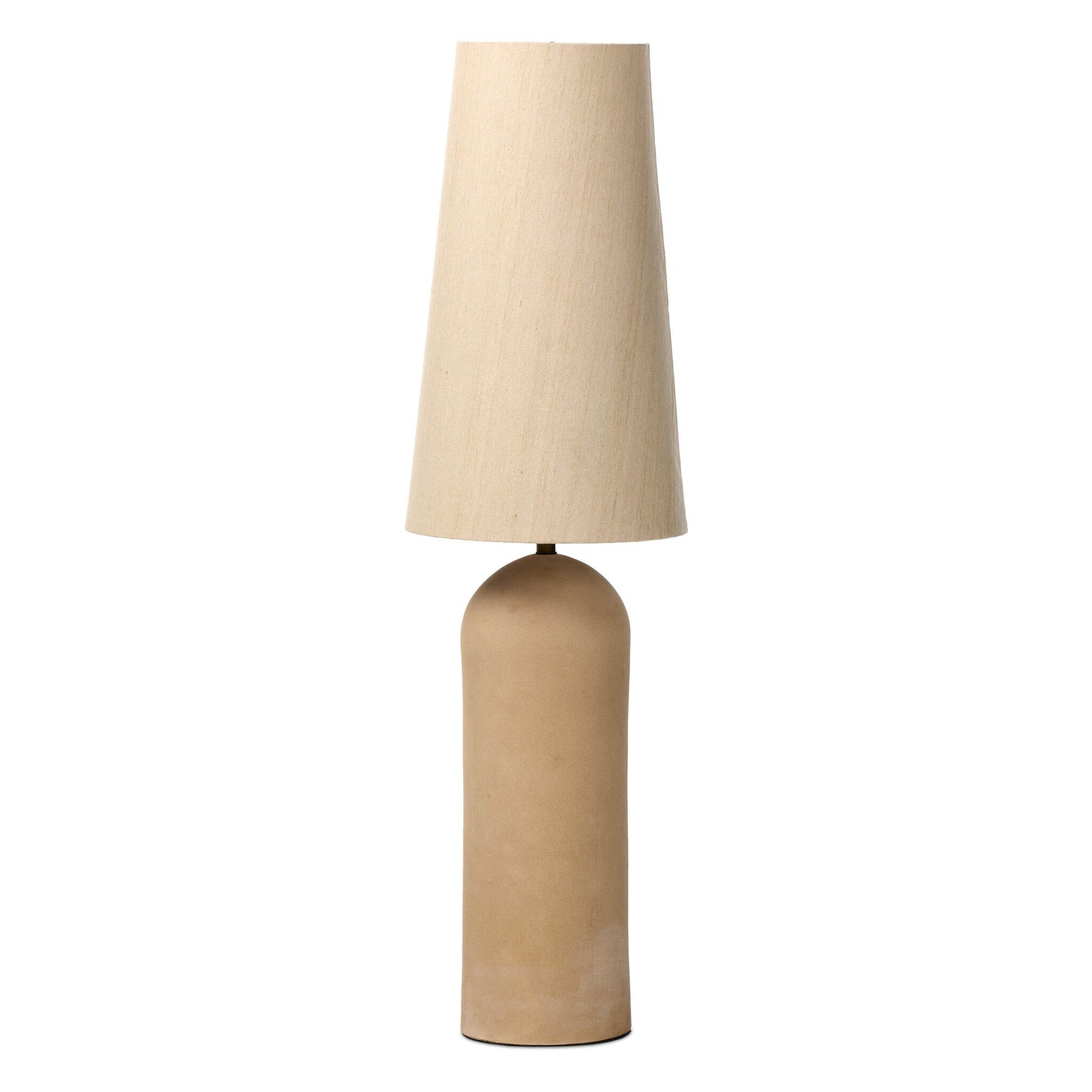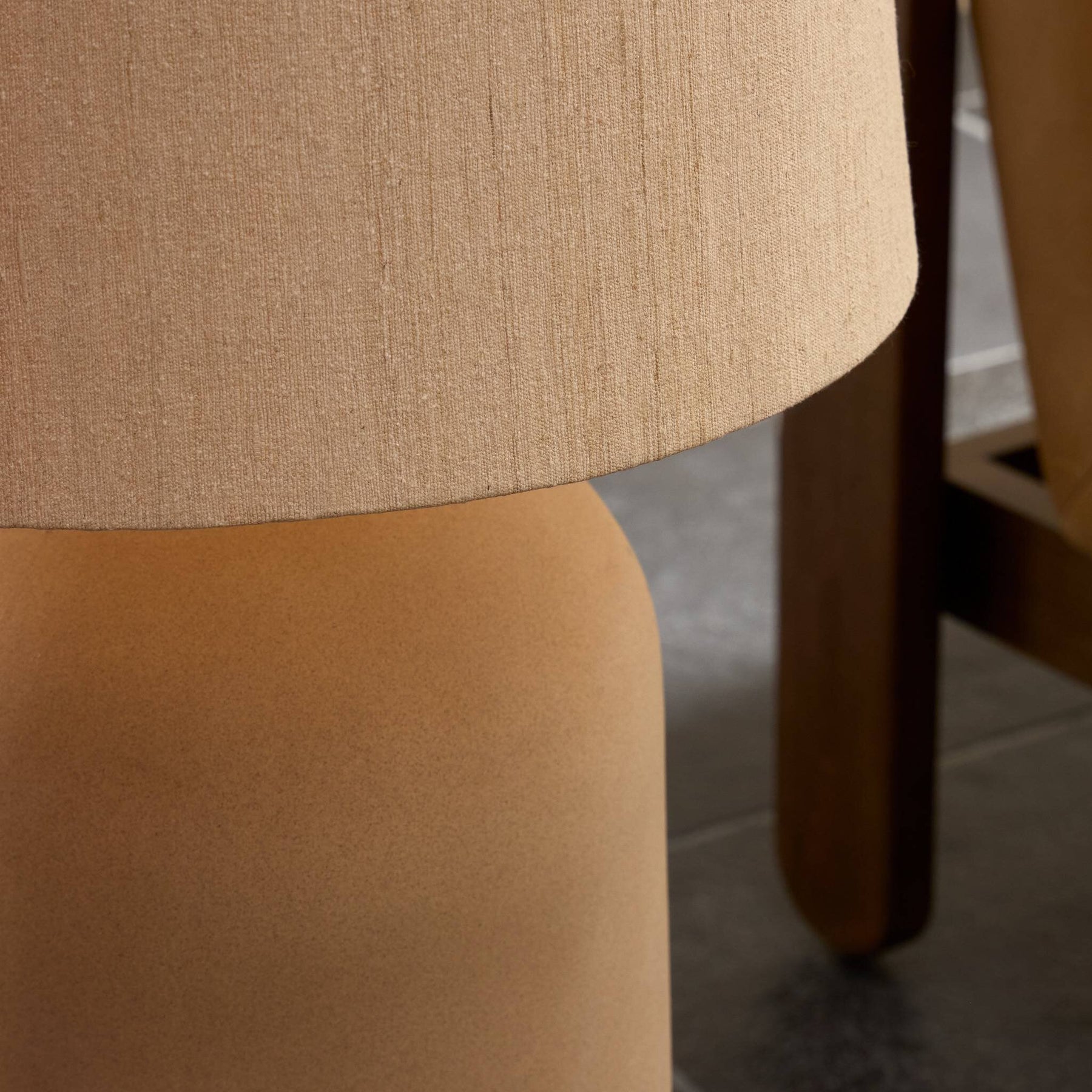 A large ceramic base with a speckled glossy finish supports a scalloped pure silk shade with fluid curves — a look that's instantly soft and bold. Due to the handcrafted nature of ceramic, a variation in height, plus or minus 1", may occur.