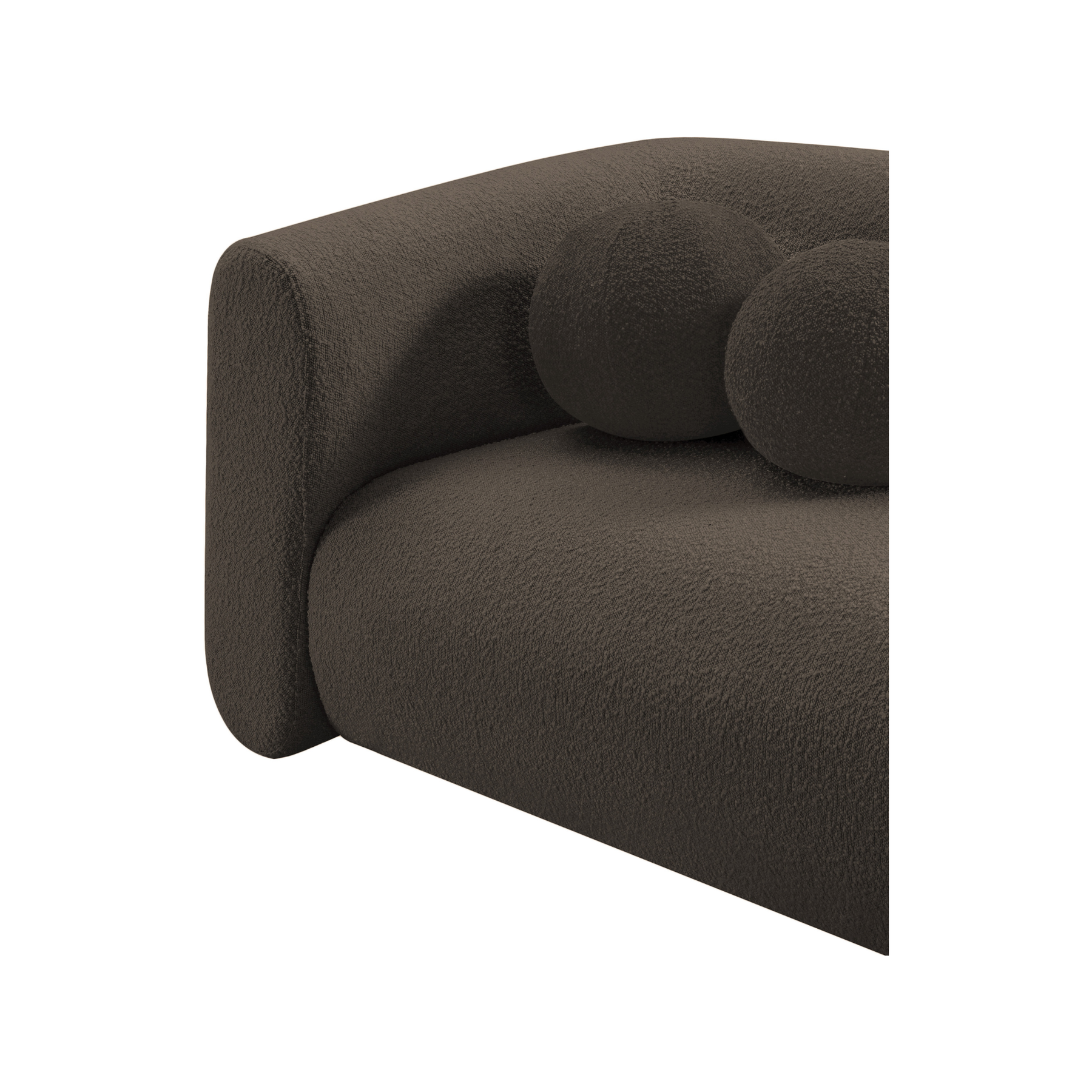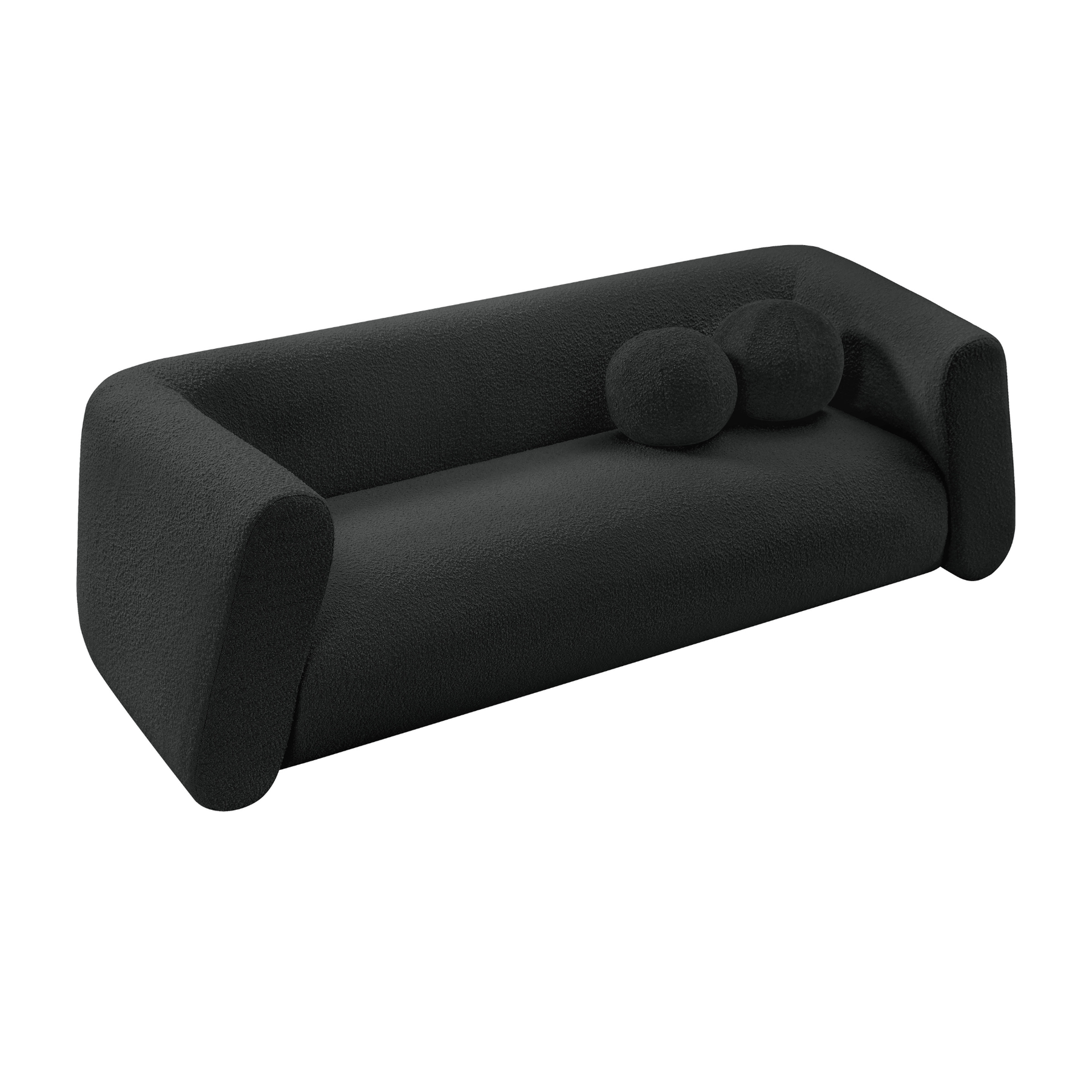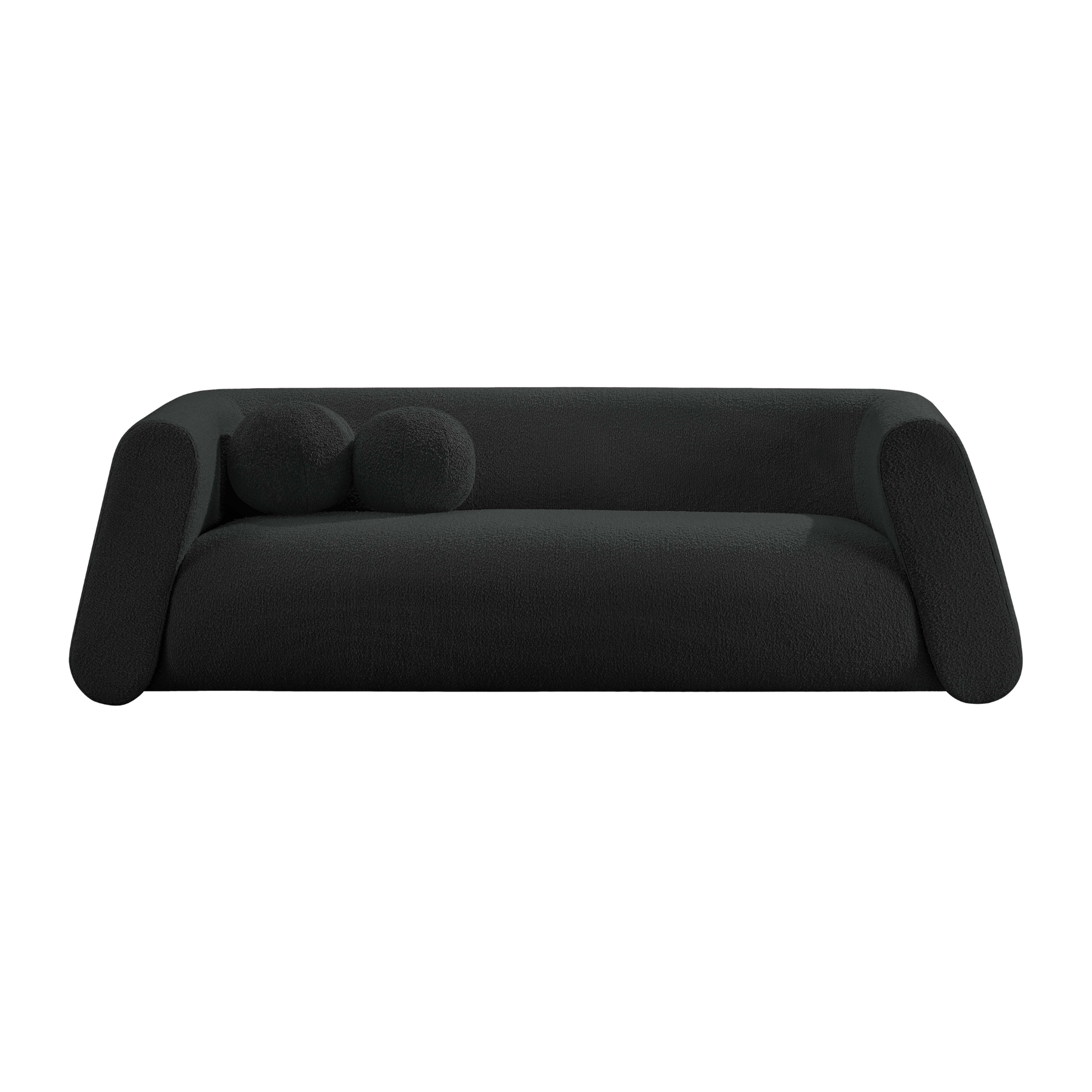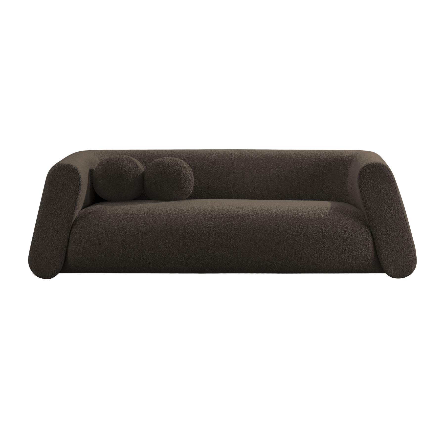 Give your room a new look with the chic Abbott sofa, available in stunning black, brown, olive, and cream boucle fabric. Embrace the richness of its texture and the boxy, geometrically inspired design that adds a touch of contemporary flair. This sofa is not just furniture; it's an aesthetic experience. Complete with an included ball pillow, the Abbott sofa is a sophisticated choice, promising both comfort and style for your living space. Redefine elegance with this eye-catching addition to your home from an unparalleled collection that lets you mix and match to suit your style preferences. Pillows included.