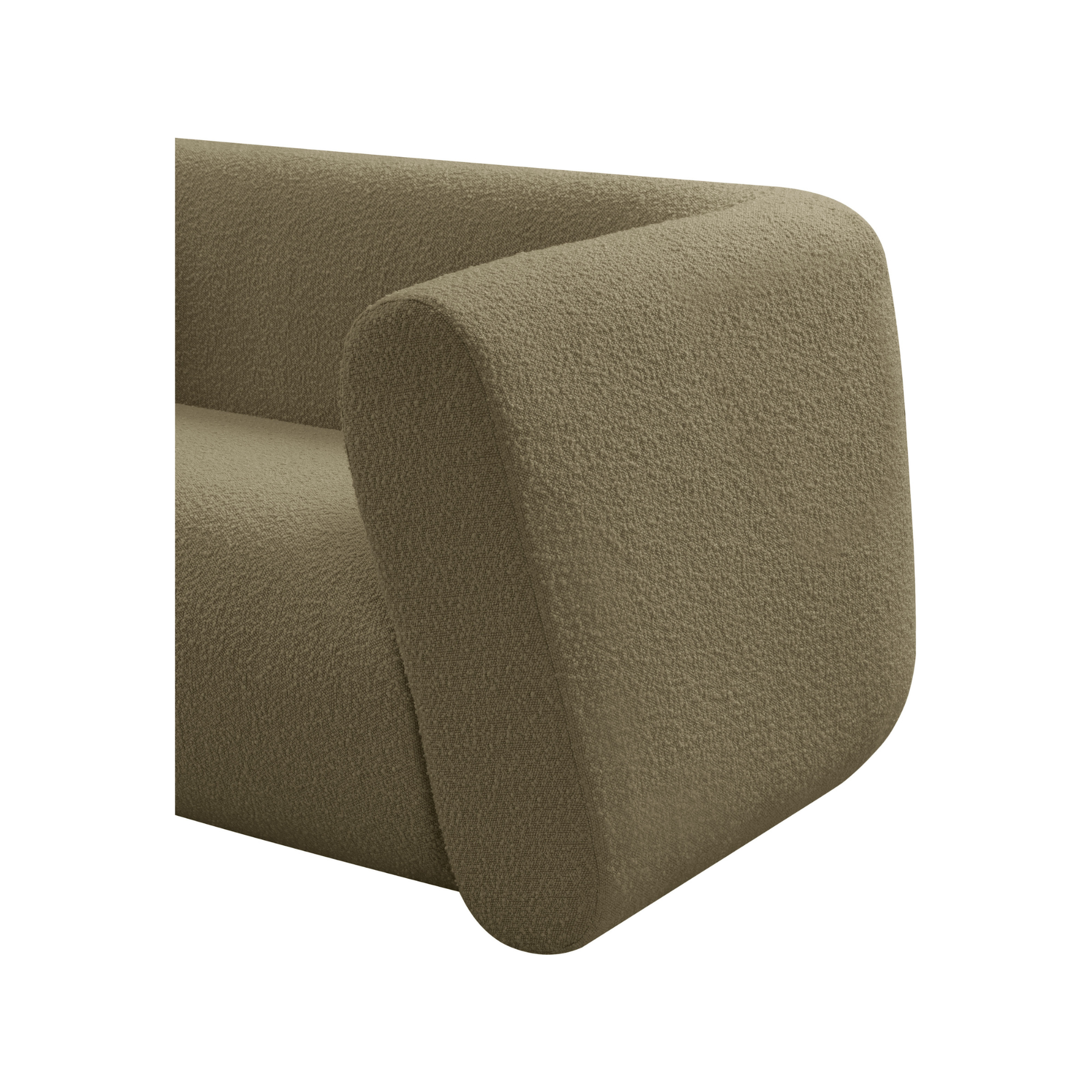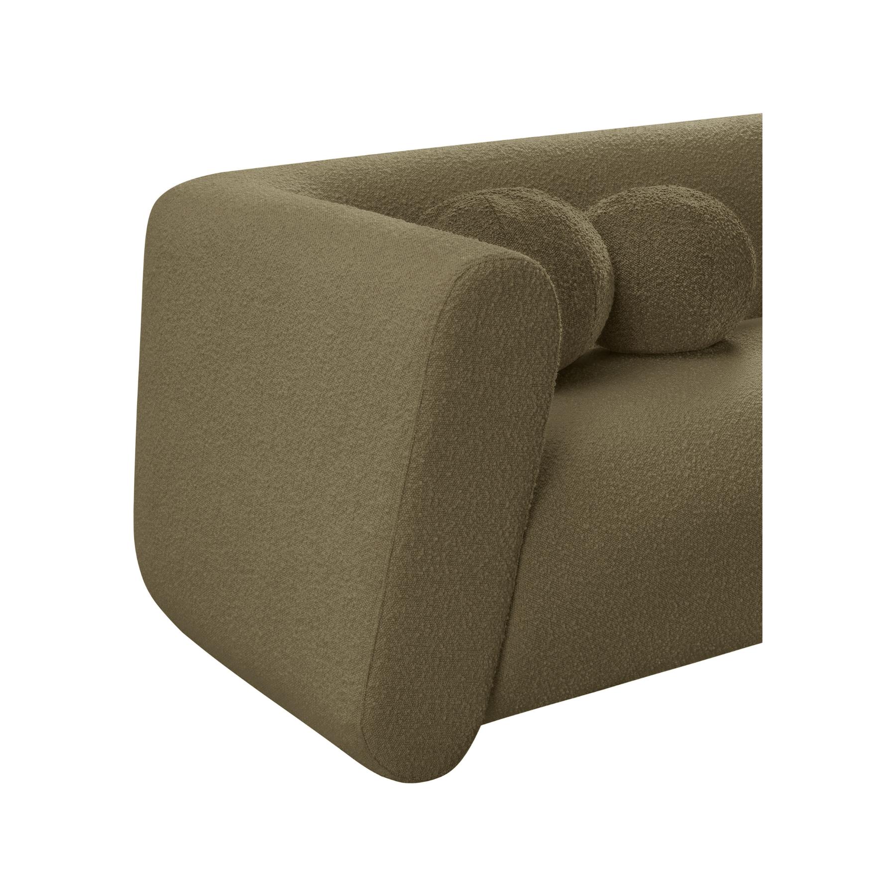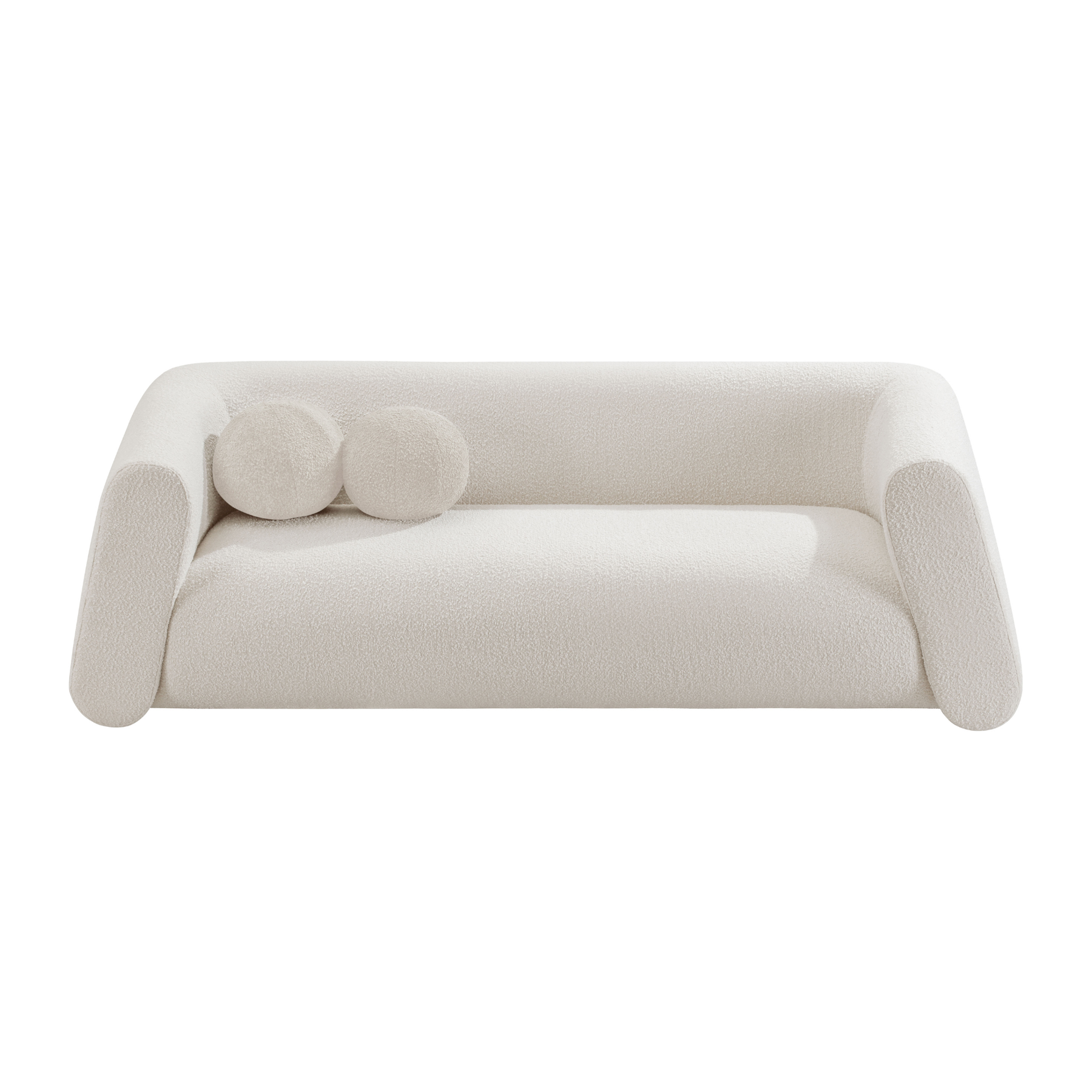 Give your room a new look with the chic Abbott sofa, available in stunning black, brown, olive, and cream boucle fabric. Embrace the richness of its texture and the boxy, geometrically inspired design that adds a touch of contemporary flair. This sofa is not just furniture; it's an aesthetic experience. Complete with an included ball pillow, the Abbott sofa is a sophisticated choice, promising both comfort and style for your living space. Redefine elegance with this eye-catching addition to your home from an unparalleled collection that lets you mix and match to suit your style preferences. Pillows included.