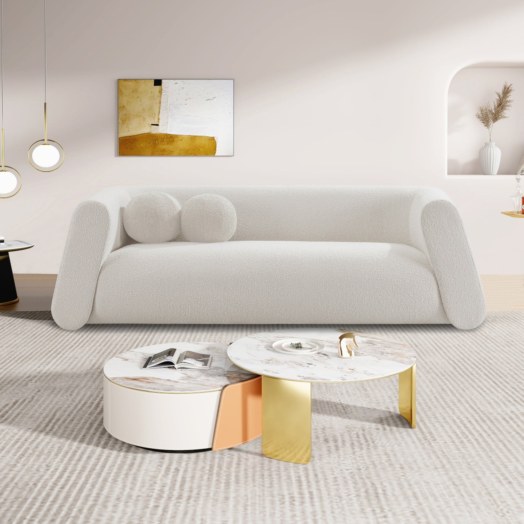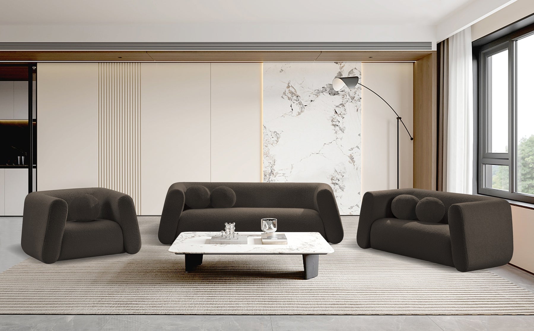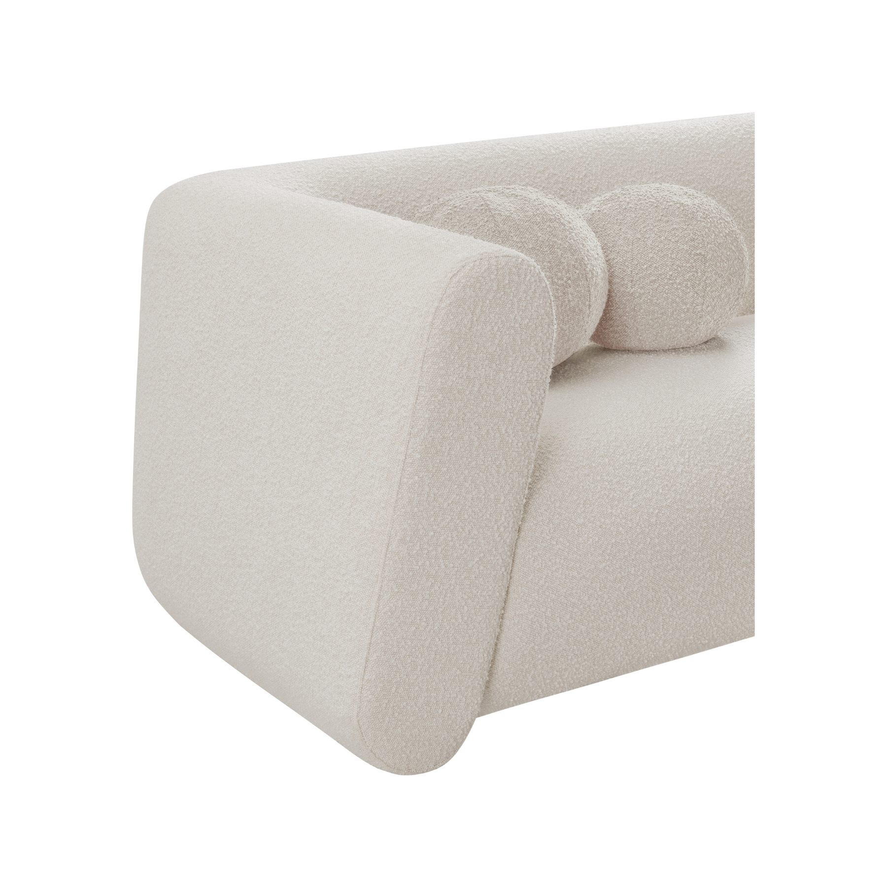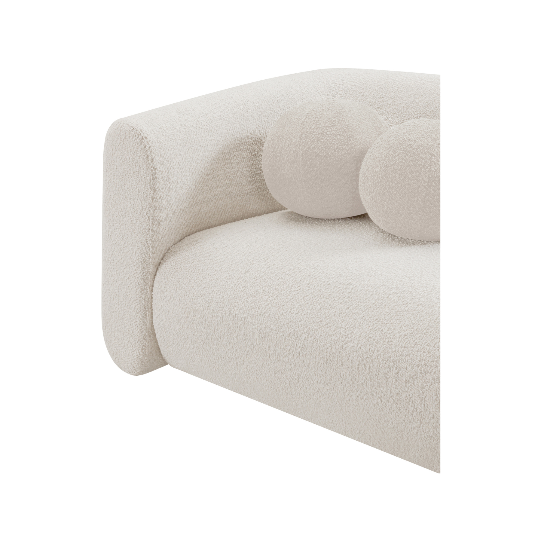 Give your room a new look with the chic Abbott sofa, available in stunning black, brown, olive, and cream boucle fabric. Embrace the richness of its texture and the boxy, geometrically inspired design that adds a touch of contemporary flair. This sofa is not just furniture; it's an aesthetic experience. Complete with an included ball pillow, the Abbott sofa is a sophisticated choice, promising both comfort and style for your living space. Redefine elegance with this eye-catching addition to your home from an unparalleled collection that lets you mix and match to suit your style preferences. Pillows included.