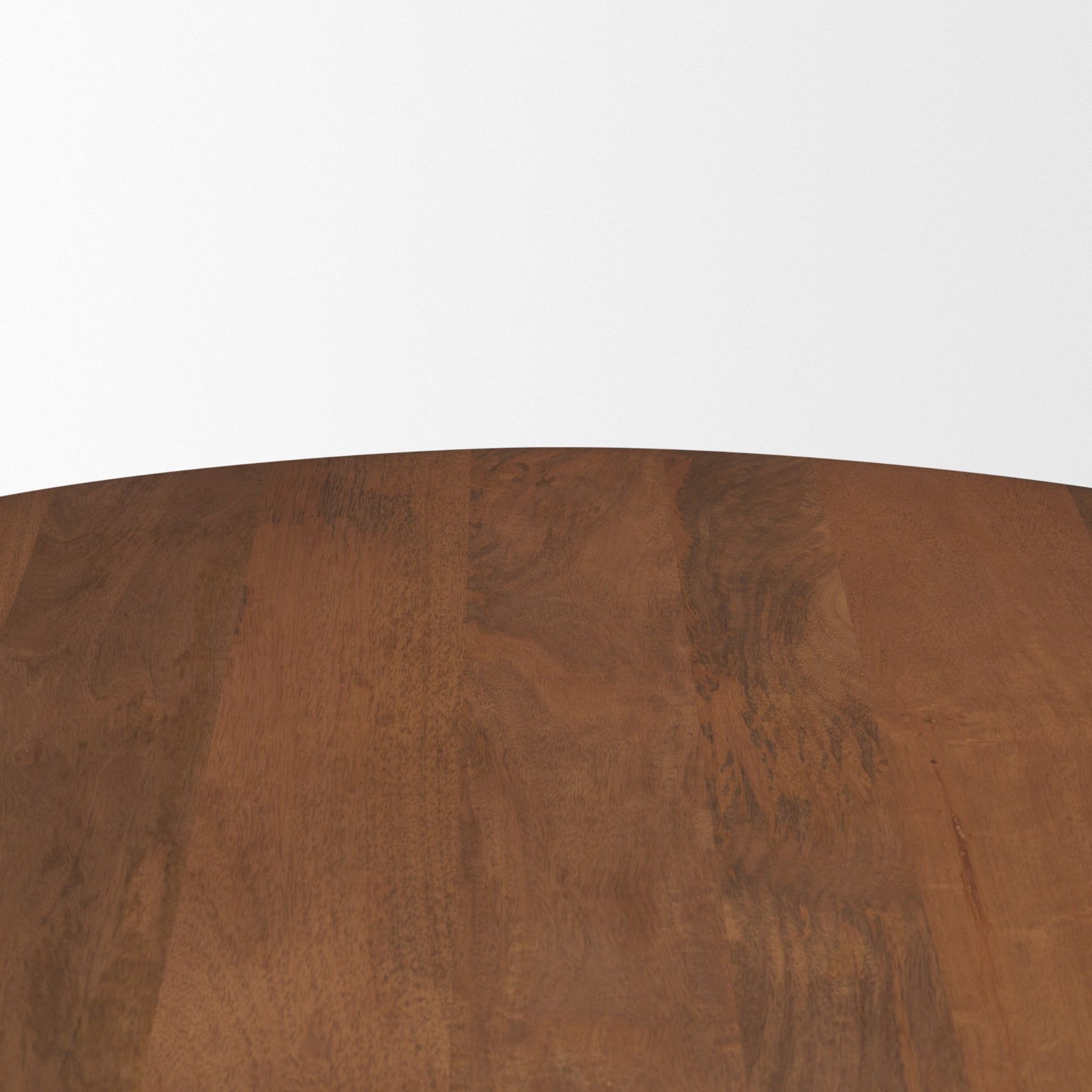 The Ayla Coffee Table is crafted from solid medium brown mango wood, featuring a round top balanced on a substantial, sculpted pedestal base for a grounded yet artful presence.