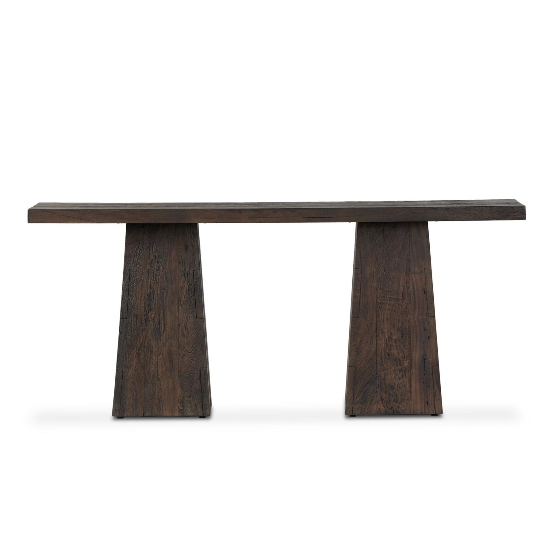 Smoked or Bleached alder shapes a streamlined console table, with angular lines and wide proportions for a clean look with substance.