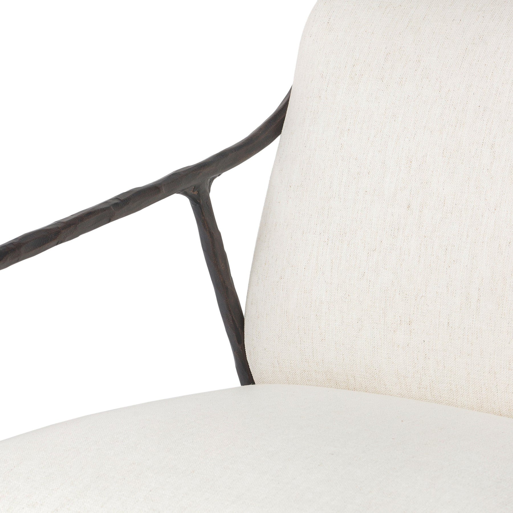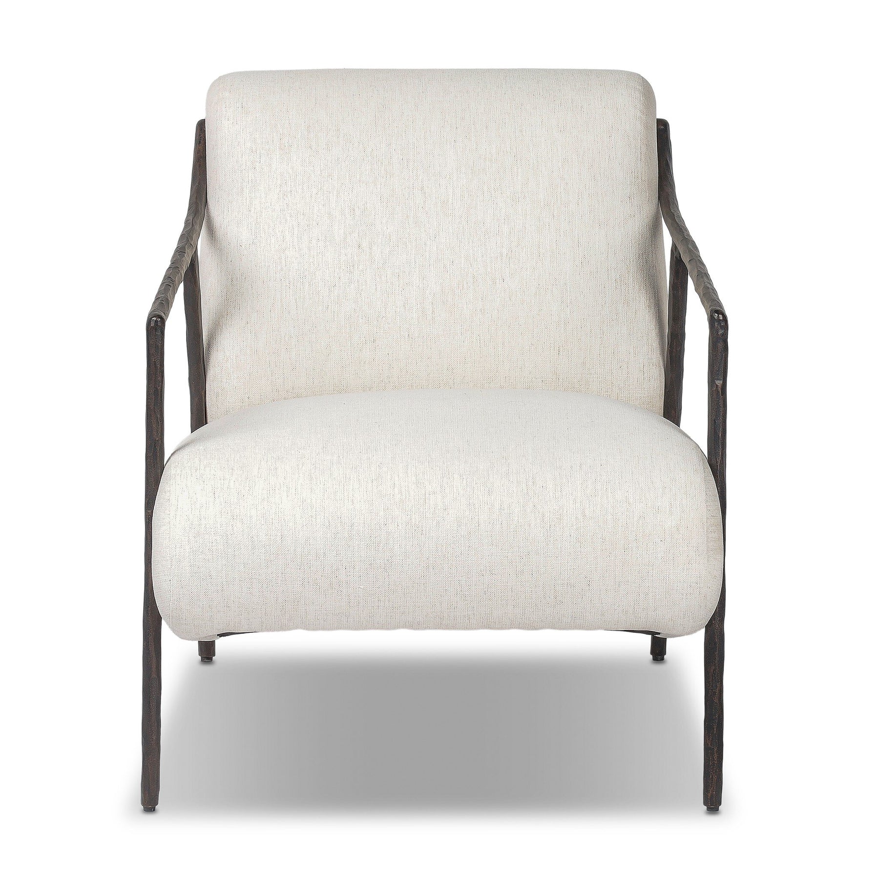 Sink-in comfort, modern appeal and no fuss. This Deco-inspired chair's exposed hammered-iron frame with sloped metal arms and tapered legs connect beneath the soft seating, constructed with layered foam and fiber for easy lounging. Crypton® performance fabric is specially engineered for protection against stains, moisture and odor.