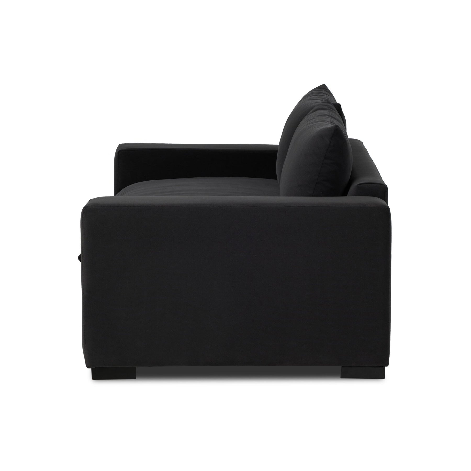 Welcome to the modern lounging essential. This timeless track arm sofa offers versatile comfort and style, upholstered in your choice of neutral oatmeal or dark charcoal performance fabric. Designed for everyday living, the durable upholstery resists spills, stains, moisture, and odors—ensuring long-term comfort and easy maintenance. Finished with sturdy wooden block legs for a clean, contemporary look.