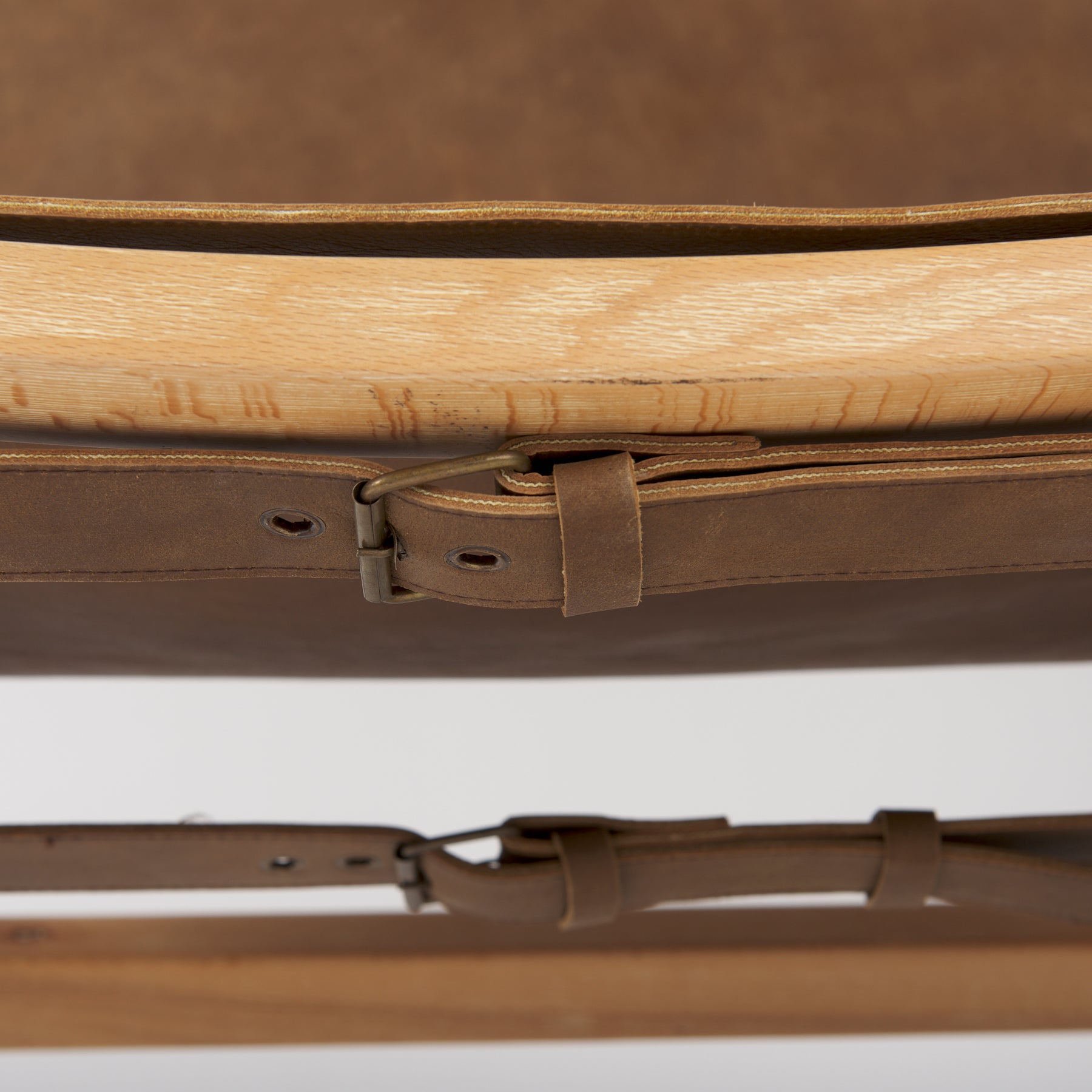 The Efren Accent Chair is handsome in every sense of the word. Antique, brown buffalo leather stretches over a modern, low-slung frame crafted from solid Beech wood; it wraps around the seat in a strapped design that is fastened and accentuated by leather buckles and brass-finished studs. The relaxed, rustic nature of this chair is definitely a talking point.