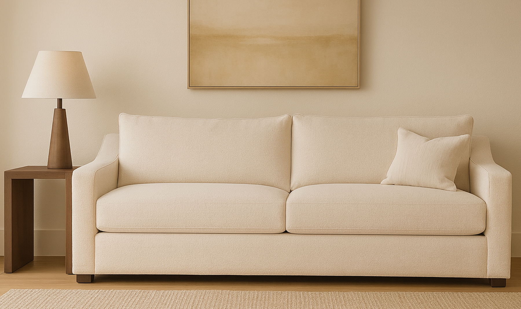 A sofa that knows how to set the mood. The Faro Sofa features deep, fiber-filled cushions, subtly sloped arms, and refined piped detailing for a polished yet inviting look. Sitting low on an invisible base, it maintains a clean, grounded profile. Available in flecked oat with a soft, textured finish, velvety cedar green with a gentle sheen, or taupe chenille with a smooth, soft hand, Faro transitions effortlessly between contemporary and traditional spaces—offering timeless style and all-day comfort.