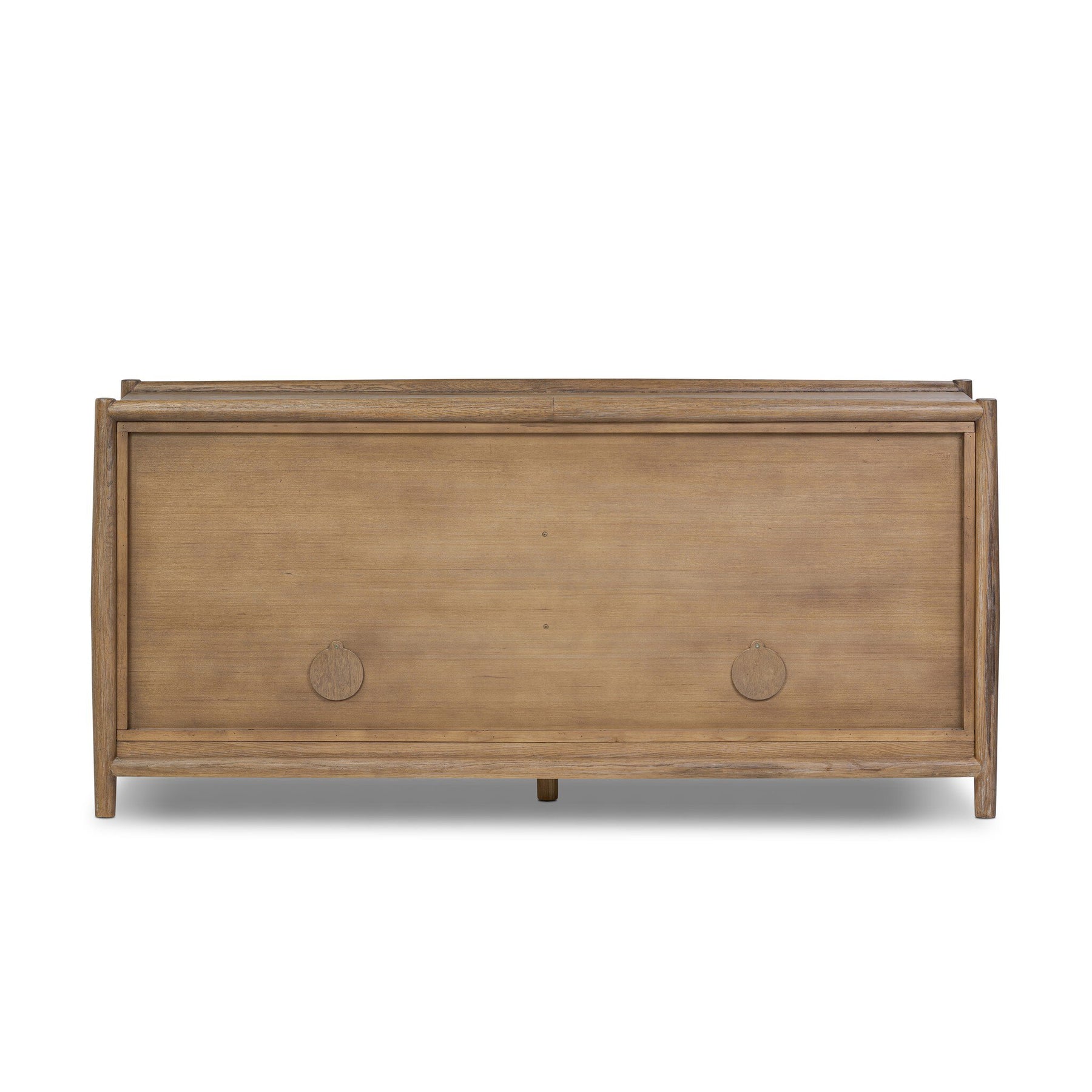 The traditional spindle structure brought to modern speed. Made from weathered oak, the sideboard brings generous storage space to dining and entertaining, working into a range of spaces and collections with ease. Simple cylindrical hardware is finished in an aged bronze.