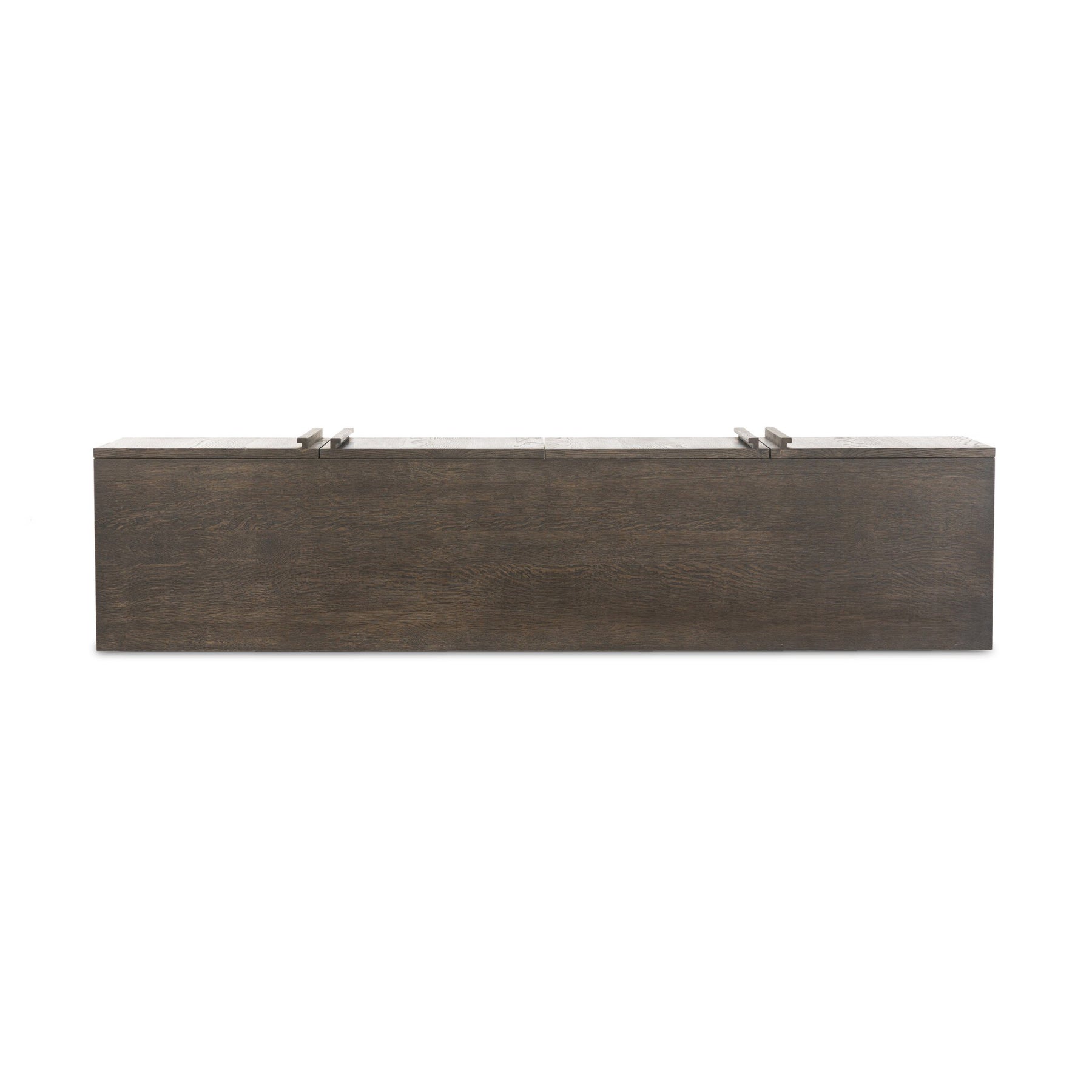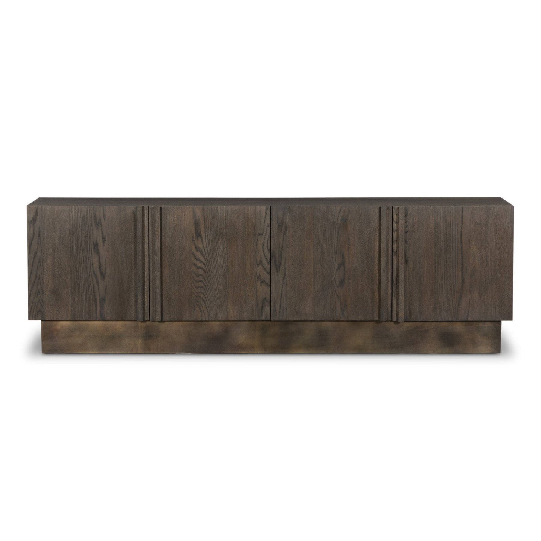 Add an industrial-inspired piece to your collection with an oak and iron console. With clean lines and a plinth-style base, this mixed media look brings storage and versatility to your space. Generous interior shelving plus rear cutouts for cord management.