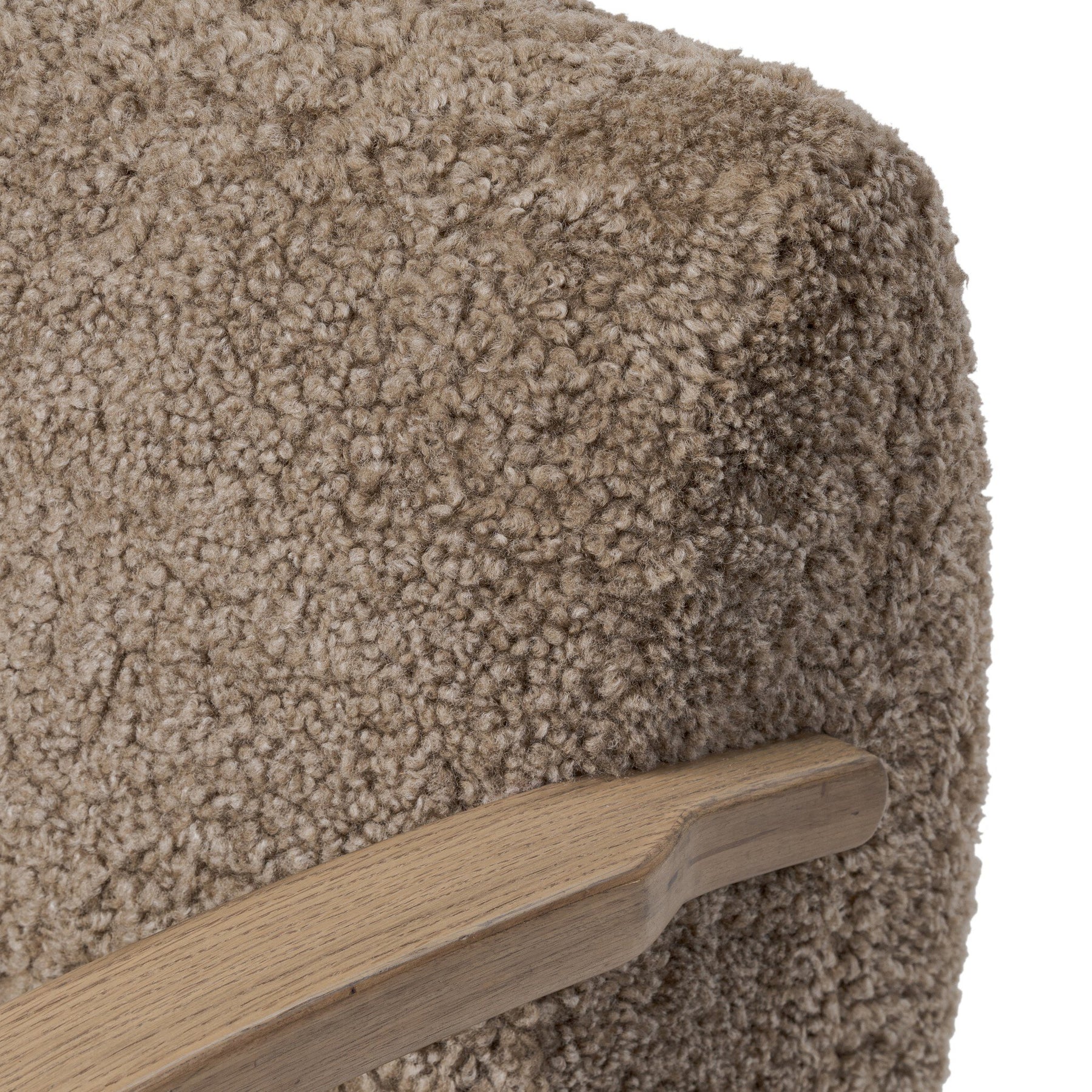 Soft texture and eye-catching contours fuse in this comfort-driven accent chair, pairing a low, luxurious shearling seat and dramatic bent wood frame.