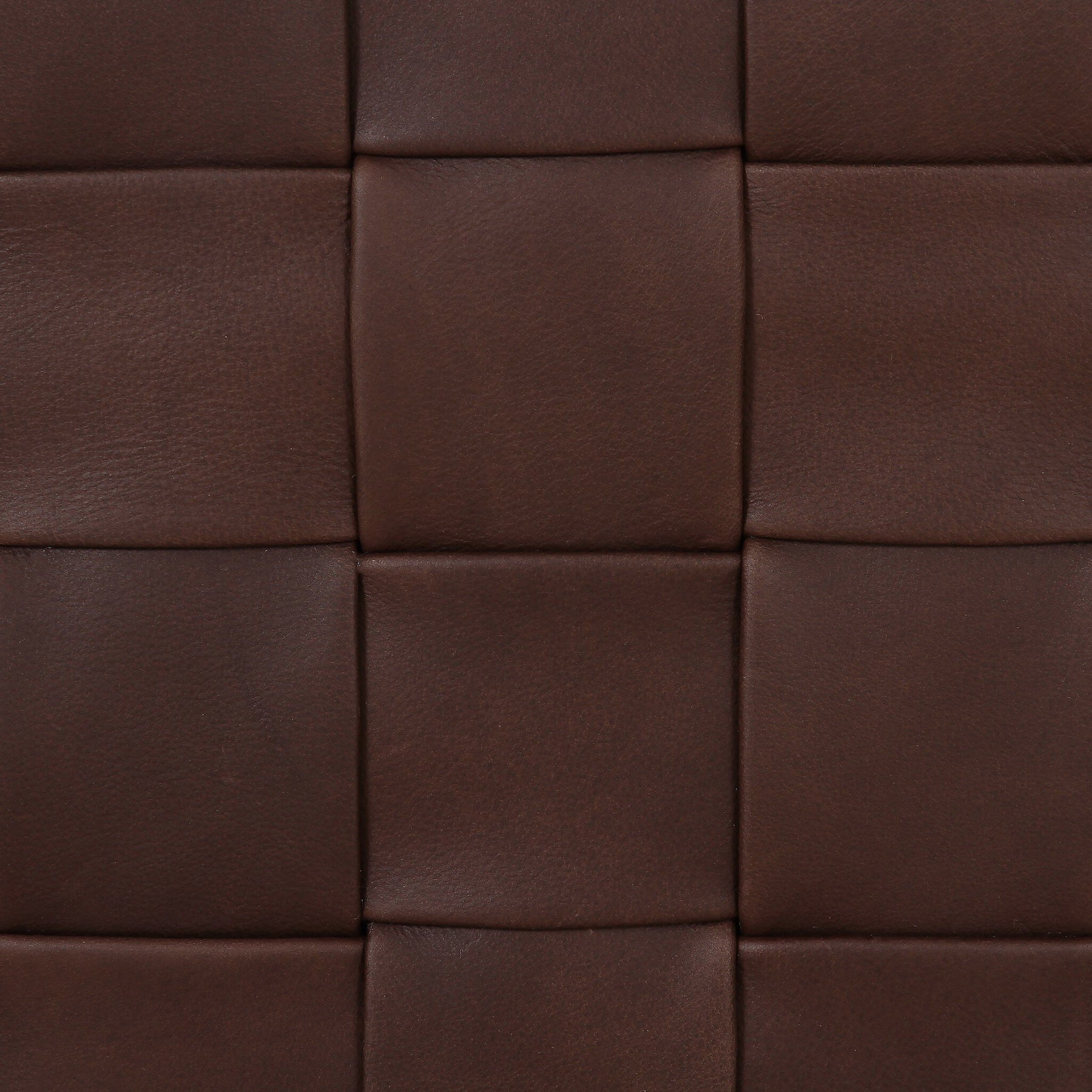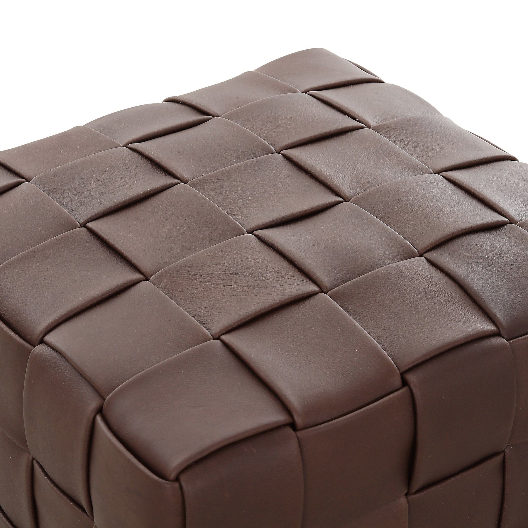 Soft, specialized top-grain leather is hand-woven, crafting a look of a treasured vintage find. Use as bonus seating or style with a tray for an extra surface.